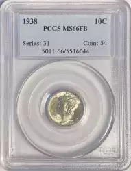 <B>1940-S 10C MS66 Full Bands PCGS.</B></I> CDN: $100 Whsle. Bid for NGC/PCGS MS66. Mintage 21,560,000....