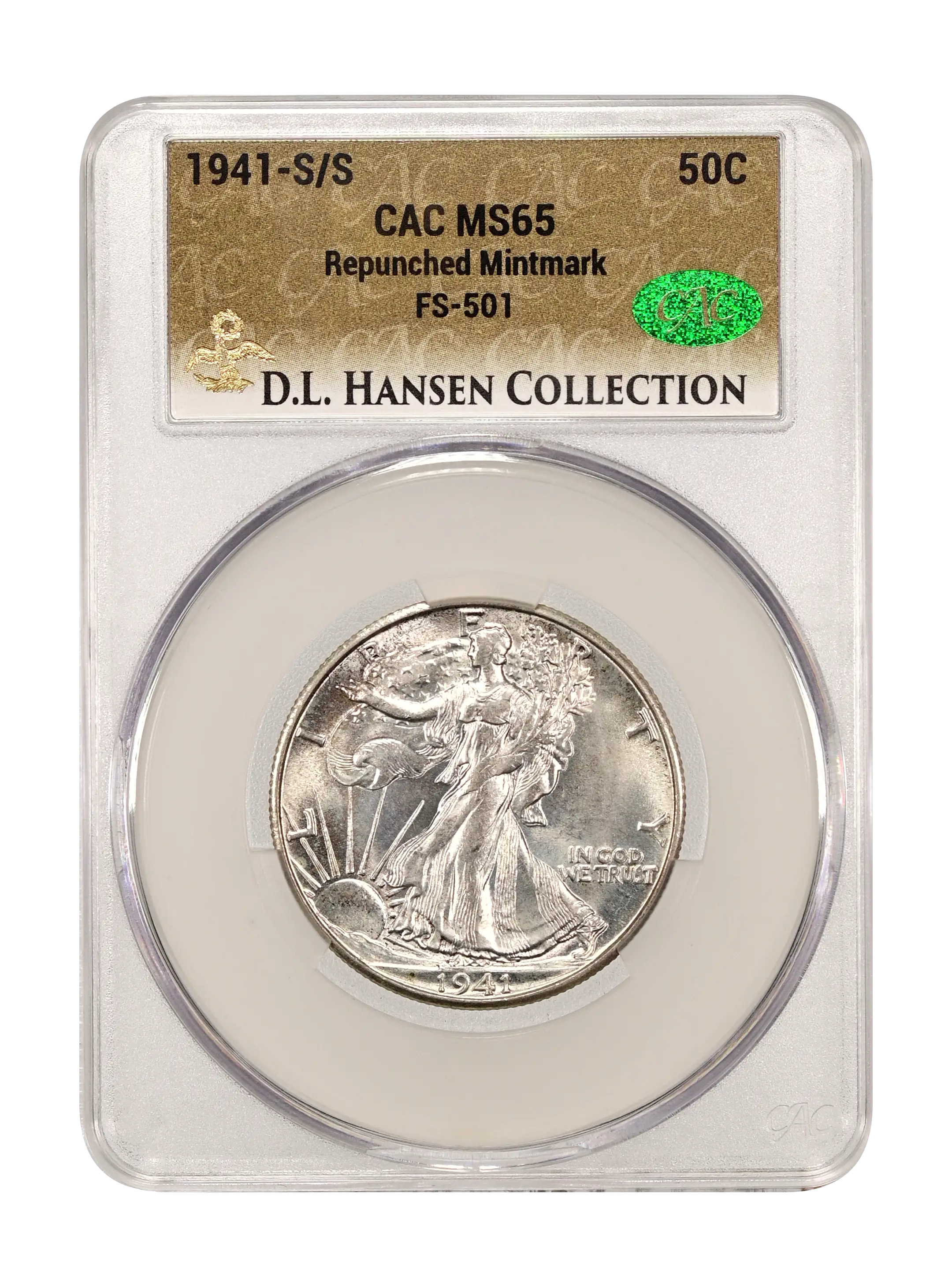 1941-S/S Repunched Mintmark 50c FS-501 CAC MS65
