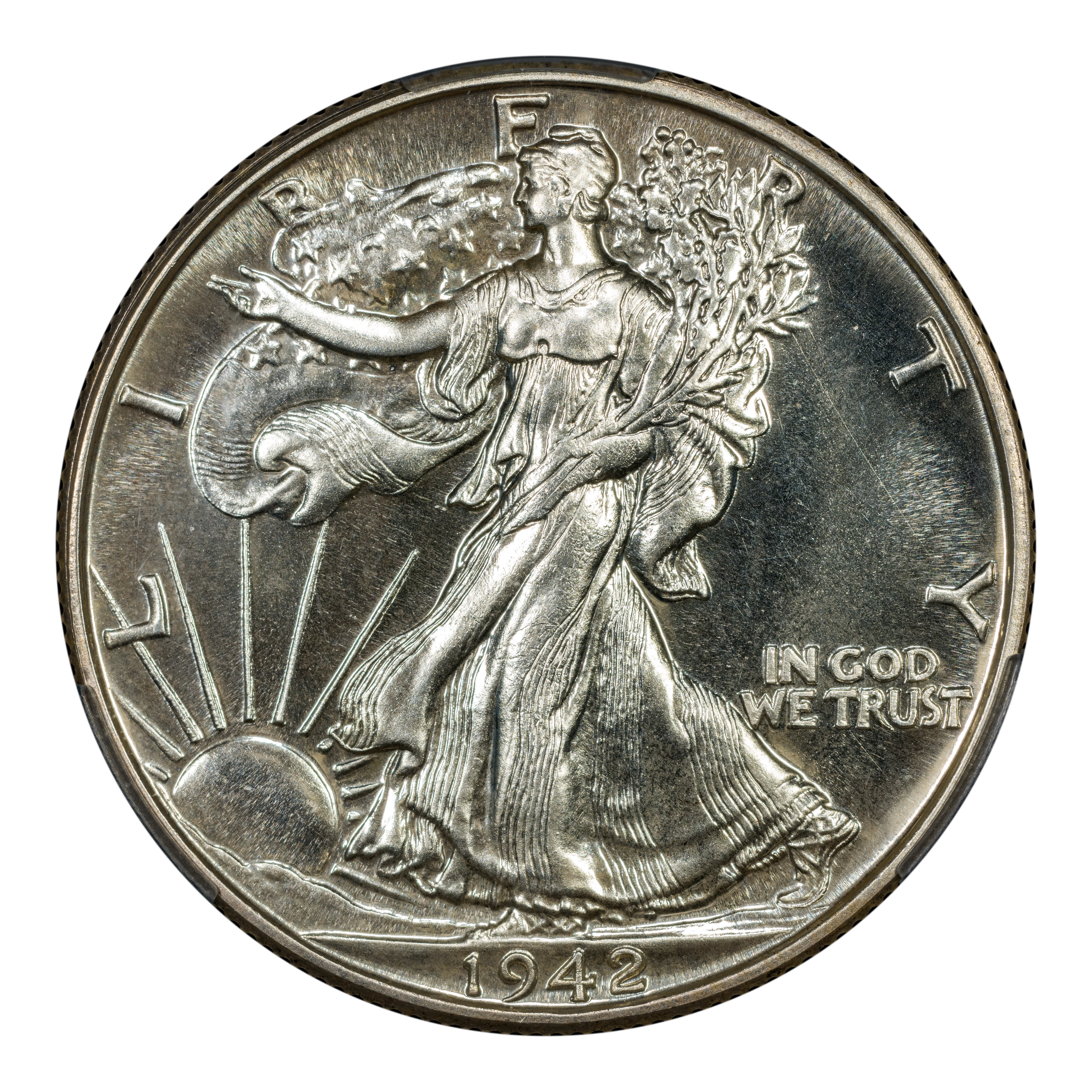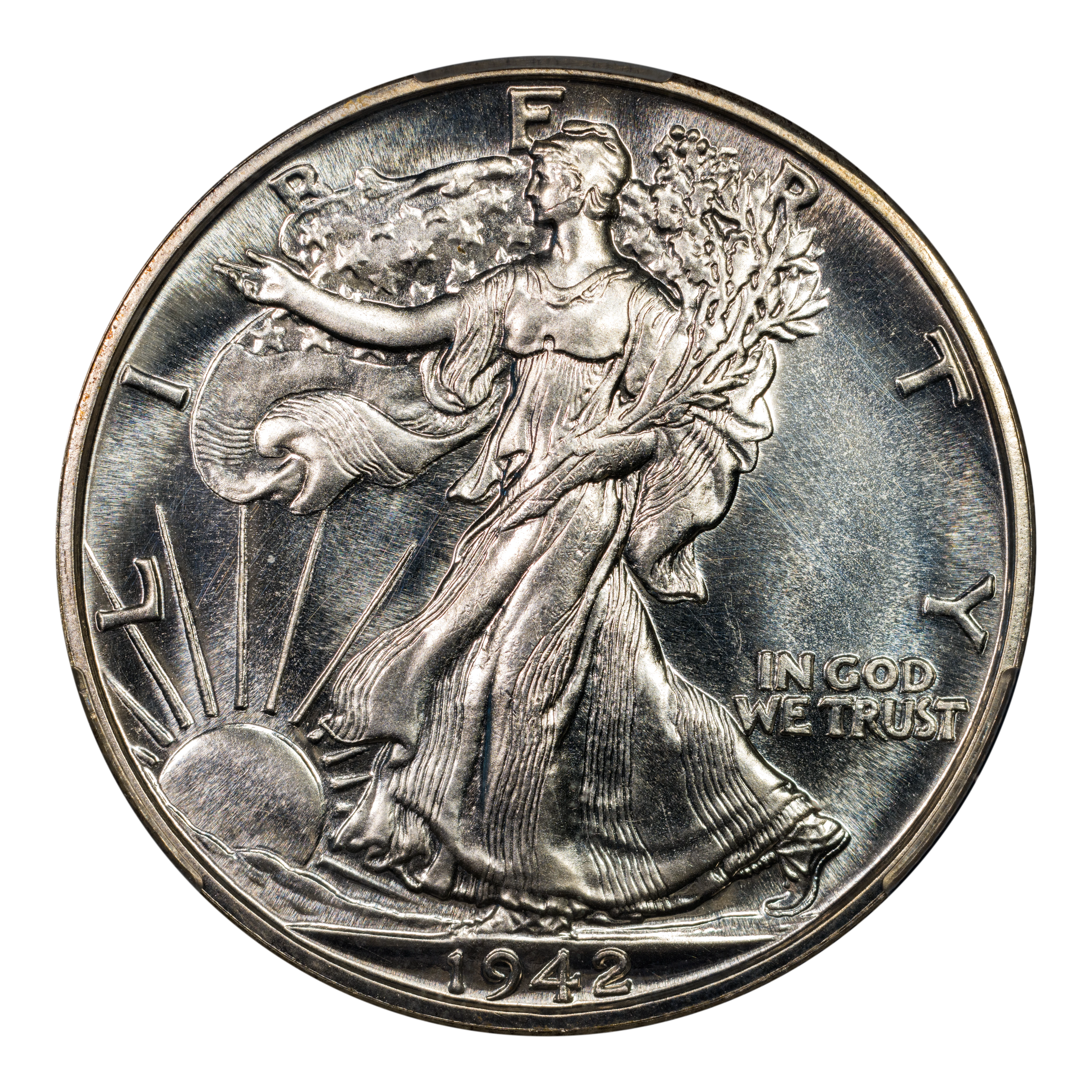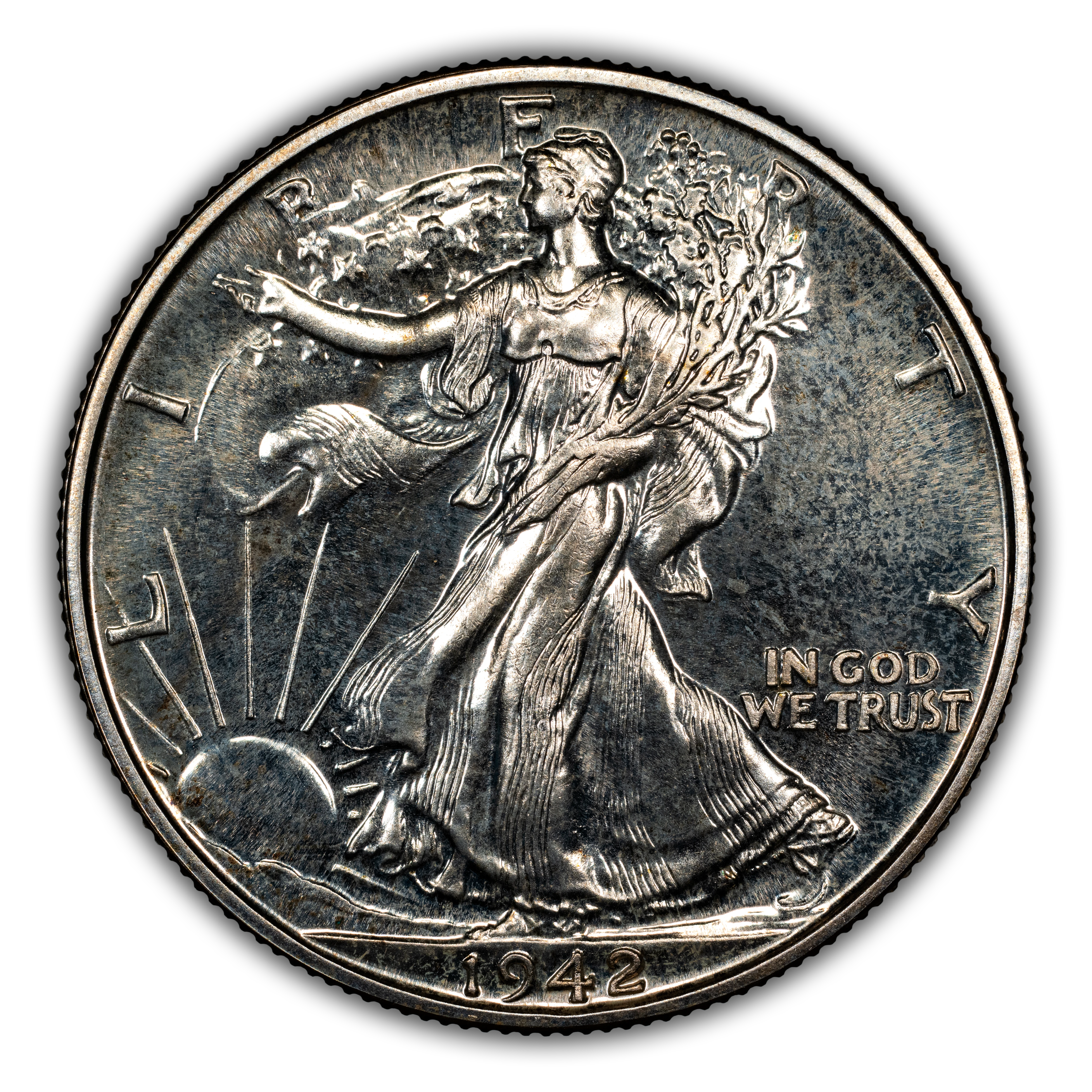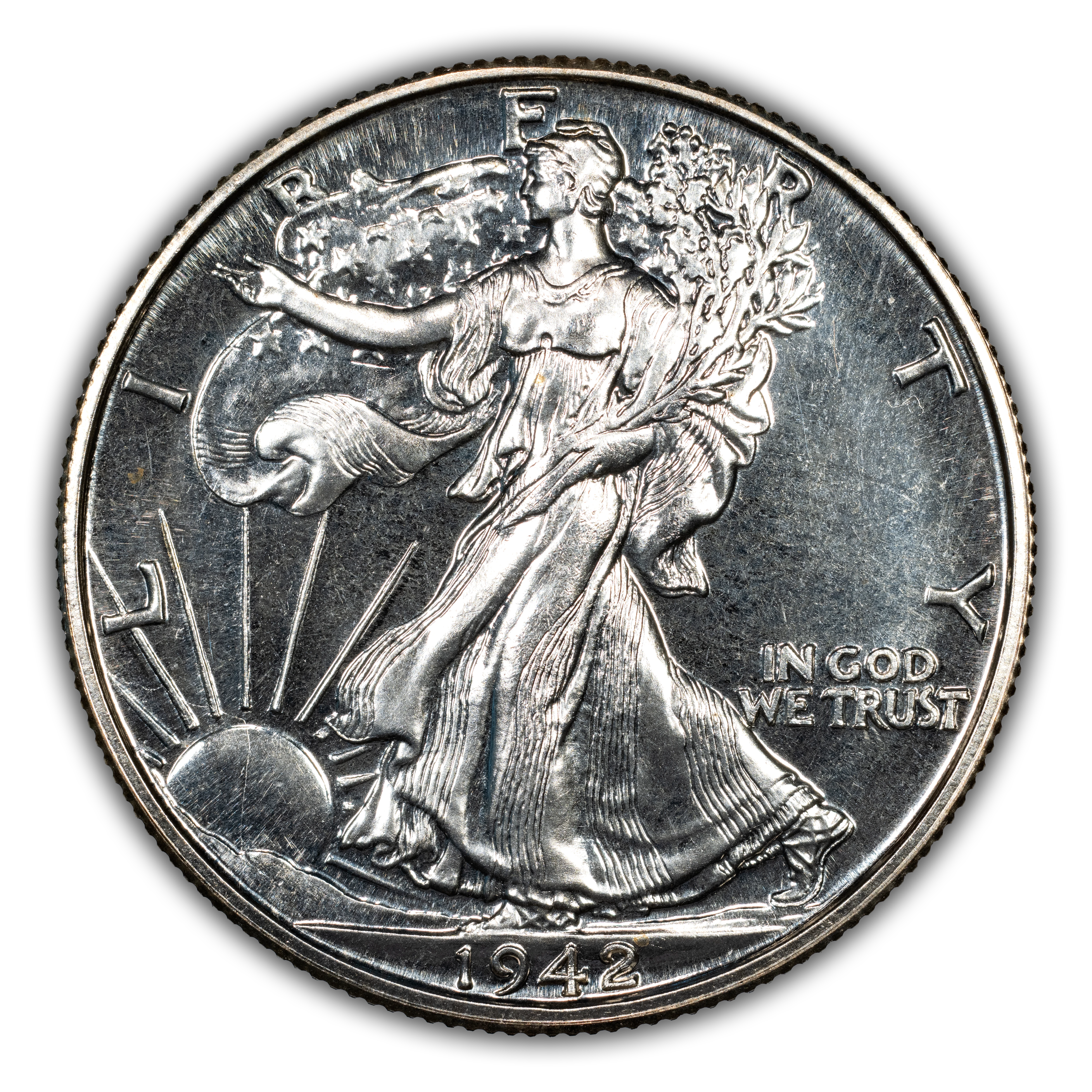 Word War II abruptly ended the production of proofs leaving this series cut very short. The 1942, as a final year of issue, is a great proof Walking Liberty Half Dollar type coin from a mintage of 21,120. It is common overall but scarcer in PR67 and PR68. The few PR69's are extremely rare. Interestingly enough, a handful of Cameo examples do exist in NGC holders.