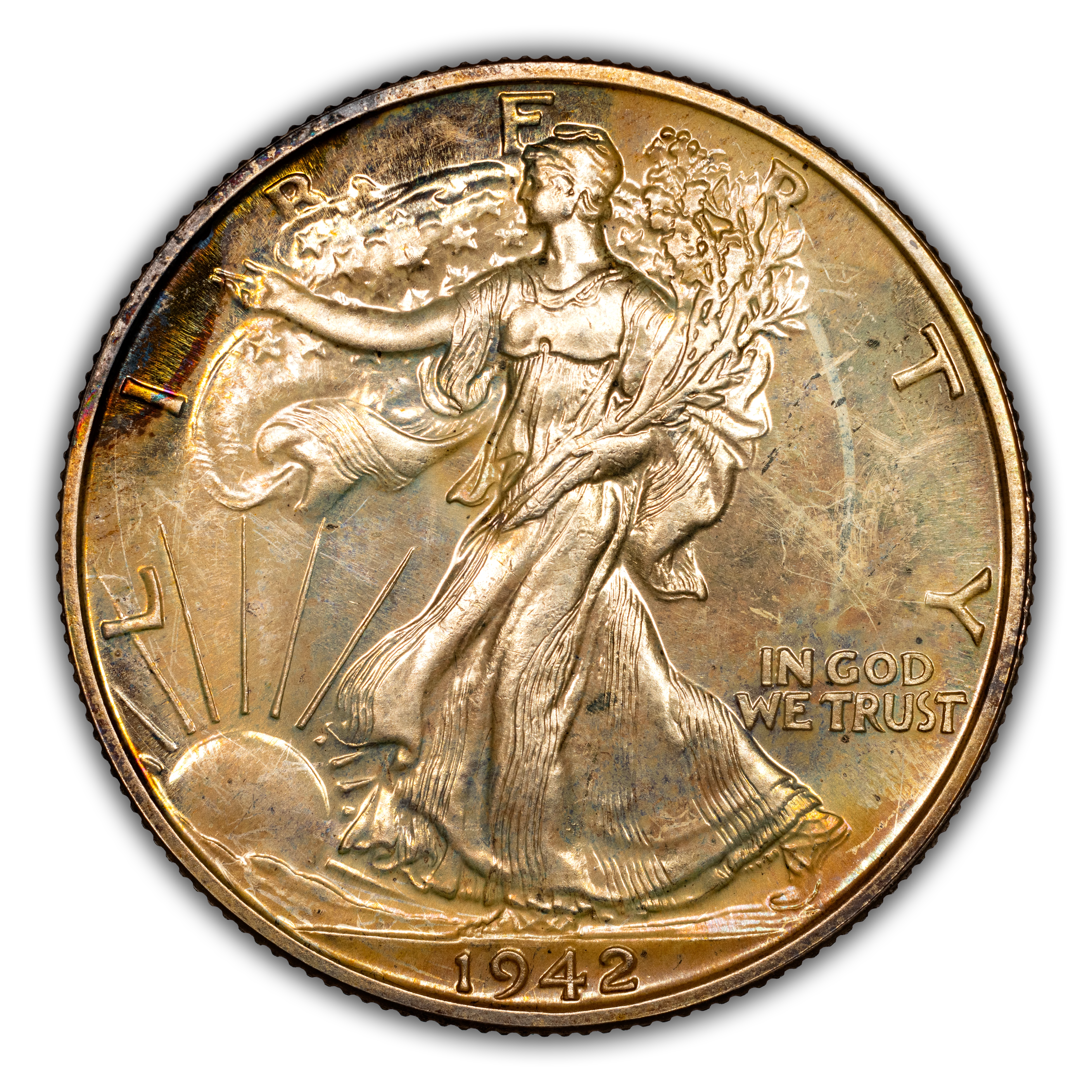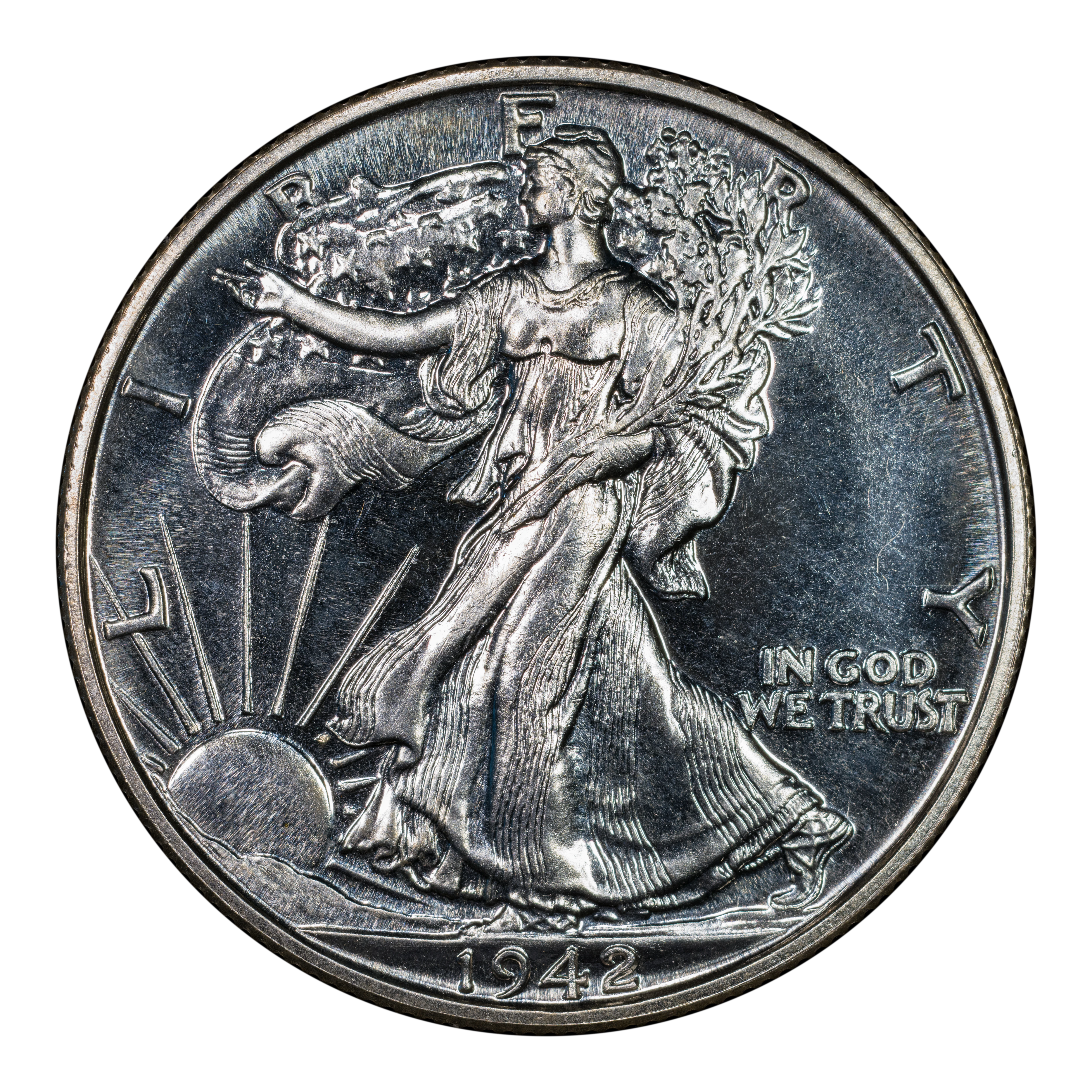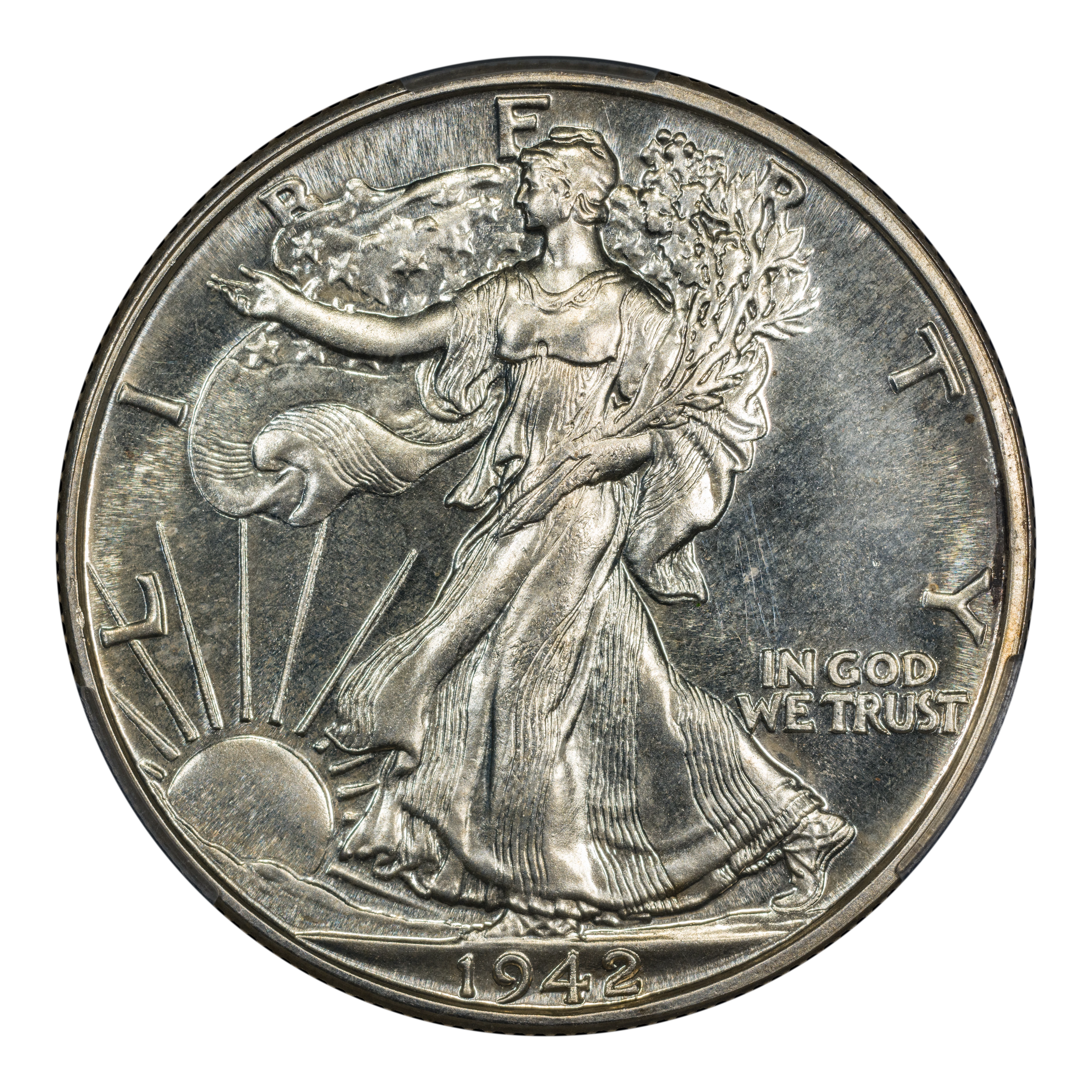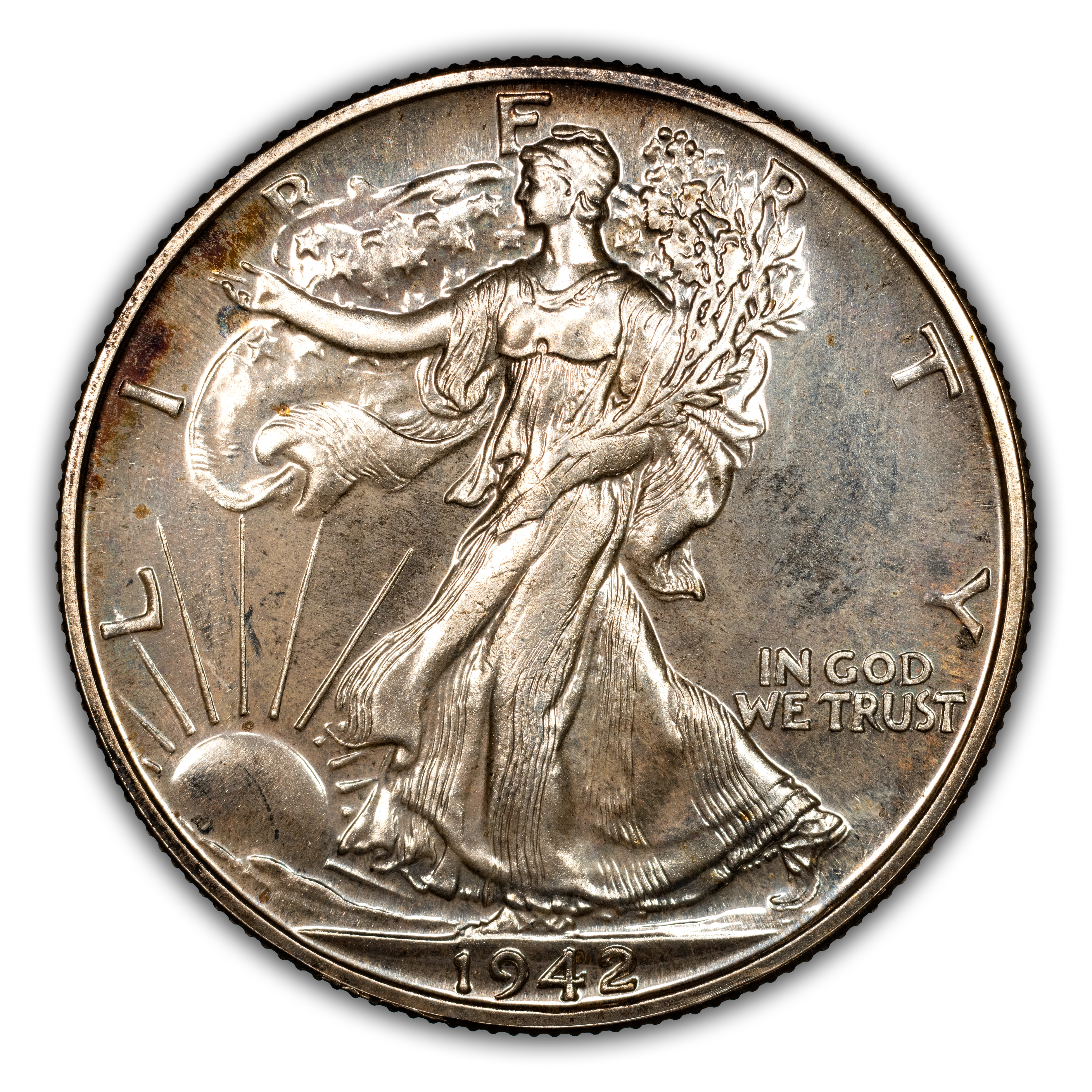 Word War II abruptly ended the production of proofs leaving this series cut very short. The 1942, as a final year of issue, is a great proof Walking Liberty Half Dollar type coin from a mintage of 21,120. It is common overall but scarcer in PR67 and PR68. The few PR69's are extremely rare. Interestingly enough, a handful of Cameo examples do exist in NGC holders.