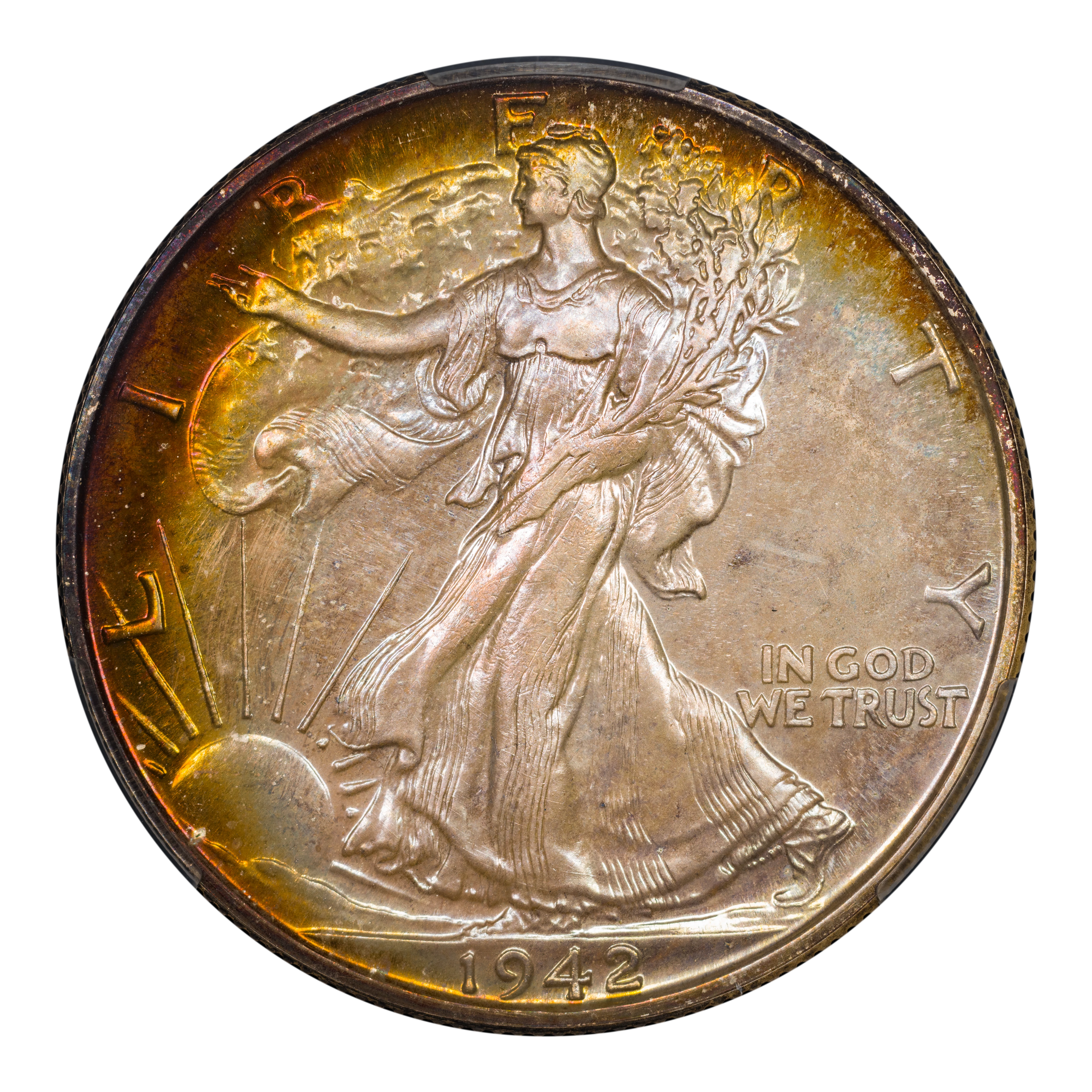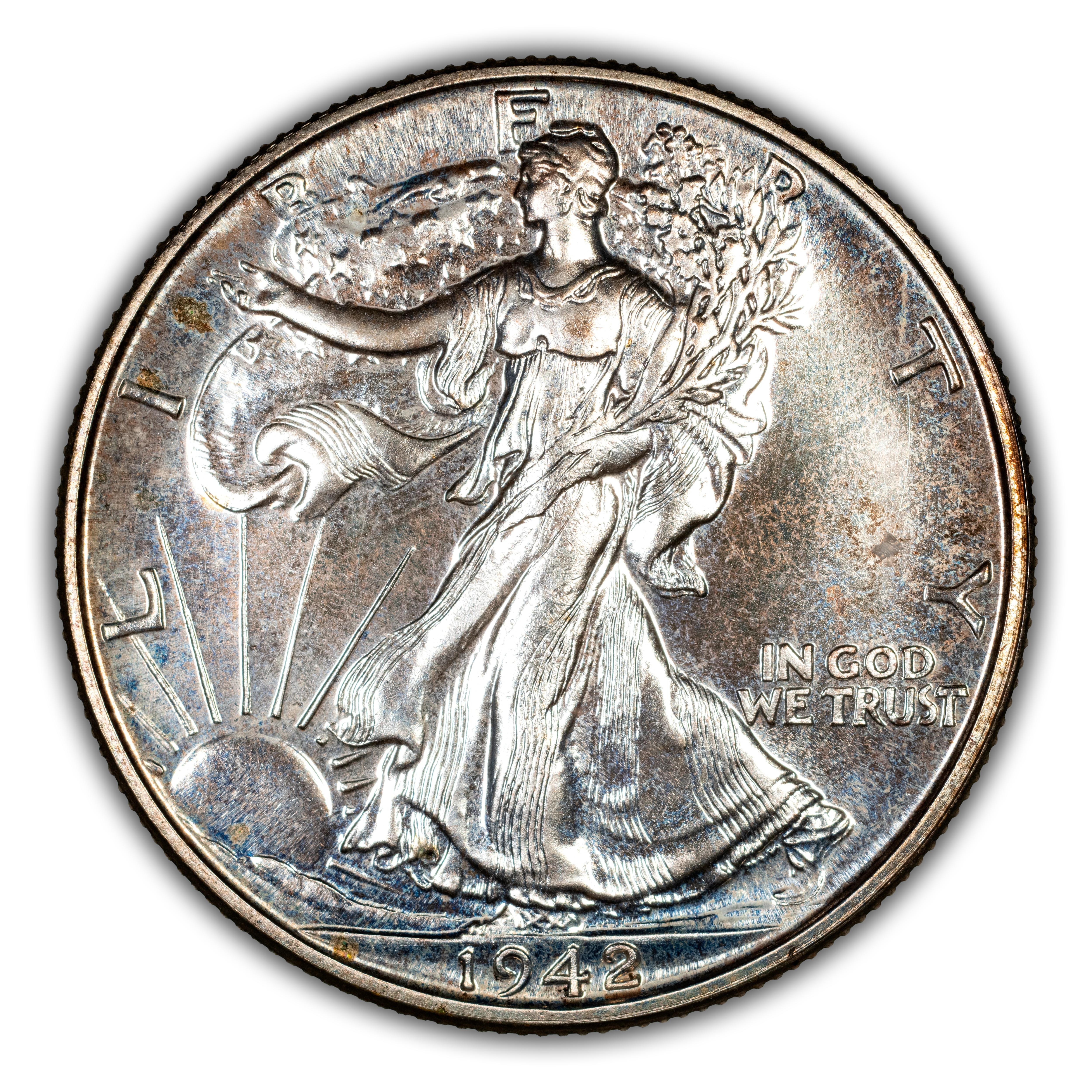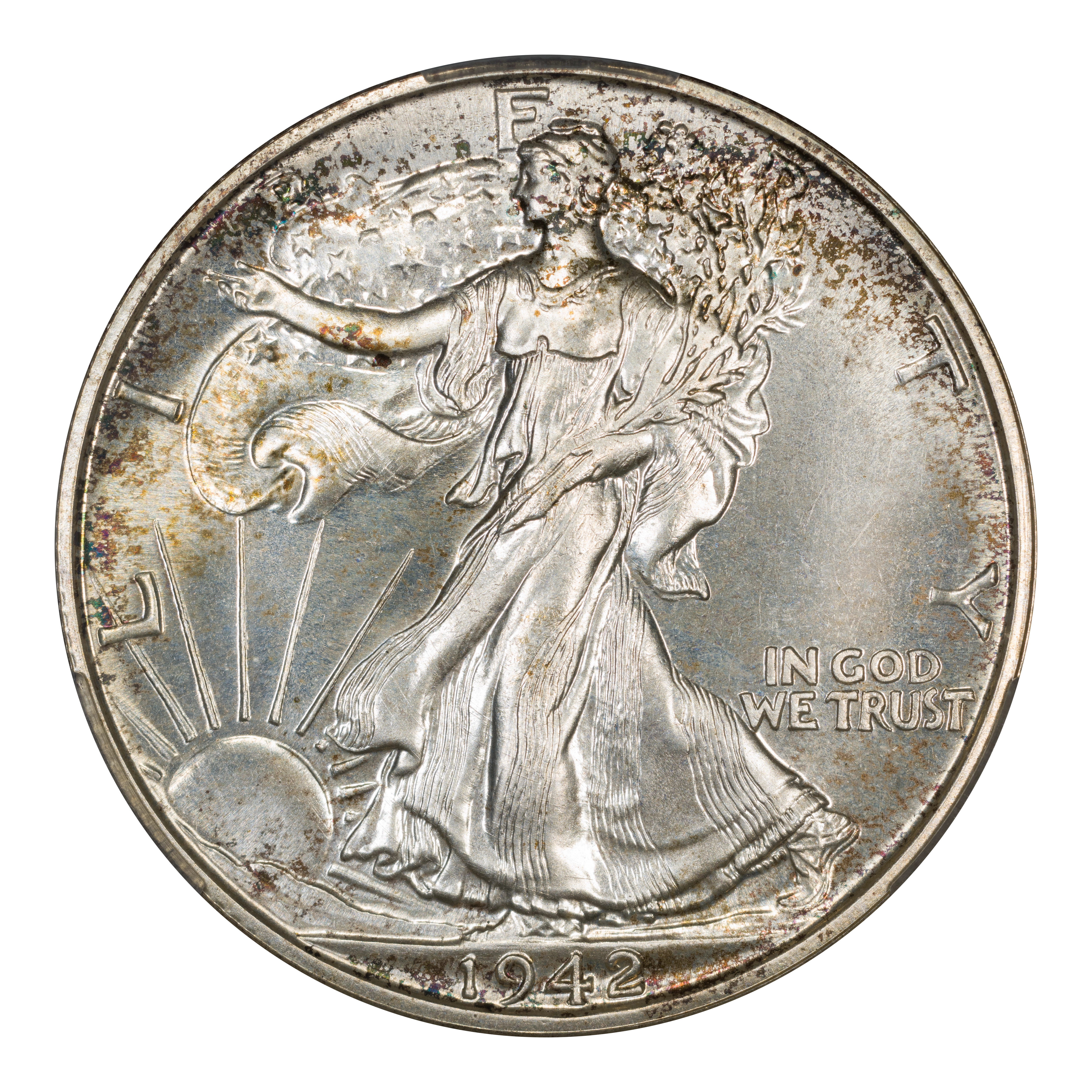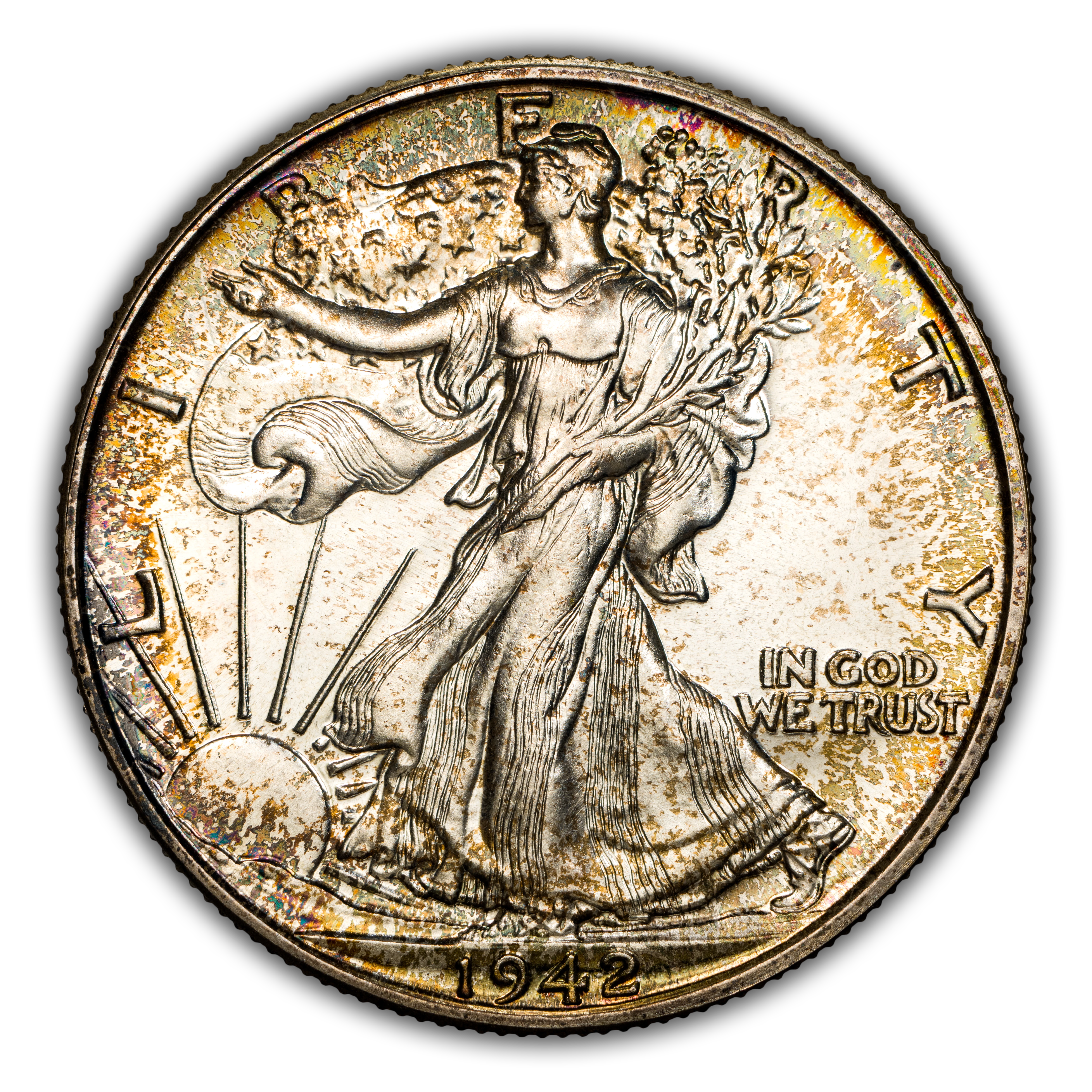 Word War II abruptly ended the production of proofs leaving this series cut very short. The 1942, as a final year of issue, is a great proof Walking Liberty Half Dollar type coin from a mintage of 21,120. It is common overall but scarcer in PR67 and PR68. The few PR69's are extremely rare. Interestingly enough, a handful of Cameo examples do exist in NGC holders.
