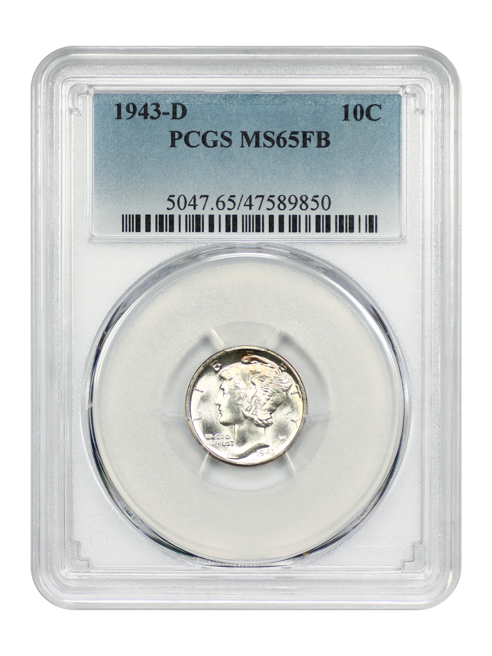 The 1943-S Mercury dime is a common coin in all respects, even with Full Bands details in the grade of MS67. Higher-grading pieces are considerably more scarce and command strong premiums.