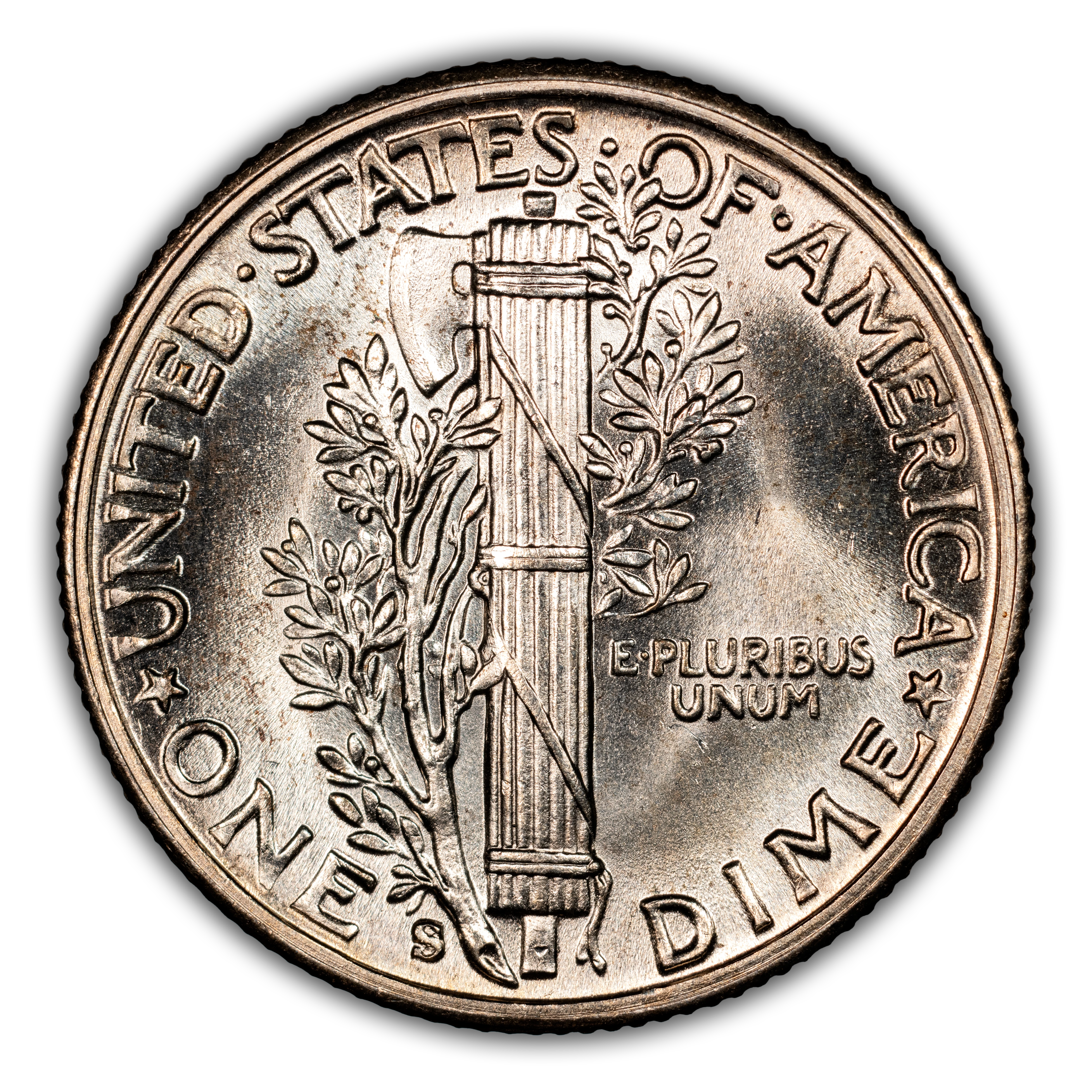 - 1943-S 10c Trumpet Tail Mintmark, FS-511 MS