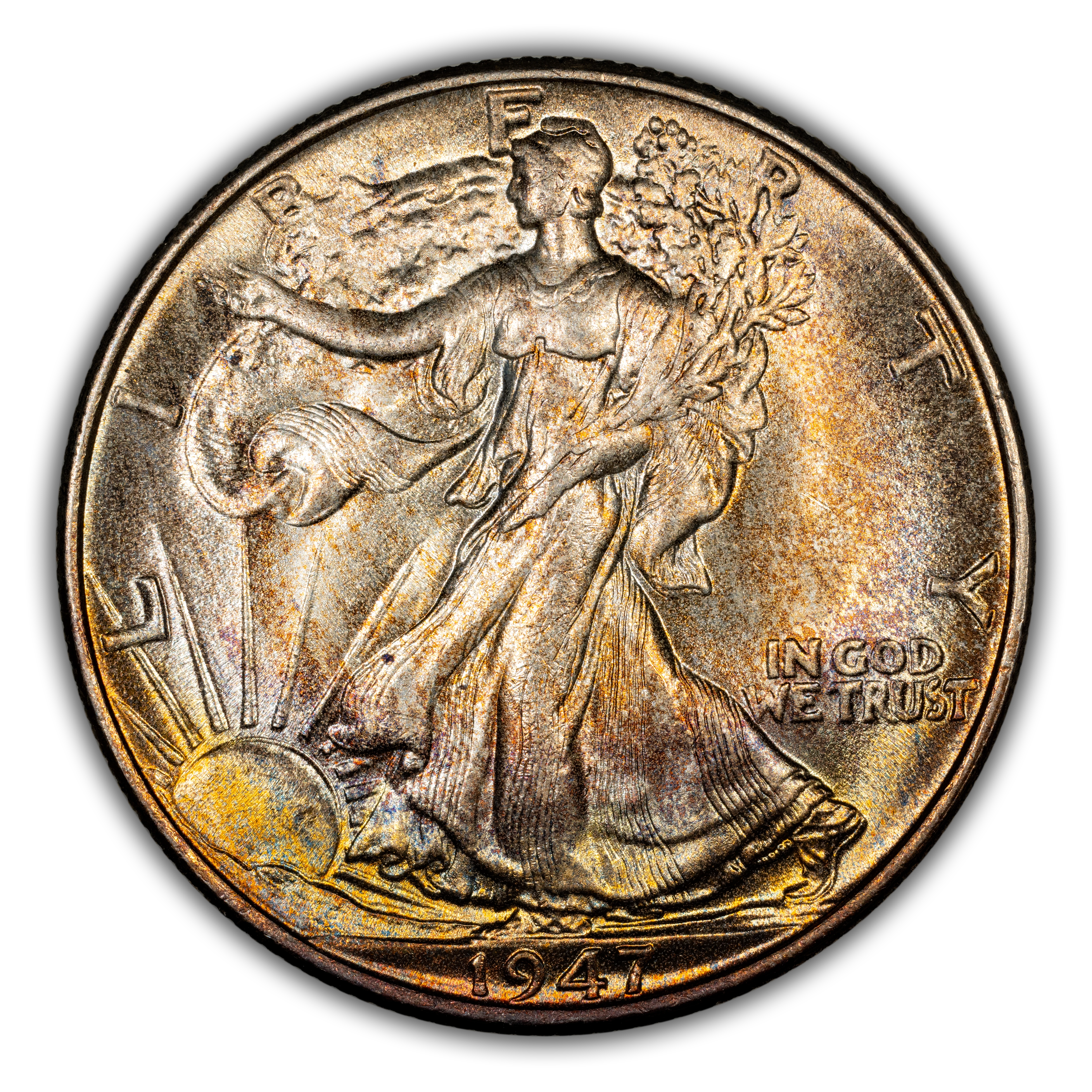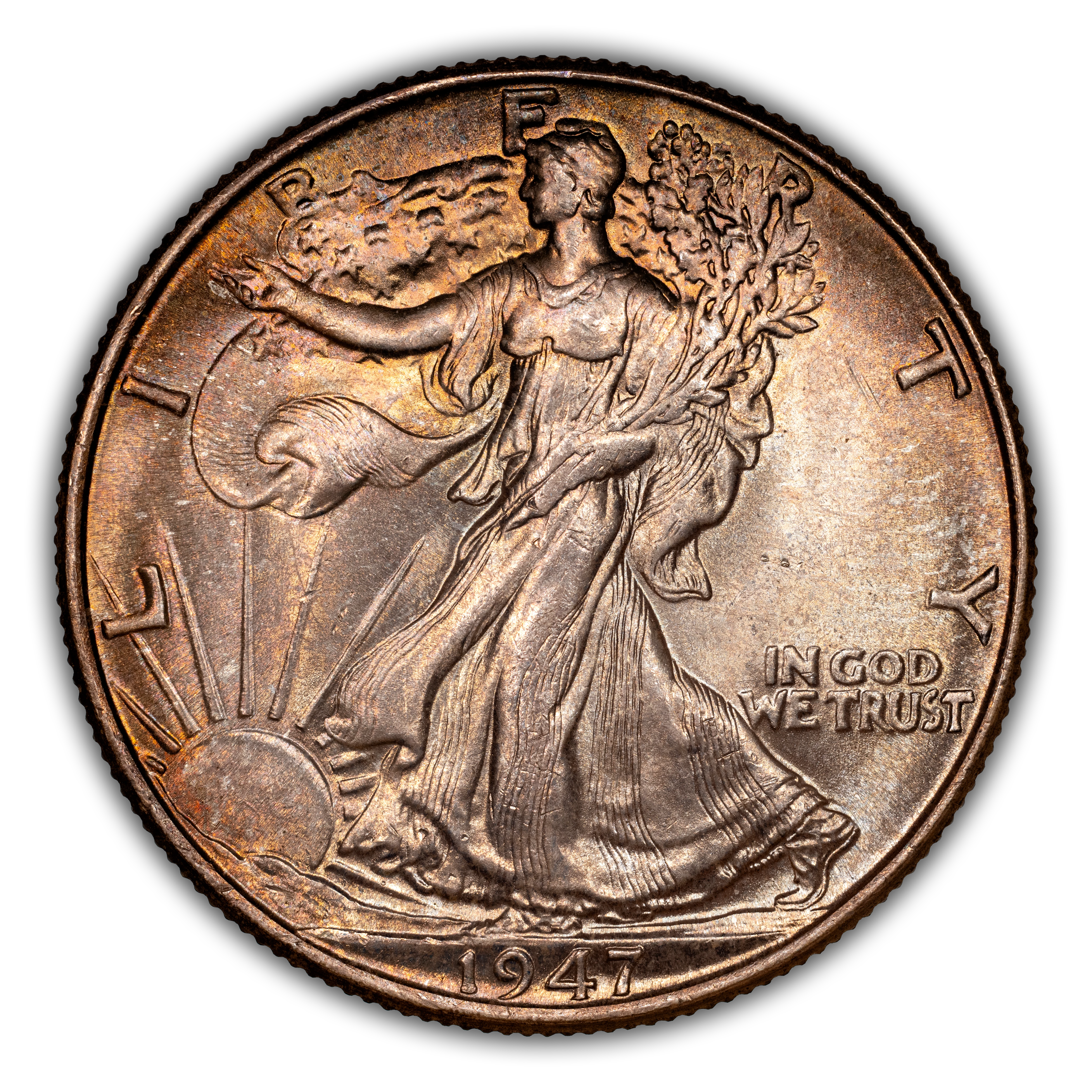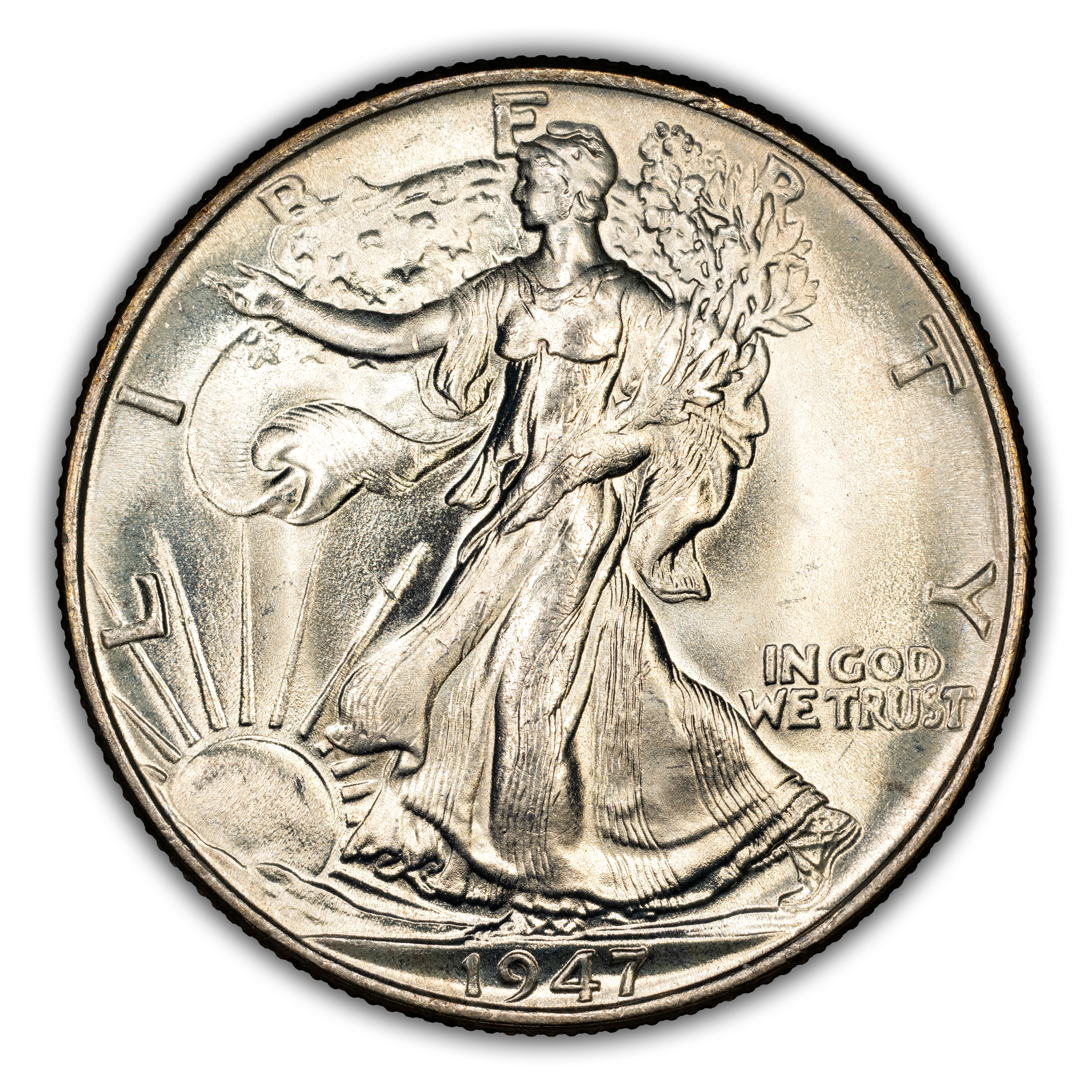 This is the final year of issue out of the Philadelphia Mint for the Walking Liberty Half Dollar Series. Ending the series makes this a very popular type coin. It is also common with just the finest MS67 being slightly scarcer than other 1940’s issues from the same Mint. The 1947’s come well struck with quality luster.