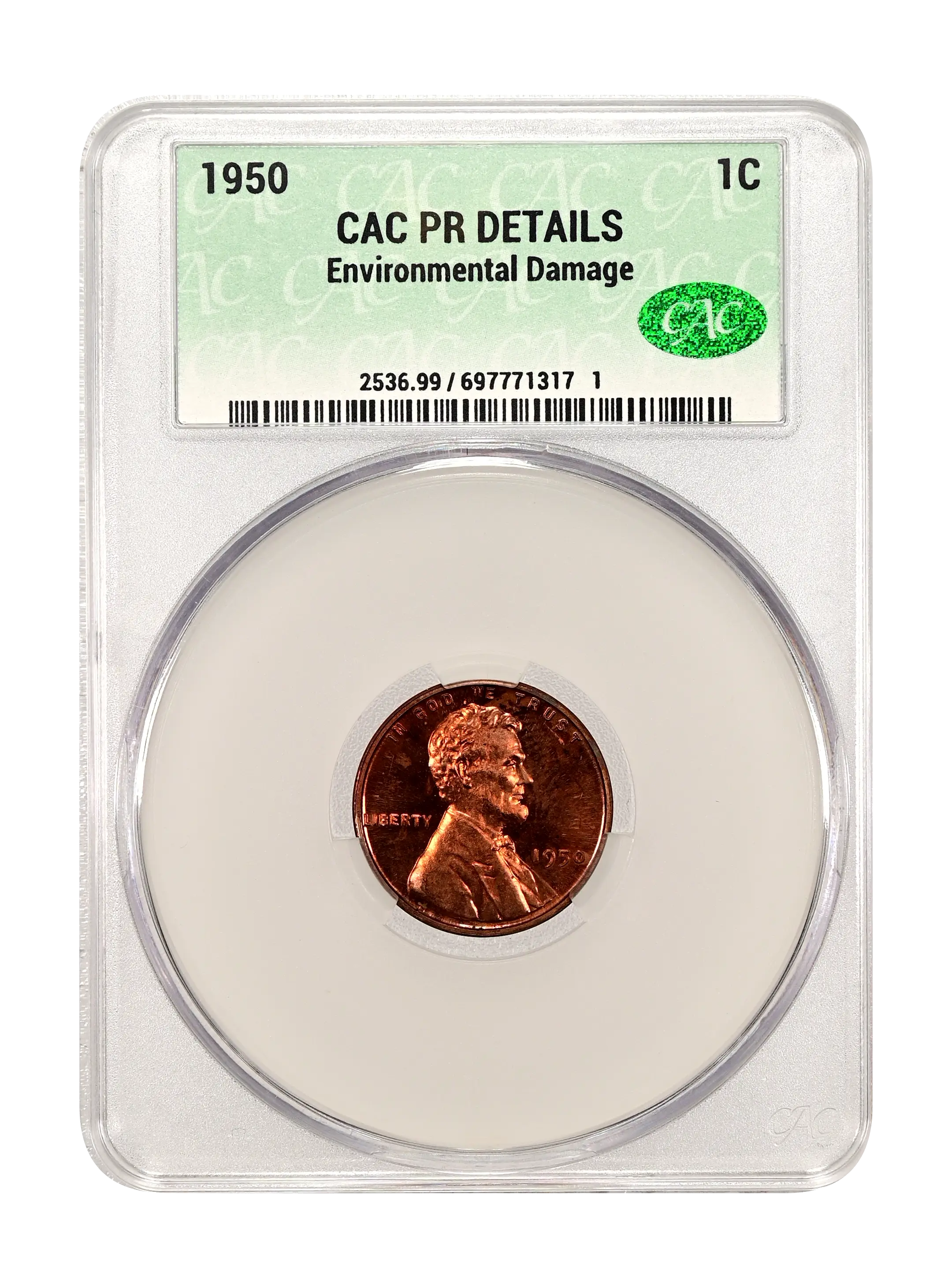 The year 1950 marks the first striking of proof coins in seven years, with the long hiatus due to the United States Mint focusing its efforts on making enough business-strike coinage to feed a hungry wartime economy and to make medals and other special pieces for World War II military personnel and their families. 1950 proof Lincoln cents aren't very scarce, though individuals buying these coins would be served best by purchasing pieces with minimal spots, even color, and nice overall eye appeal. Cameo specimens are especially desirable and strong worth premiums.