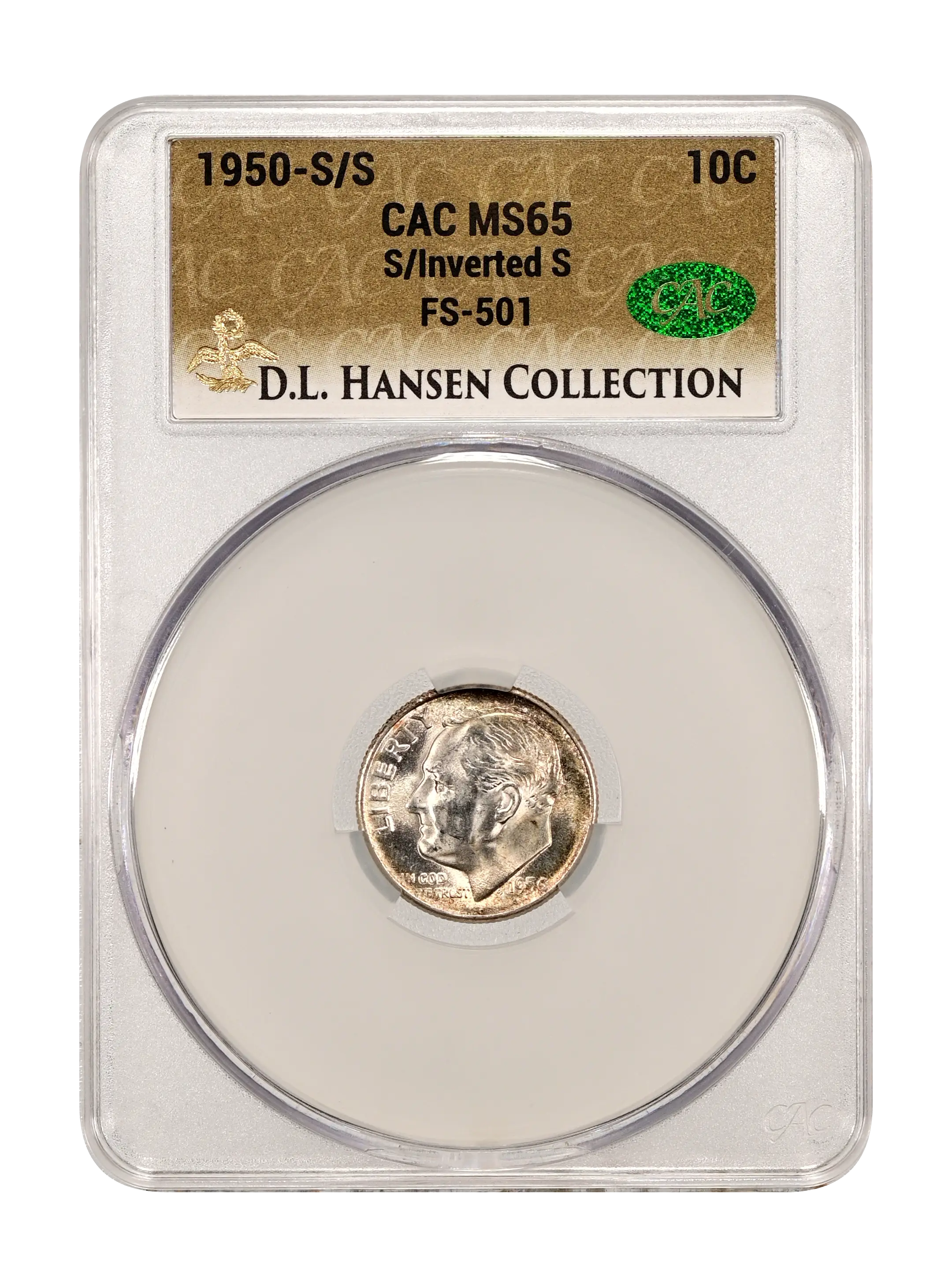 1950-S/S 10C Over Inverted S, FS-501, MS65 PCGS. PCGS Population: (24/26 and 0/1+)....