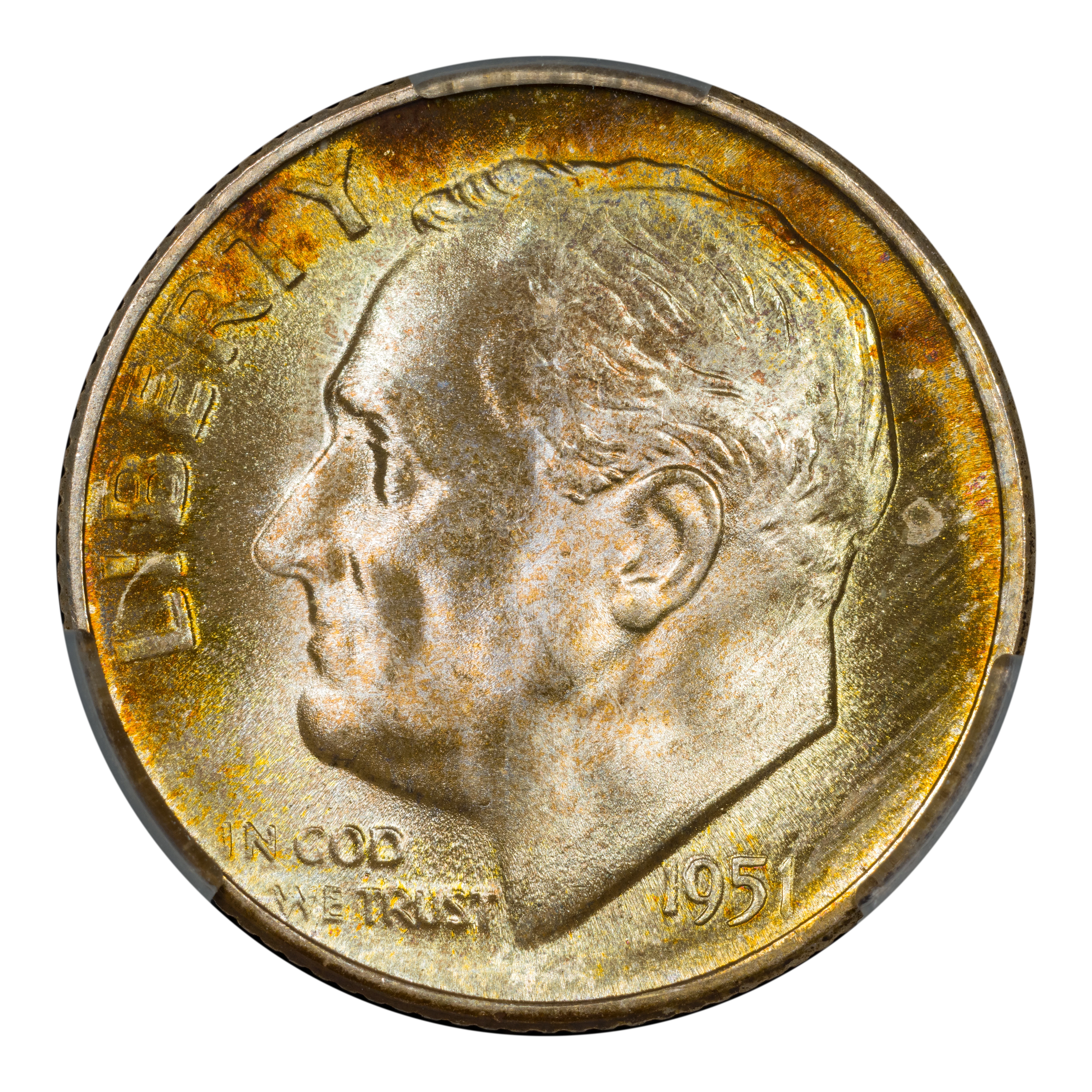 1951-S 10c PCGS MS68 * Amazing Rainbow Toning *