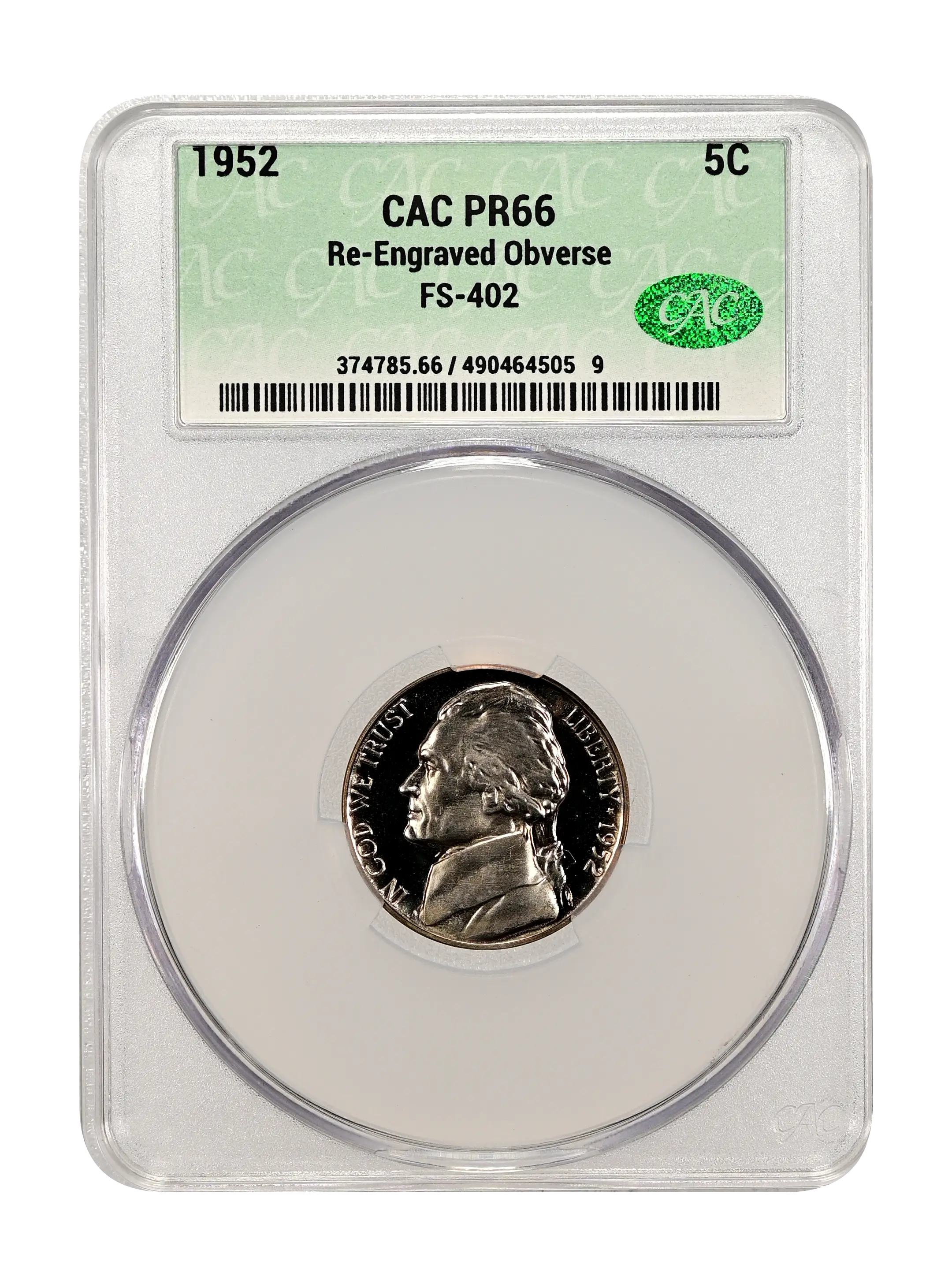 1952 Re-Engraved Obverse 5c FS-402 (Proof) CAC PR66