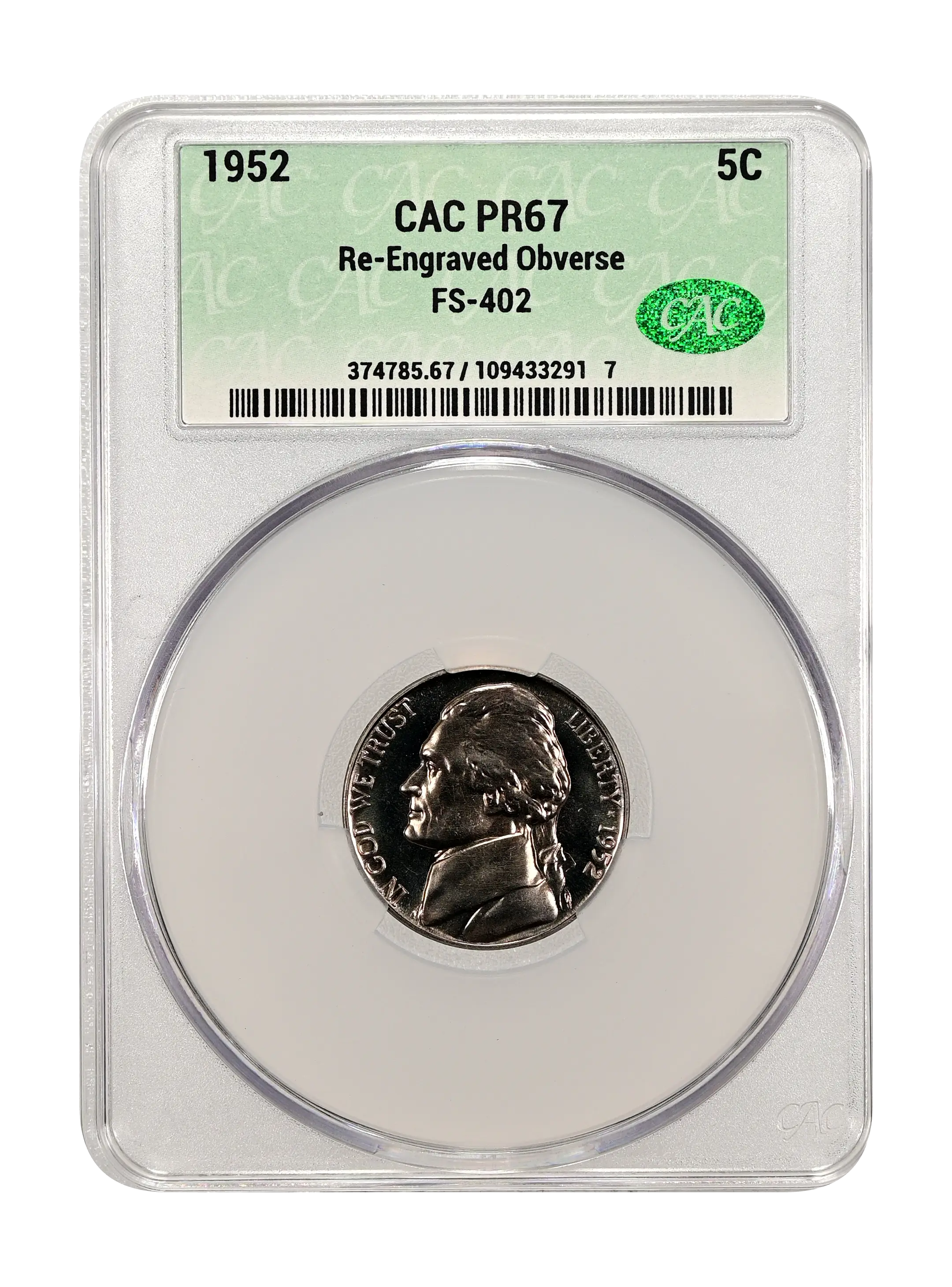 1952 Re-Engraved Obverse 5c FS-402 (Proof) CAC PR67