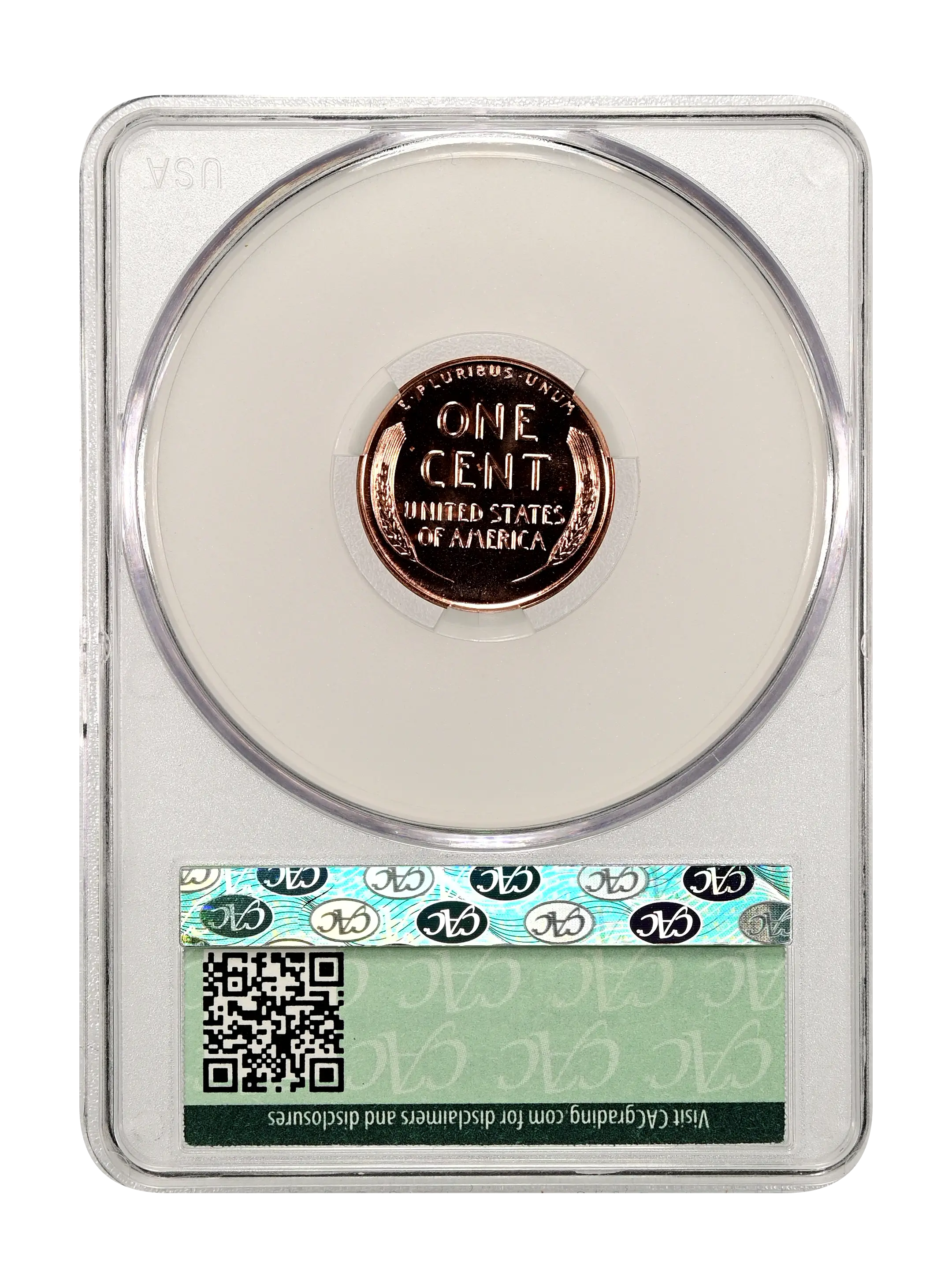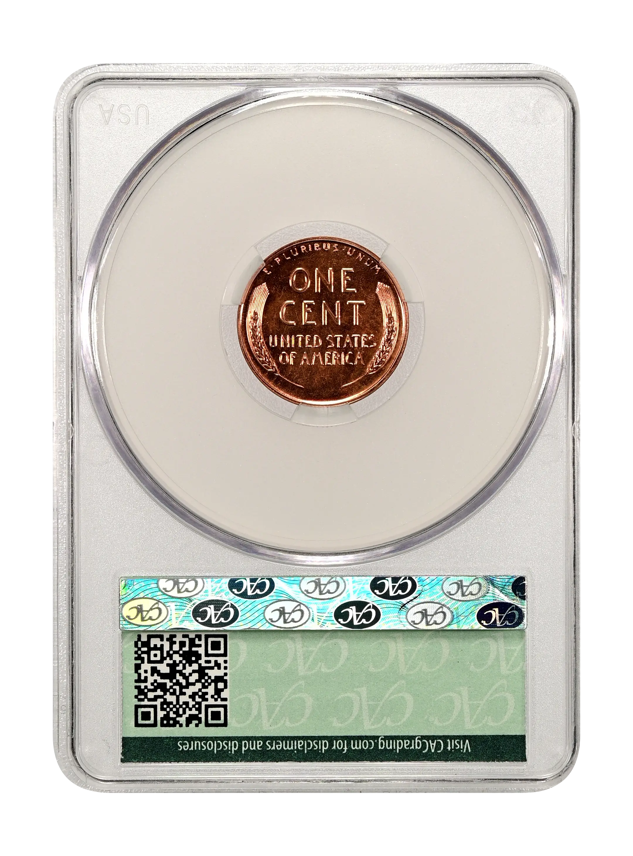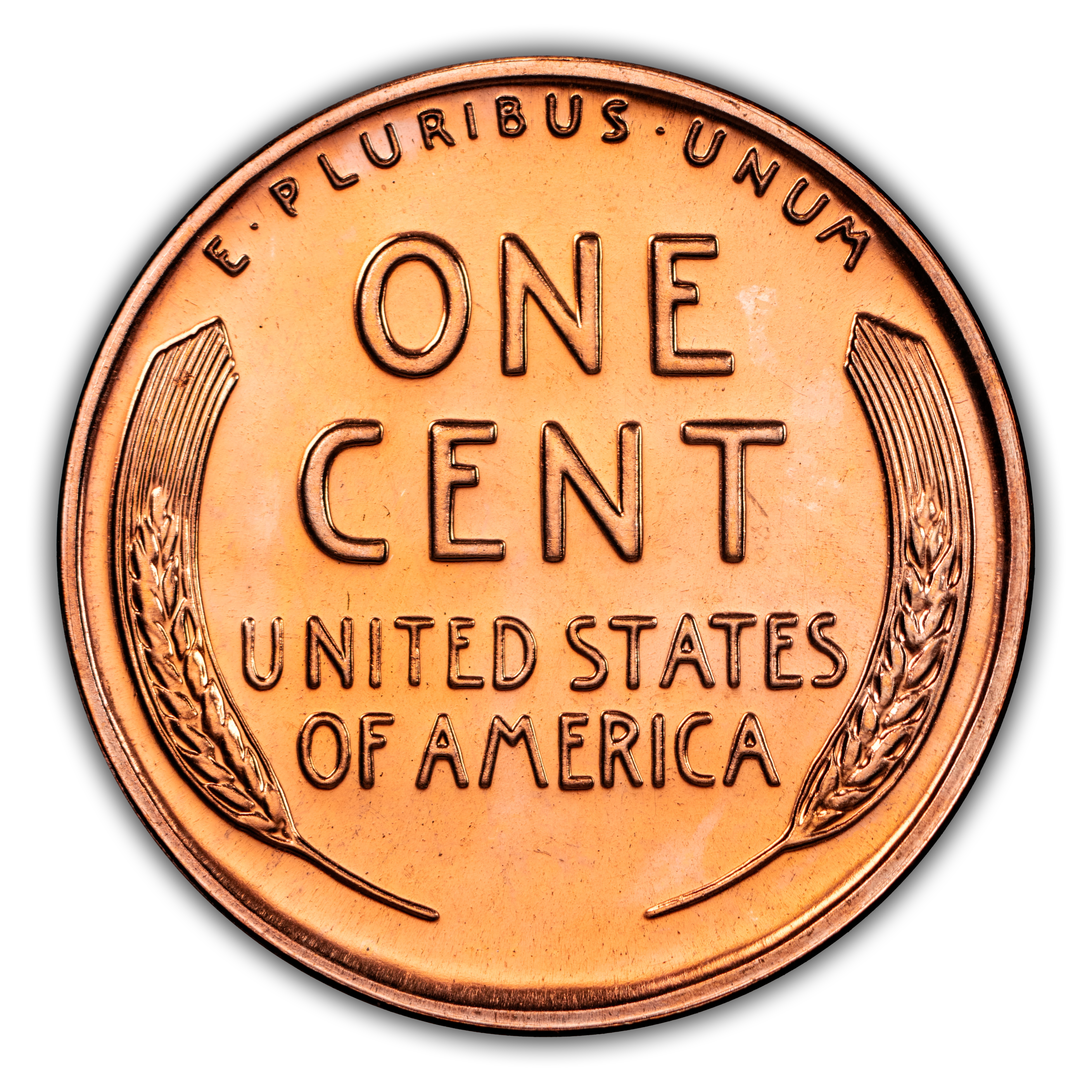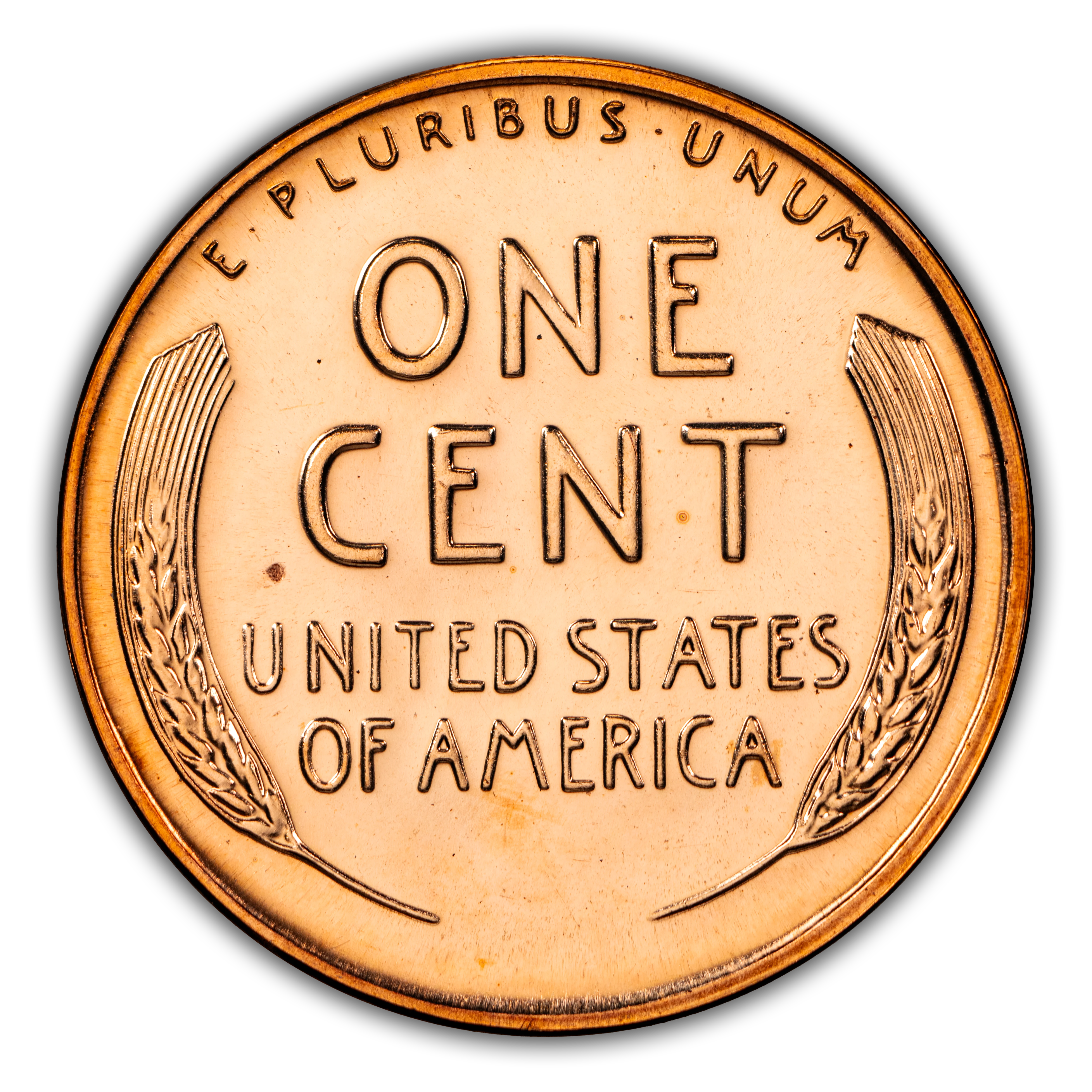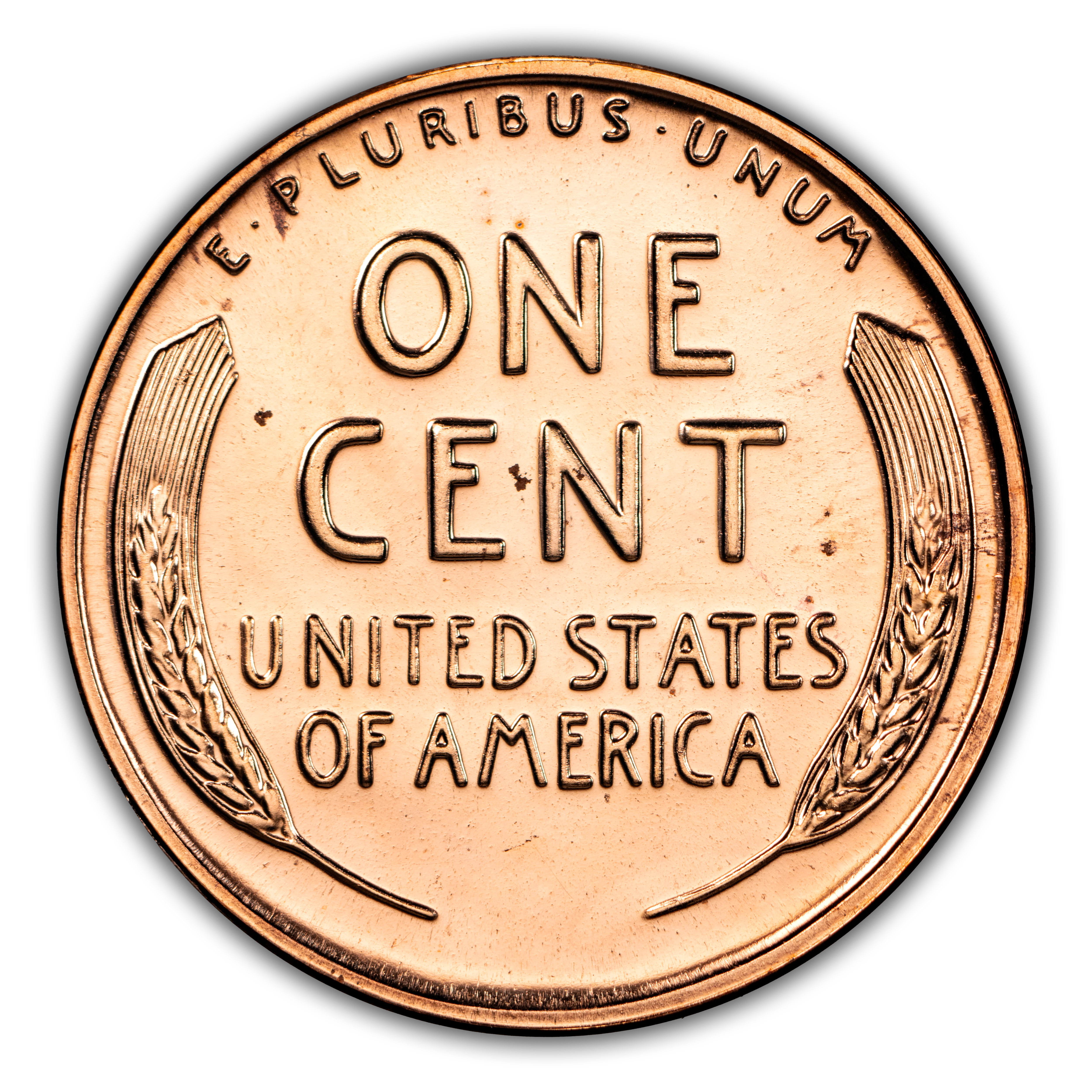 Reverse: Wheat ears flanking the words ONE CENT, UNITED STATES OF AMERICA. The motto E PLURIBUS UNUM on the top perimeter.