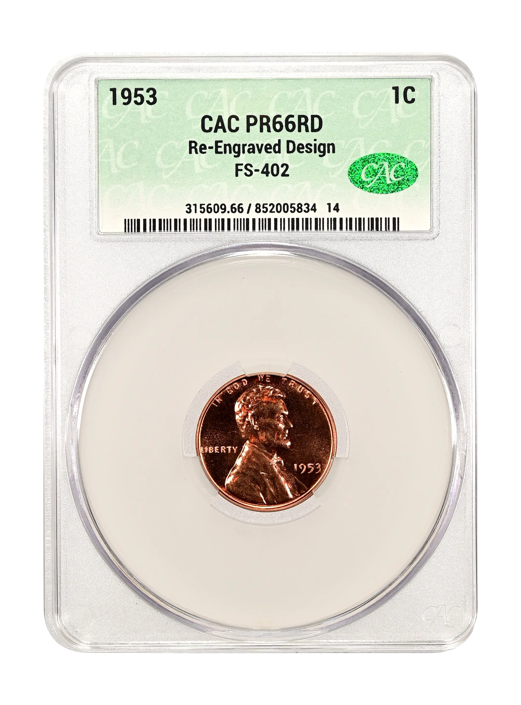 1953 Re-Engraved Design 1c FS-402 RD (Proof) CAC PR66RD