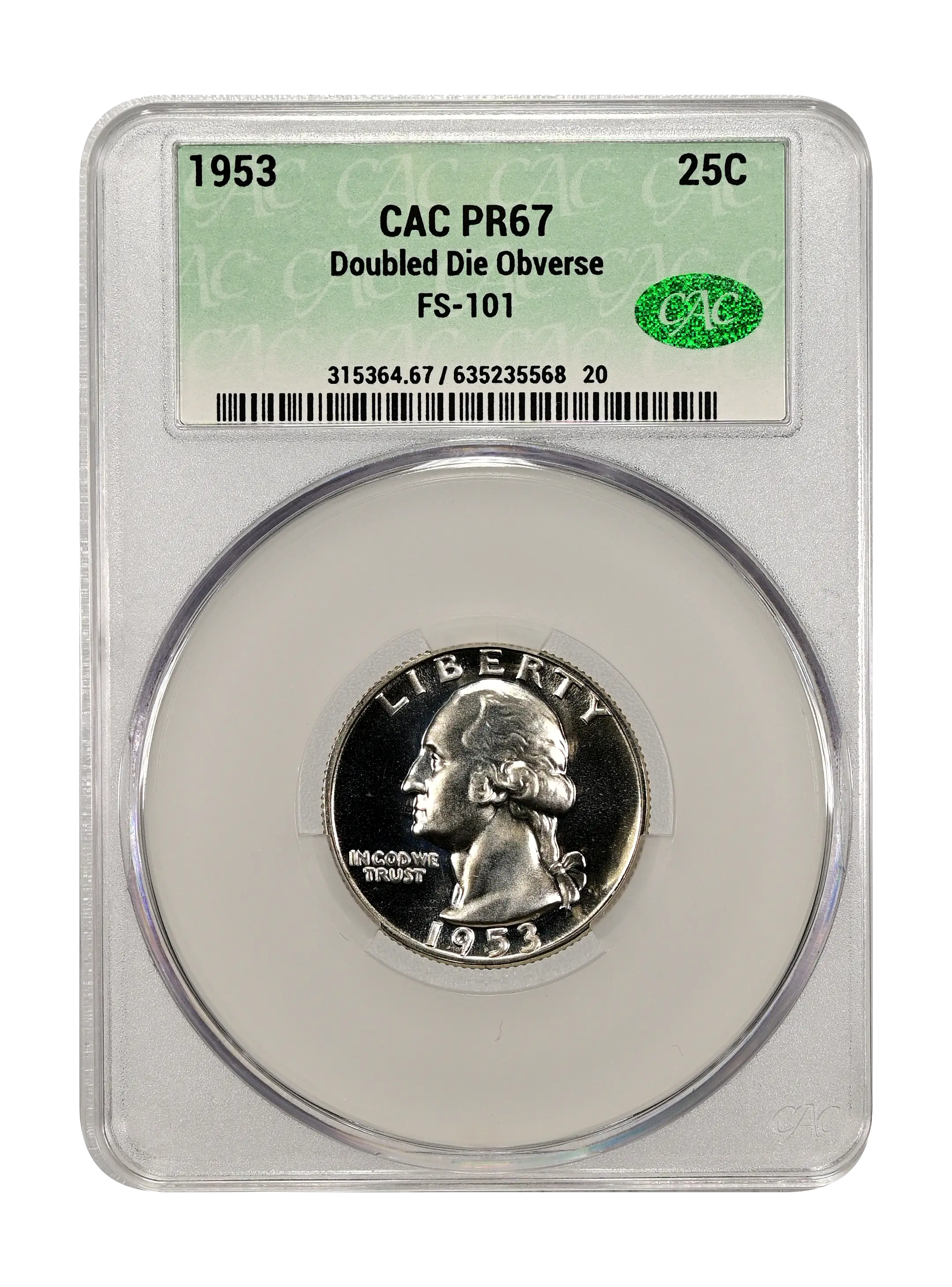 1953 Doubled Die Obverse 25c FS-101 (Proof) CAC PR67