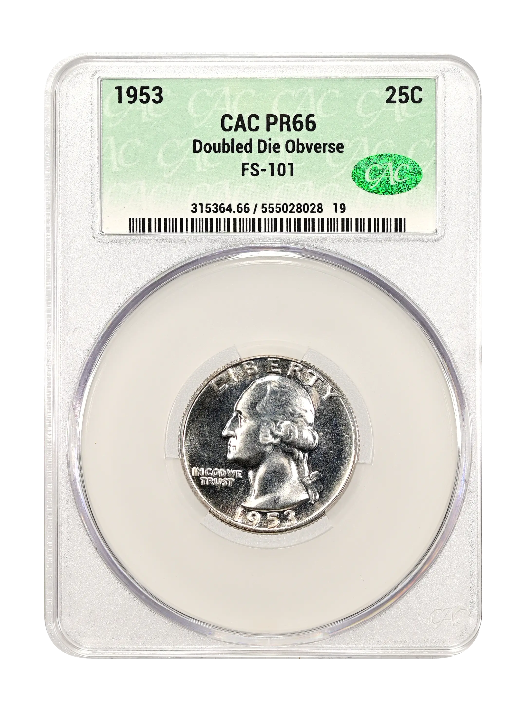 1953 Doubled Die Obverse 25c FS-101 (Proof) CAC PR66