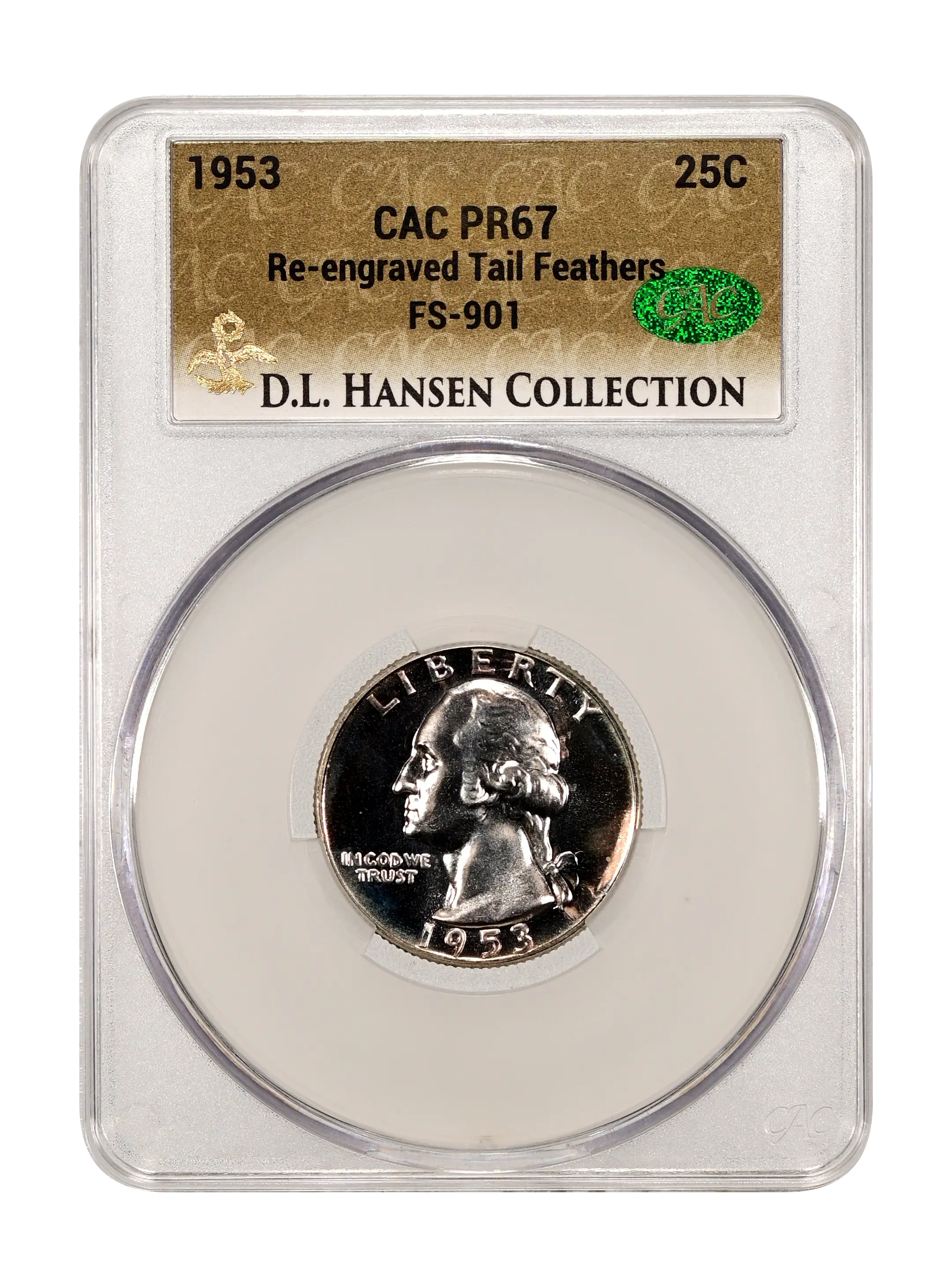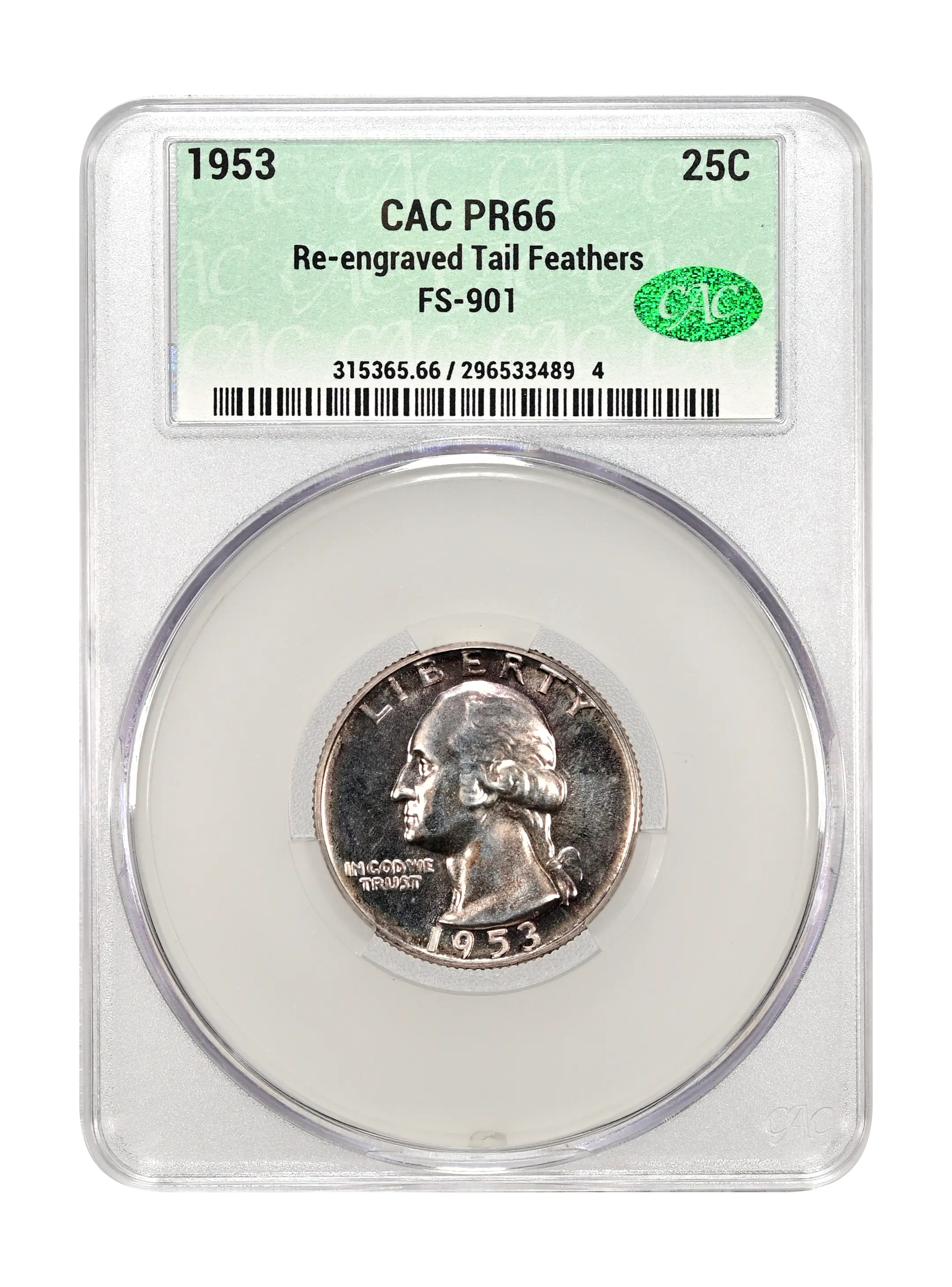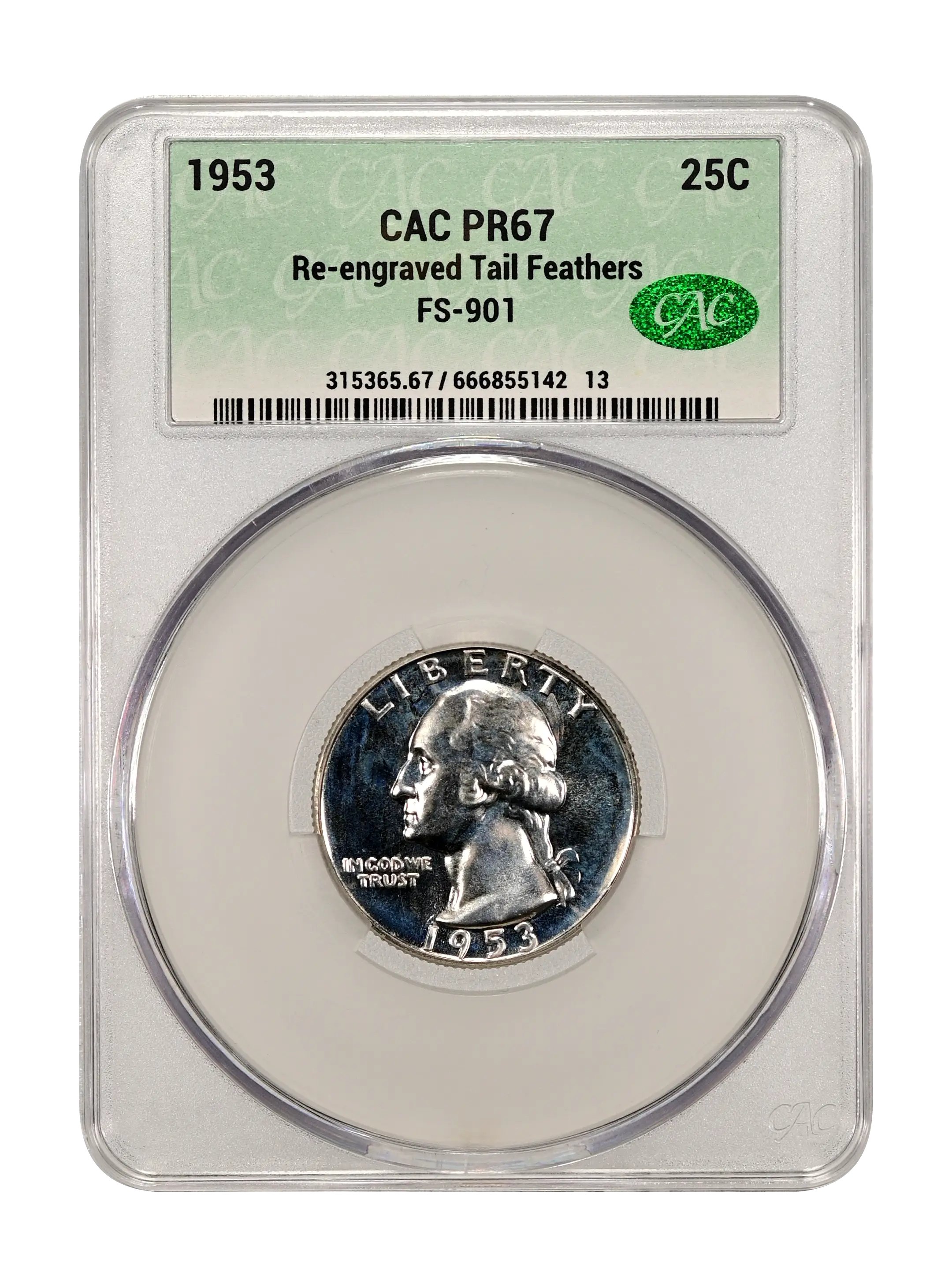1953 Re-engraved Tail Feathers 25c FS-901 (Proof) CAC PR67