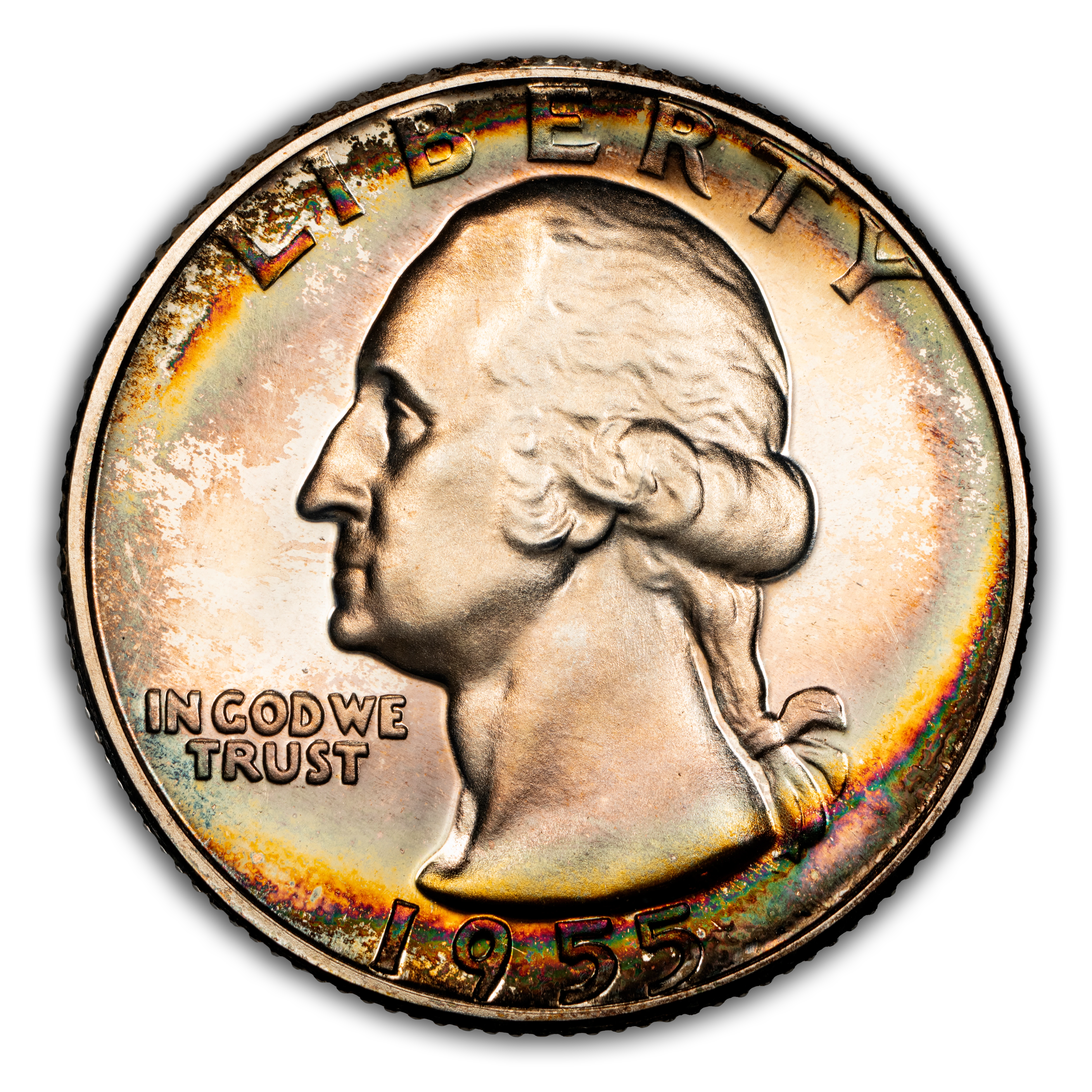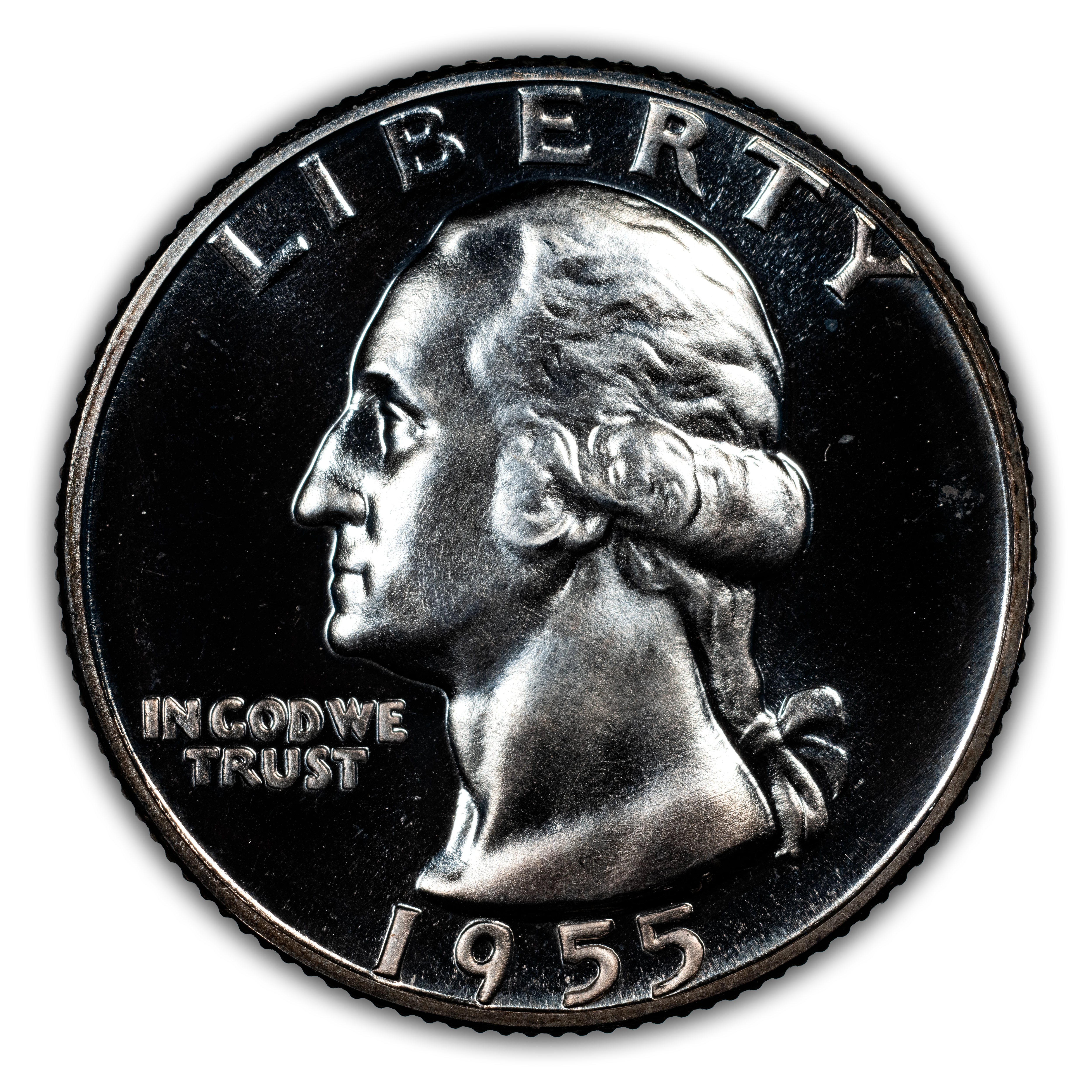 Reverse: Large eagle with wings fully extended, clutching a bundle of arrows with the words UNITED STATES OF AMERICA at the top periphery; QUARTER DOLLAR at the bottom. An olive leaf is positioned between the eagle and the denomination.