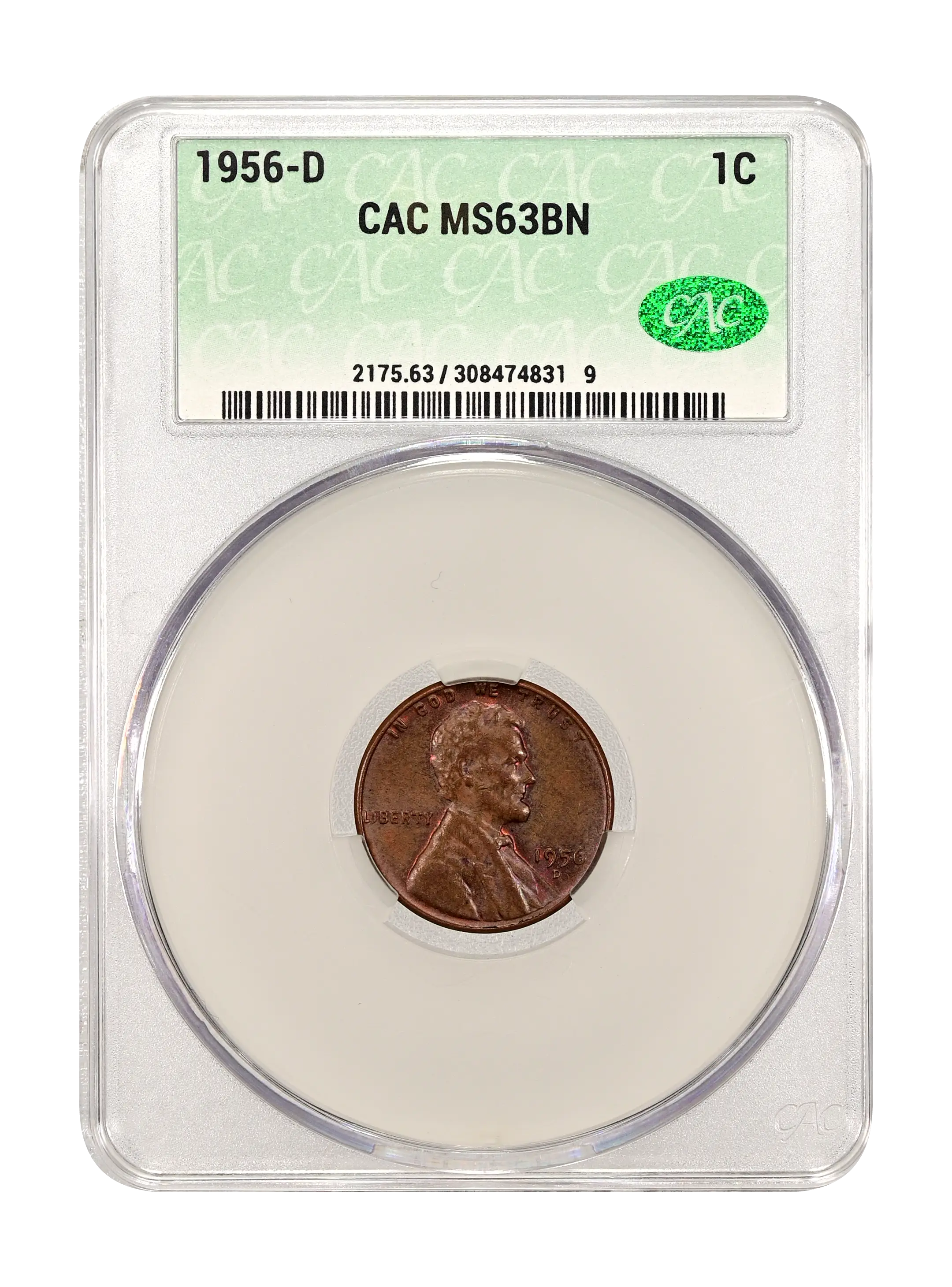 1956-D 1c BN CAC MS63BN