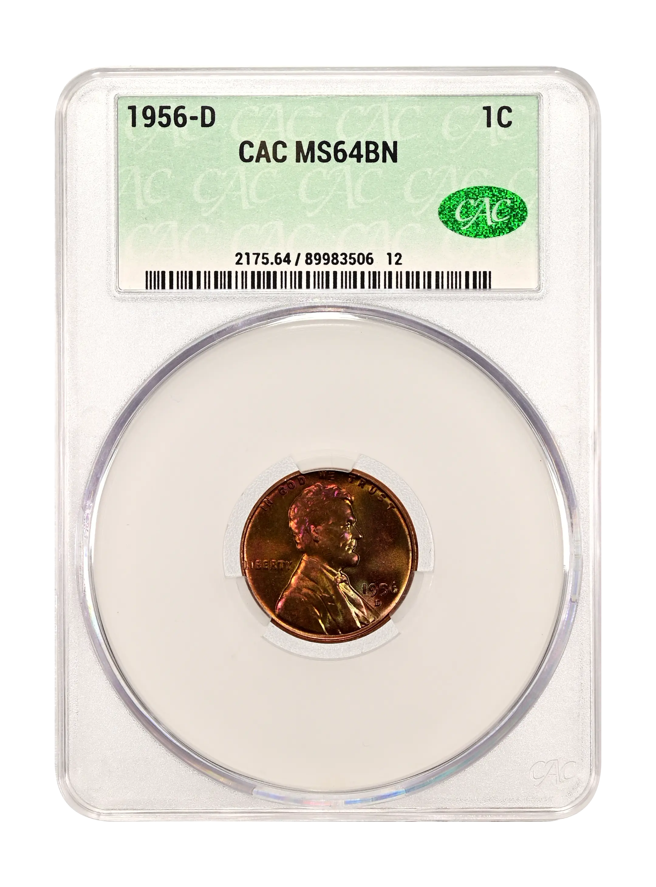 1956-D 1c PCGS MS64 BN - Colorful Reverse Toning