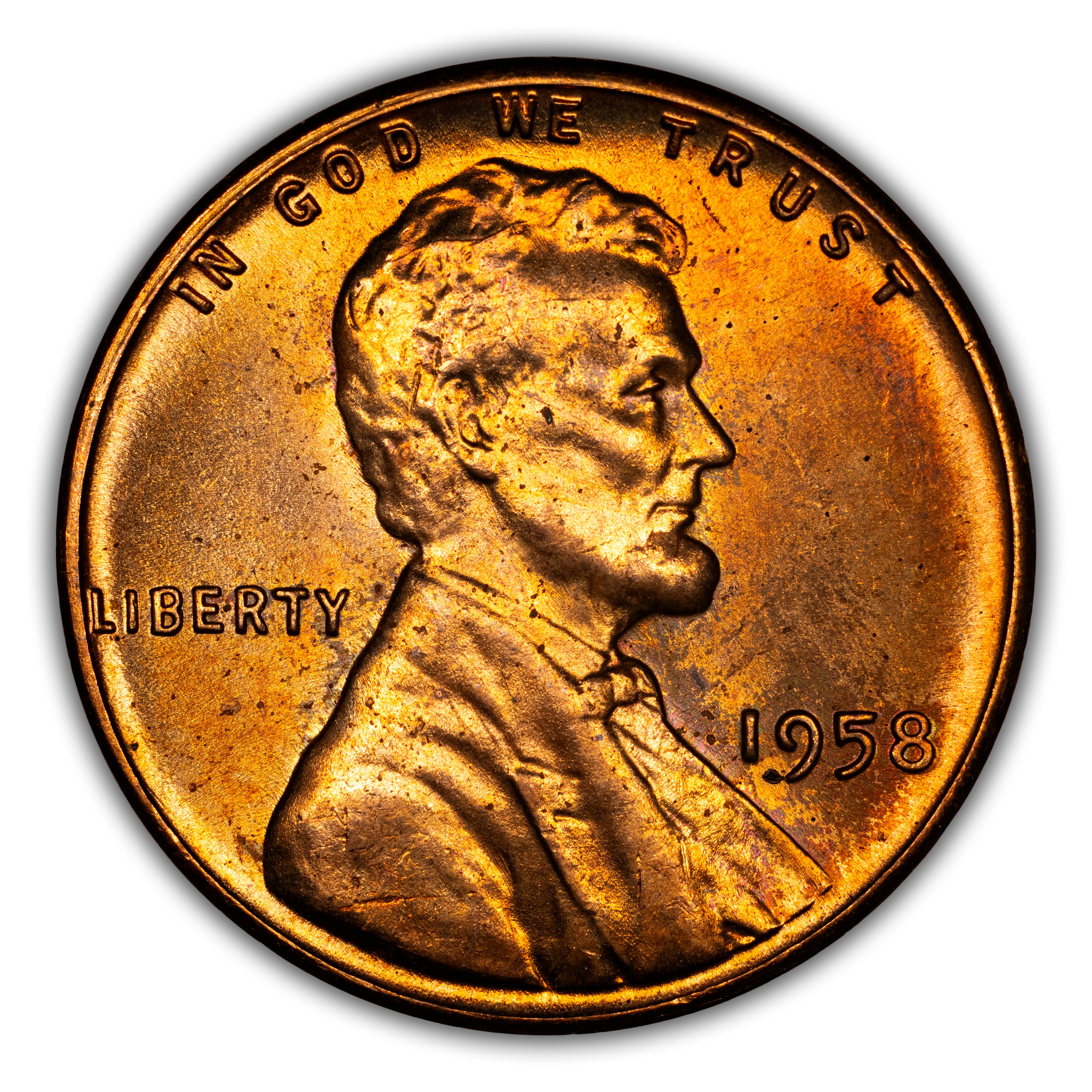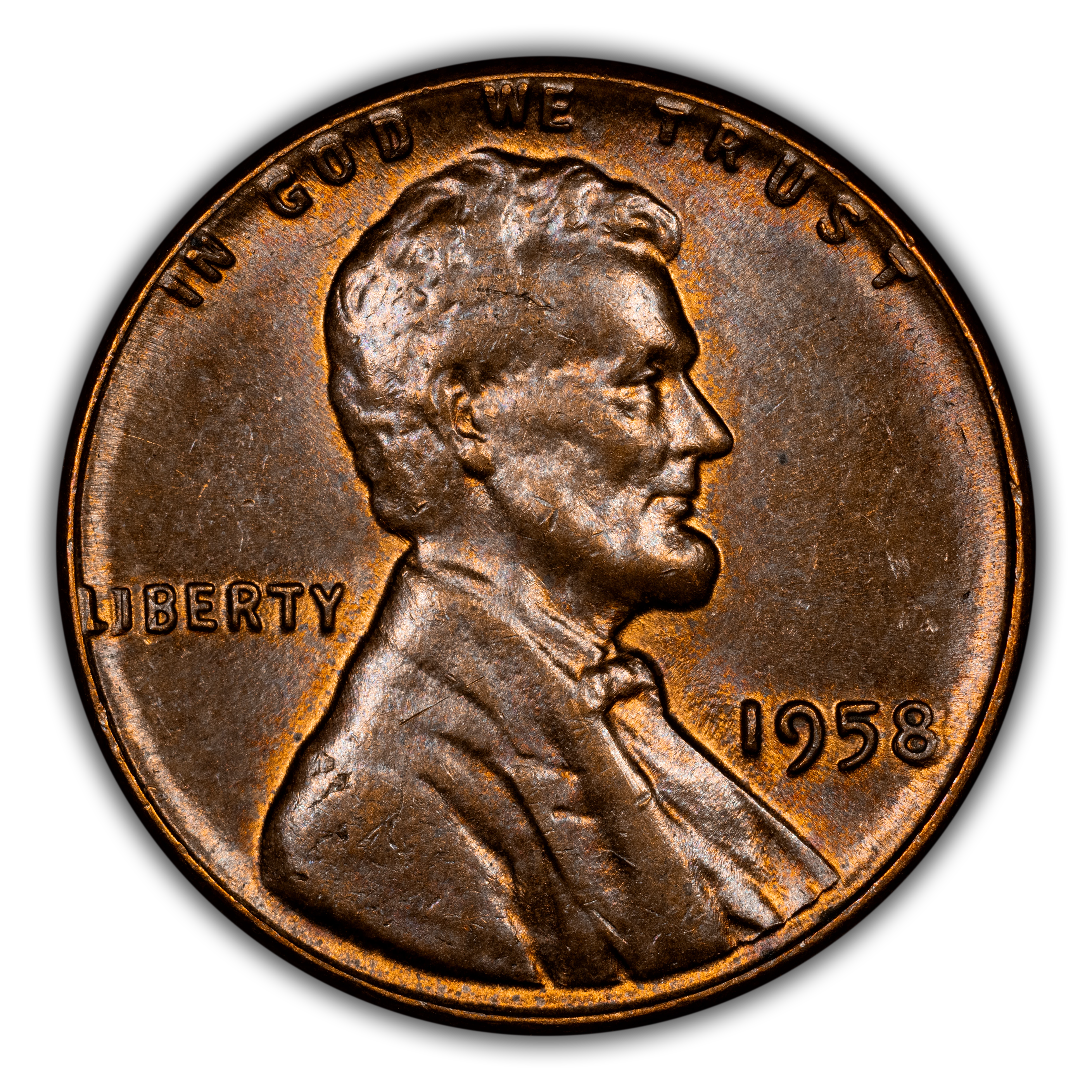 1958 represents the last year of the long-running wheat ears reverse motif that debuted with the Lincoln cent in 1909. Numbers of surviving examples are huge for this last-year type coin in grades ranging from low-end circulated up through MS66. In grades of MS67 and higher, the 1958 Lincoln cent is a remarkably tough coin with that ranks high on the want lists of registry set collectors.
