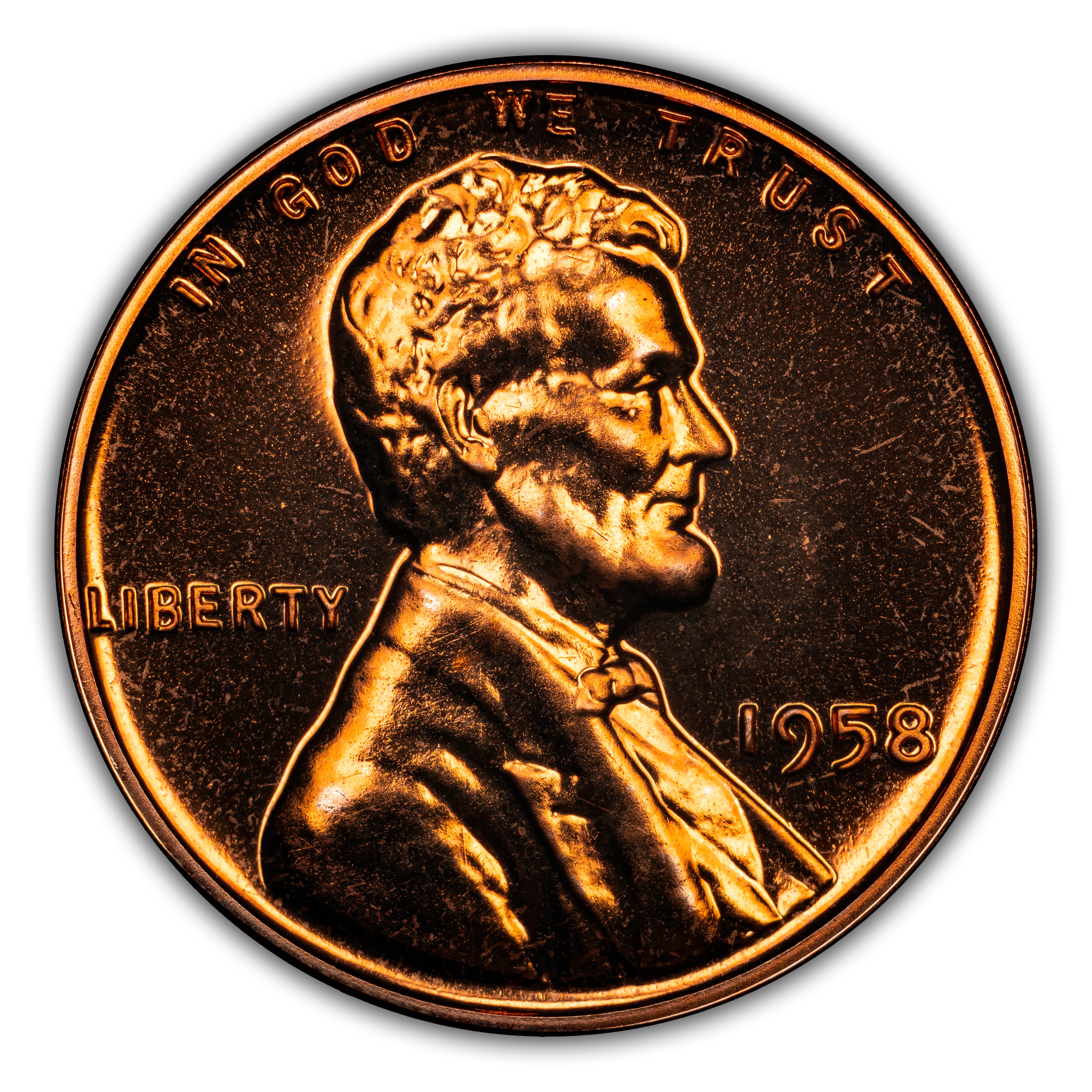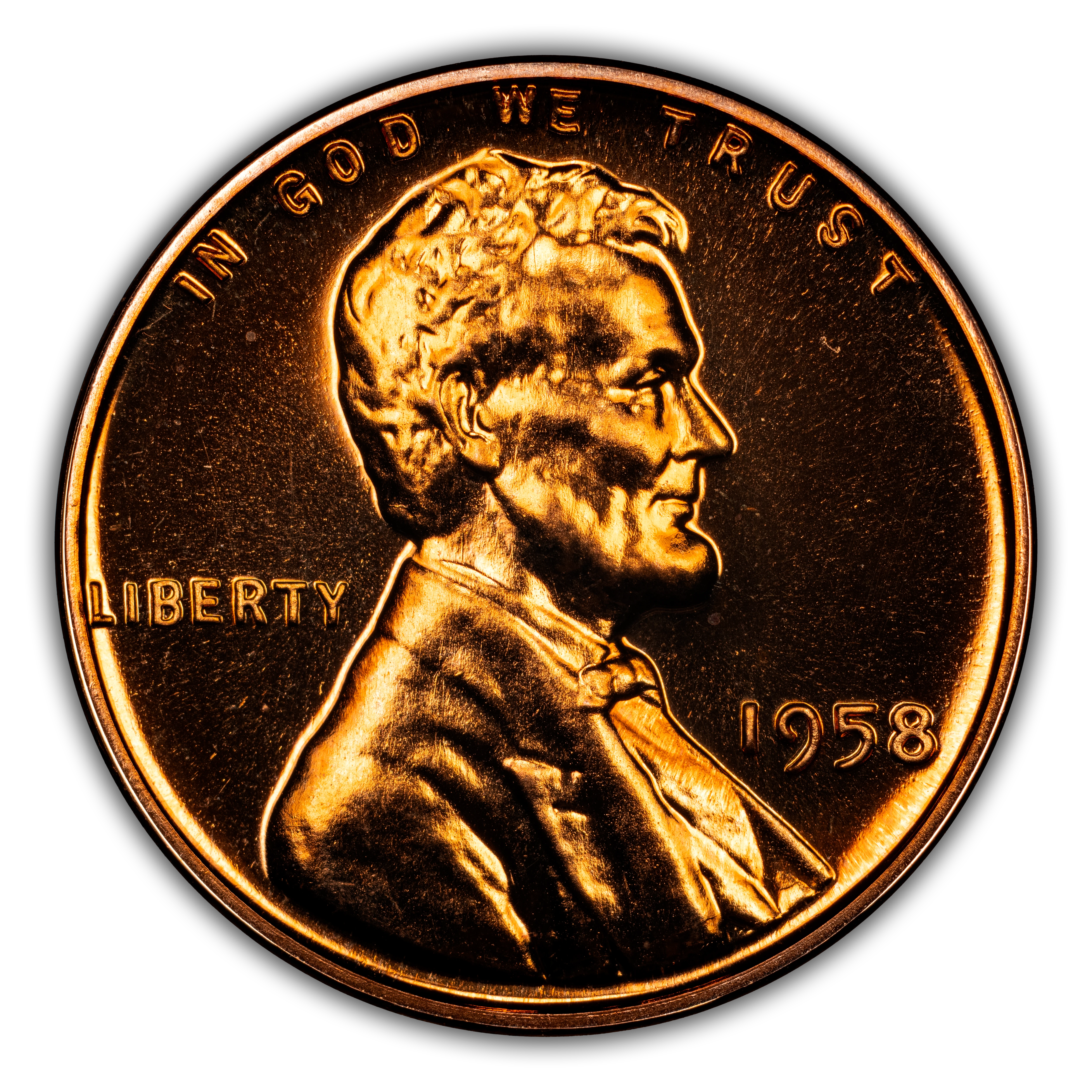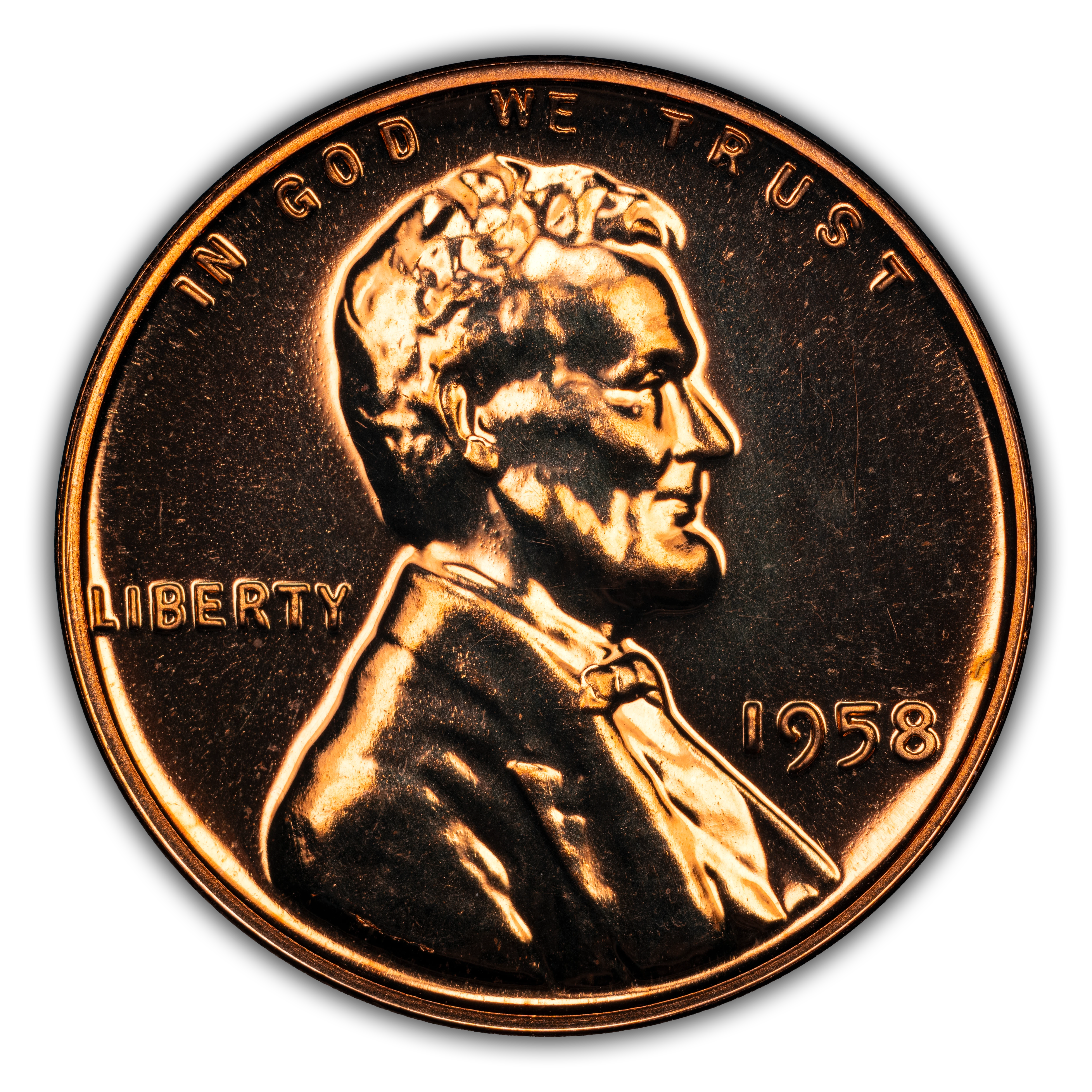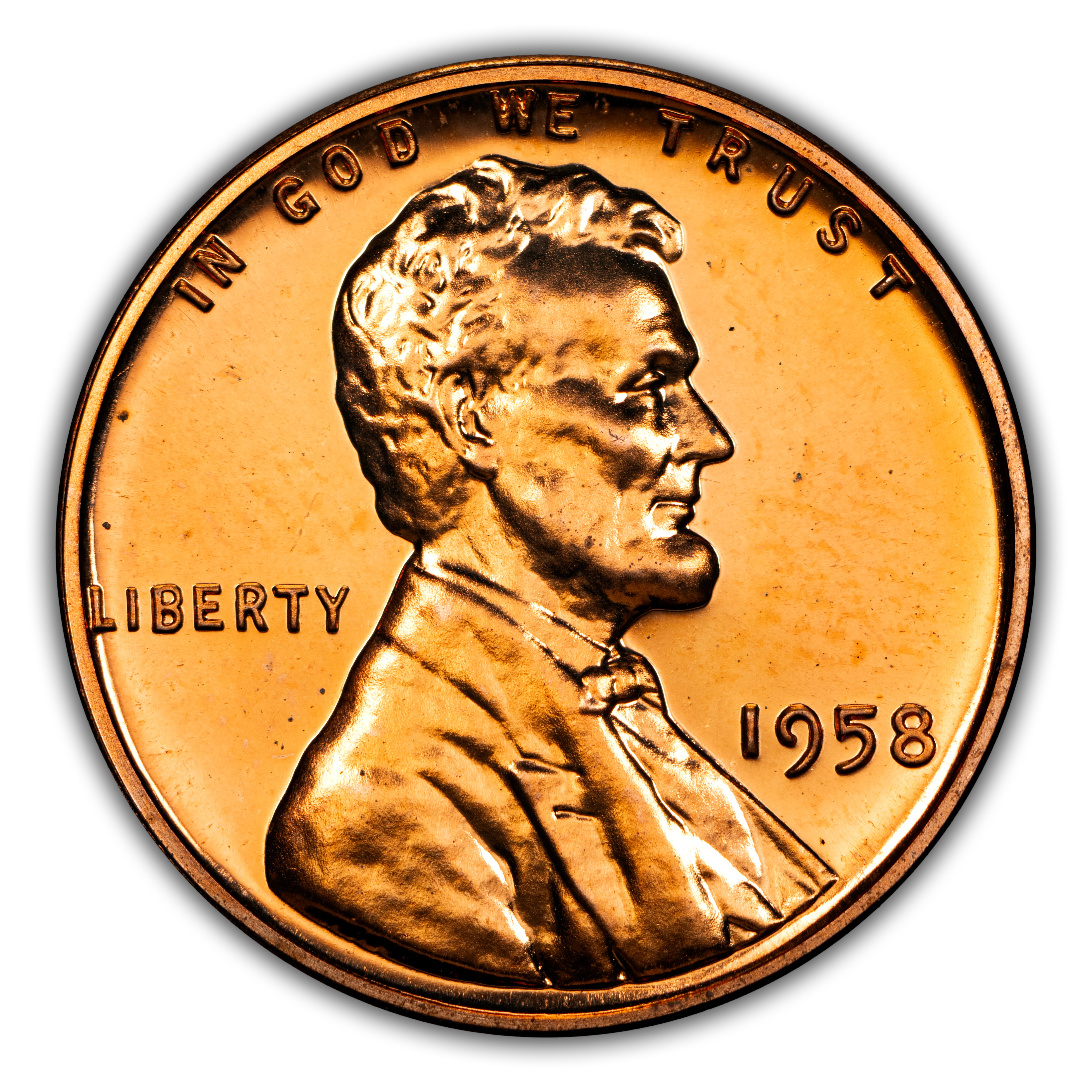 The year 1958 marks the end of the road for the Lincoln wheat cent. Plenty of examples exist in all color designations and in grades running the gamut from PR60 through PR67, though pieces grading higher are scarce. Examples with deep cameo frosting are extraordinarily difficult, particularly for pieces on which the cameo contrast is found on both the obverse and reverse, and is uninterrupted by marks or other detractions.