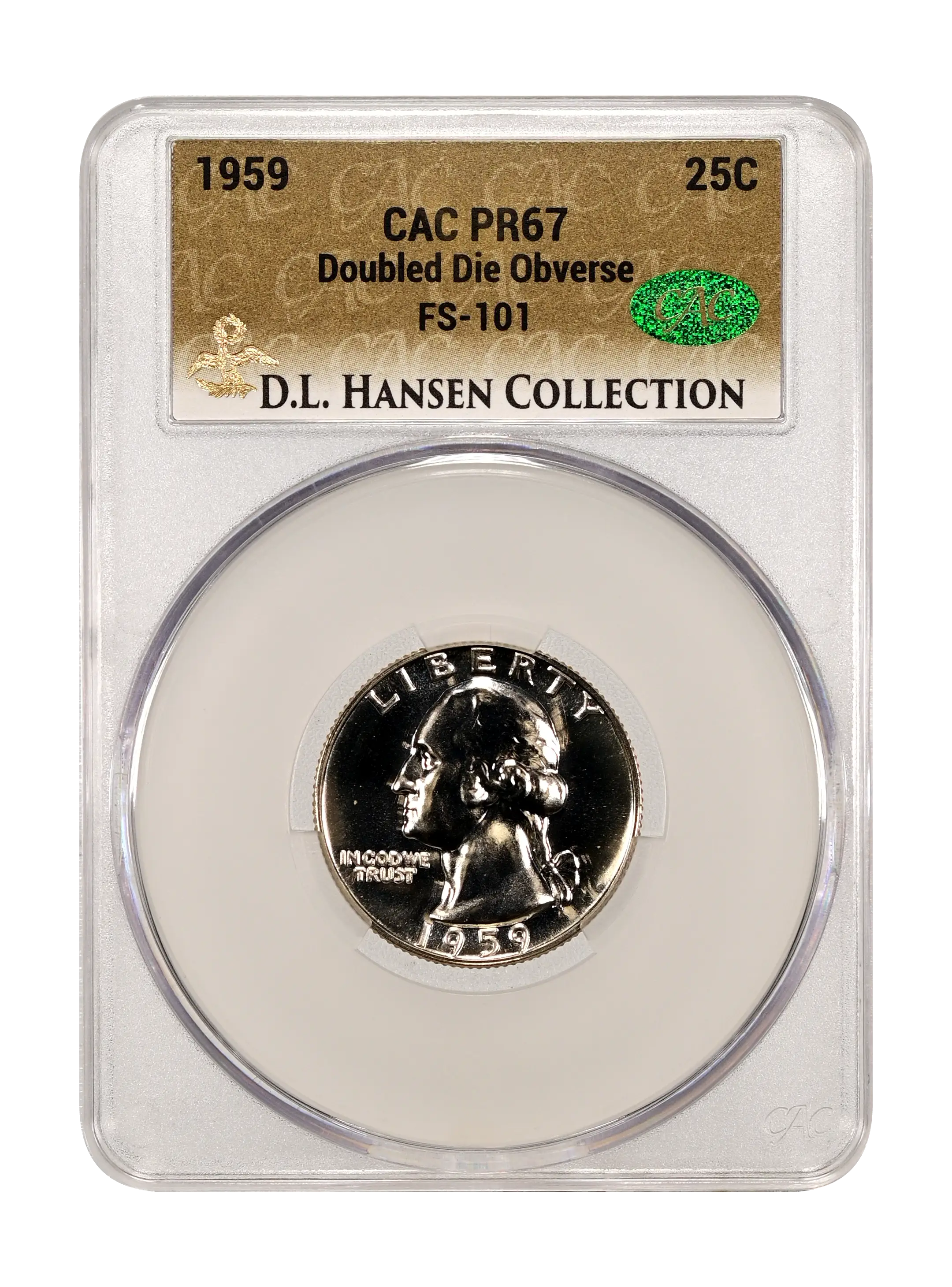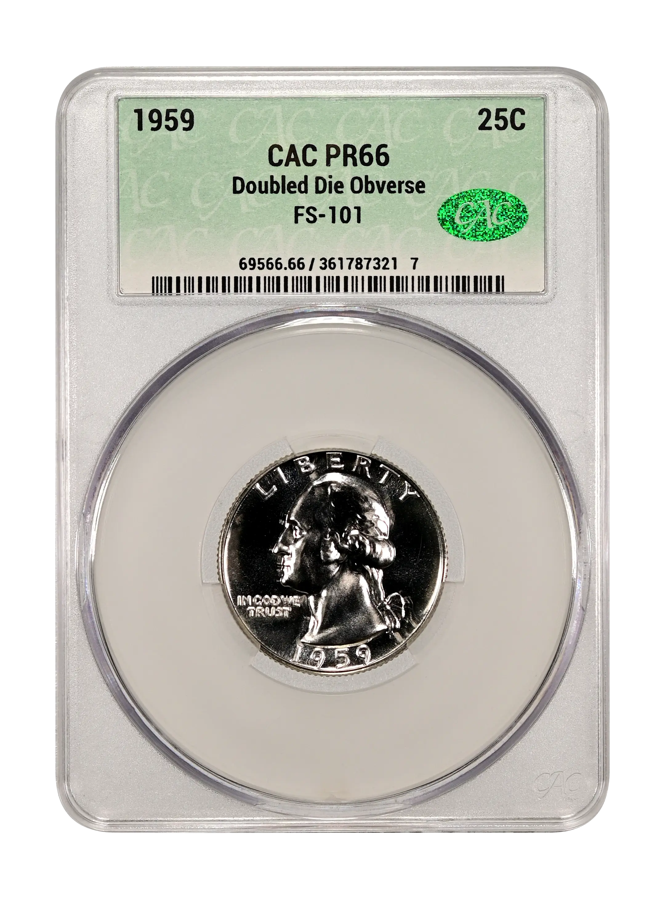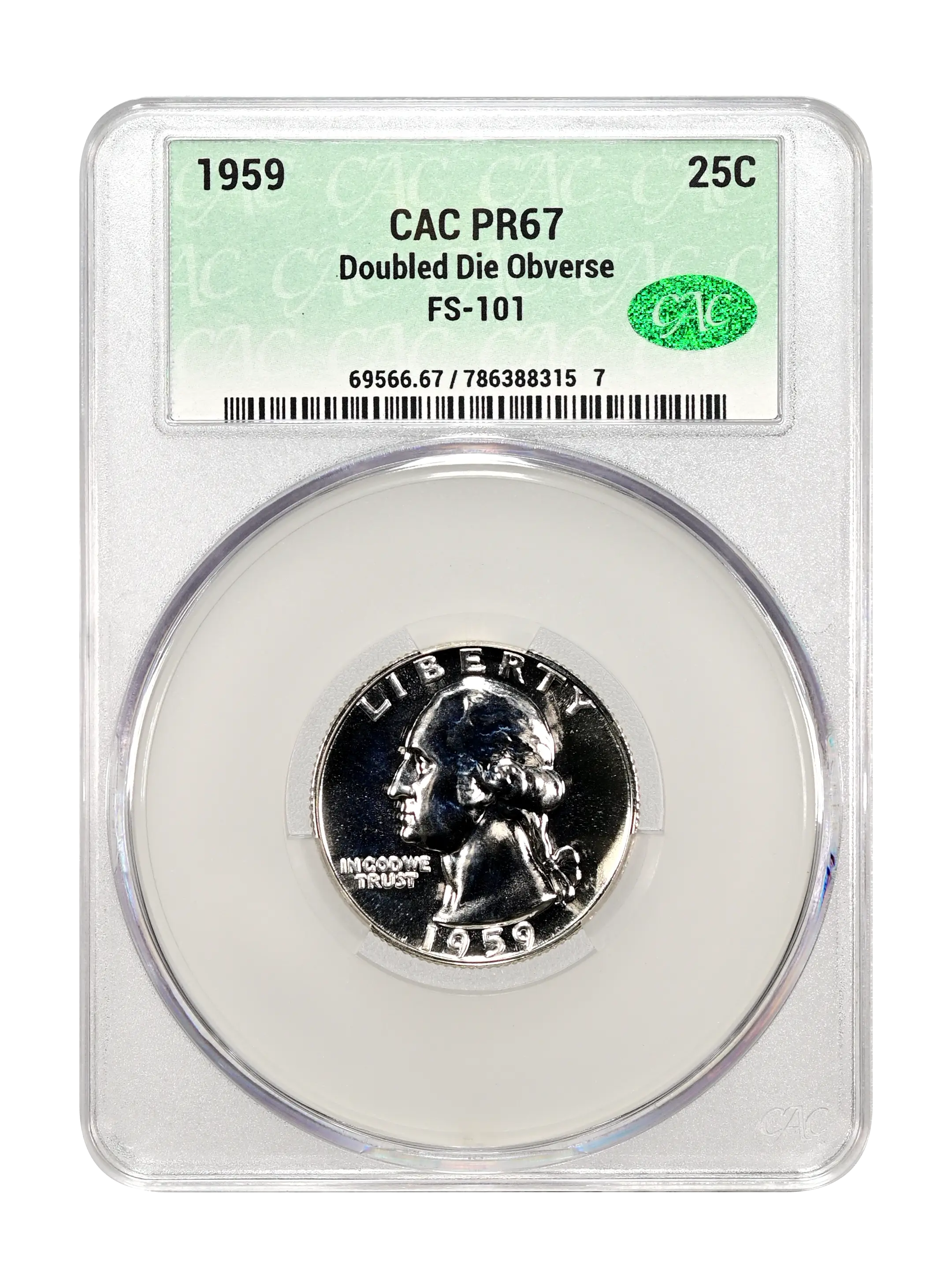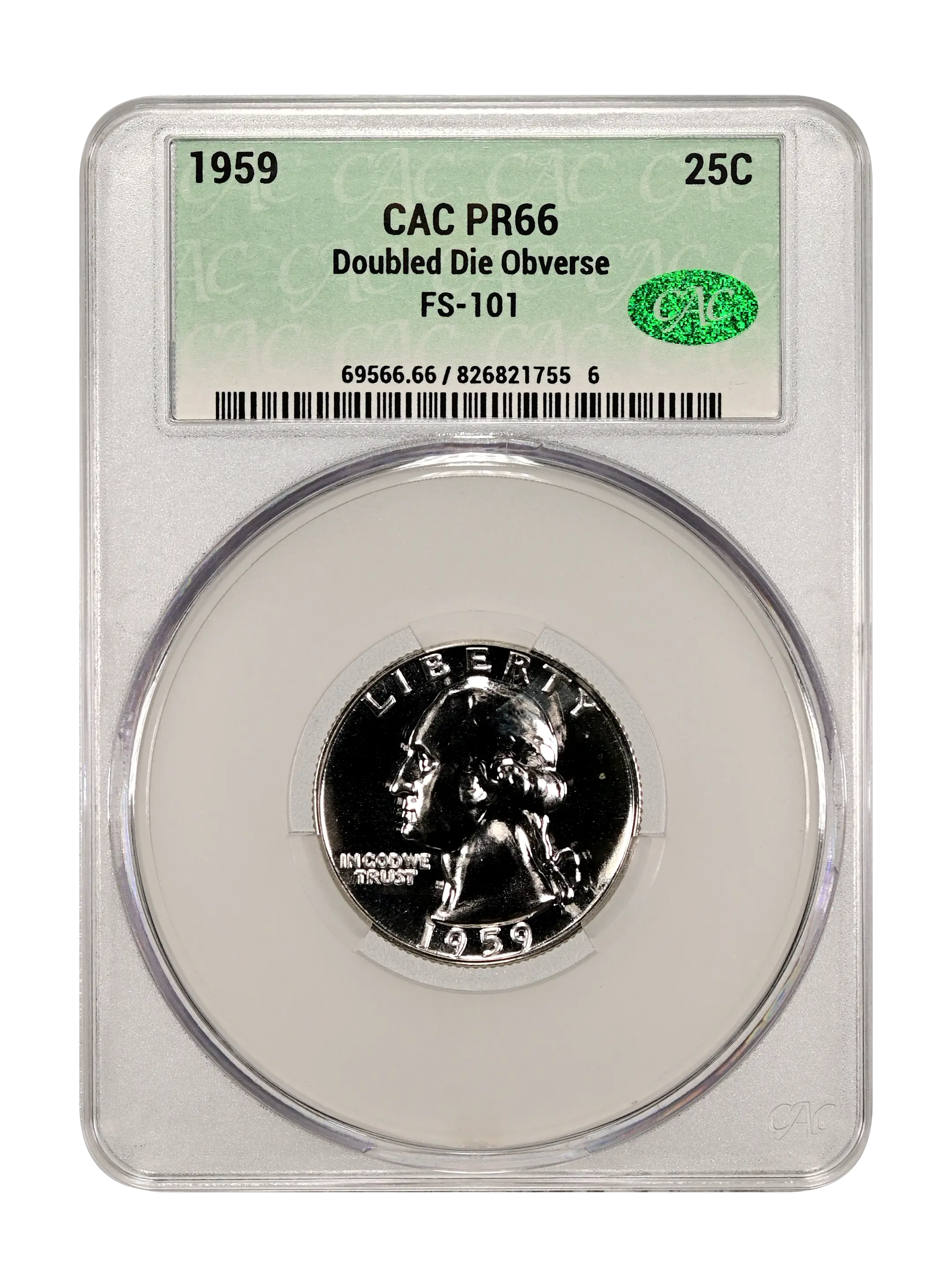 1959 Doubled Die Obverse 25c FS-101 (Proof) CAC PR66