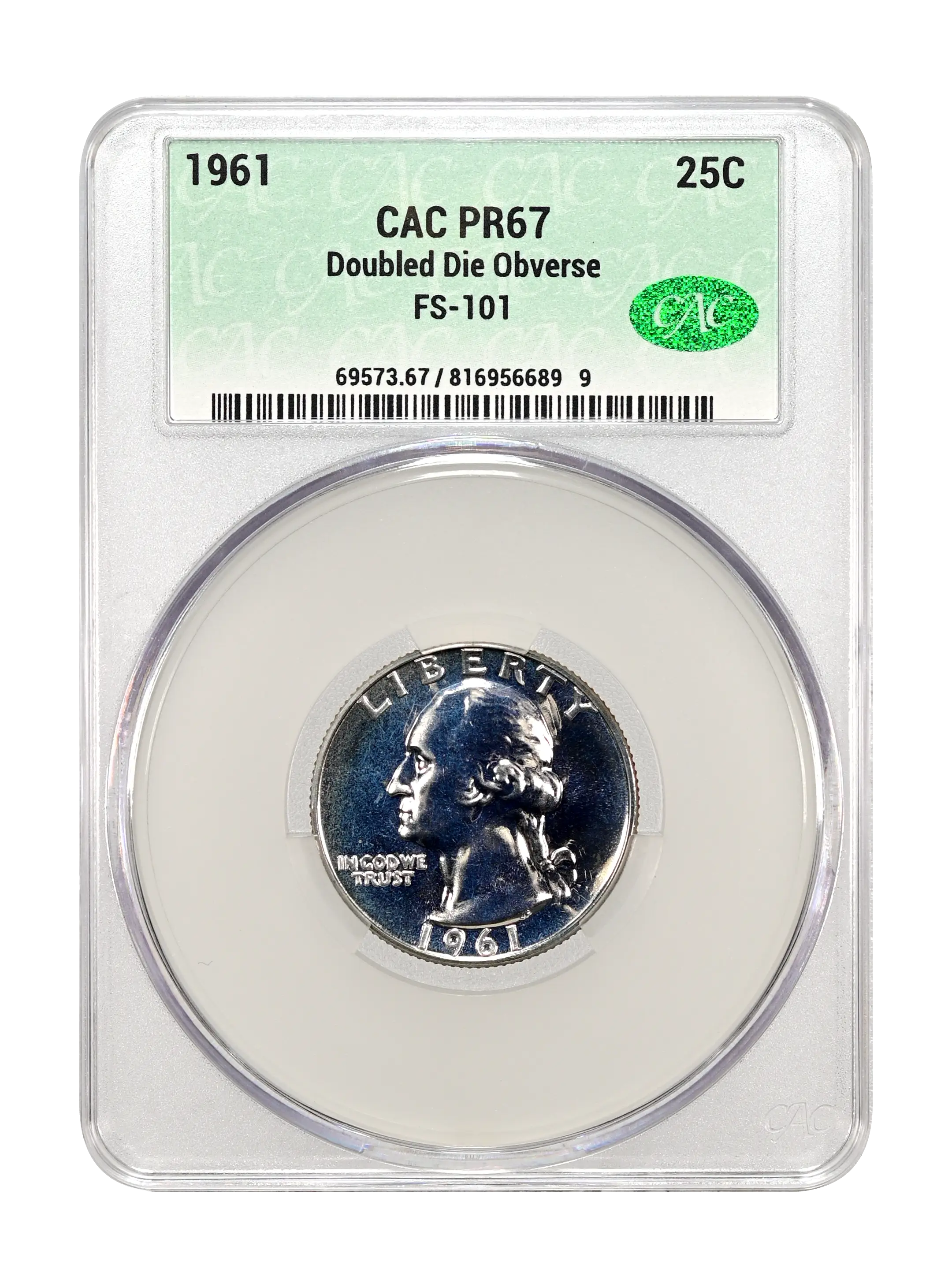 1961 Doubled Die Obverse 25c FS-101 (Proof) CAC PR67