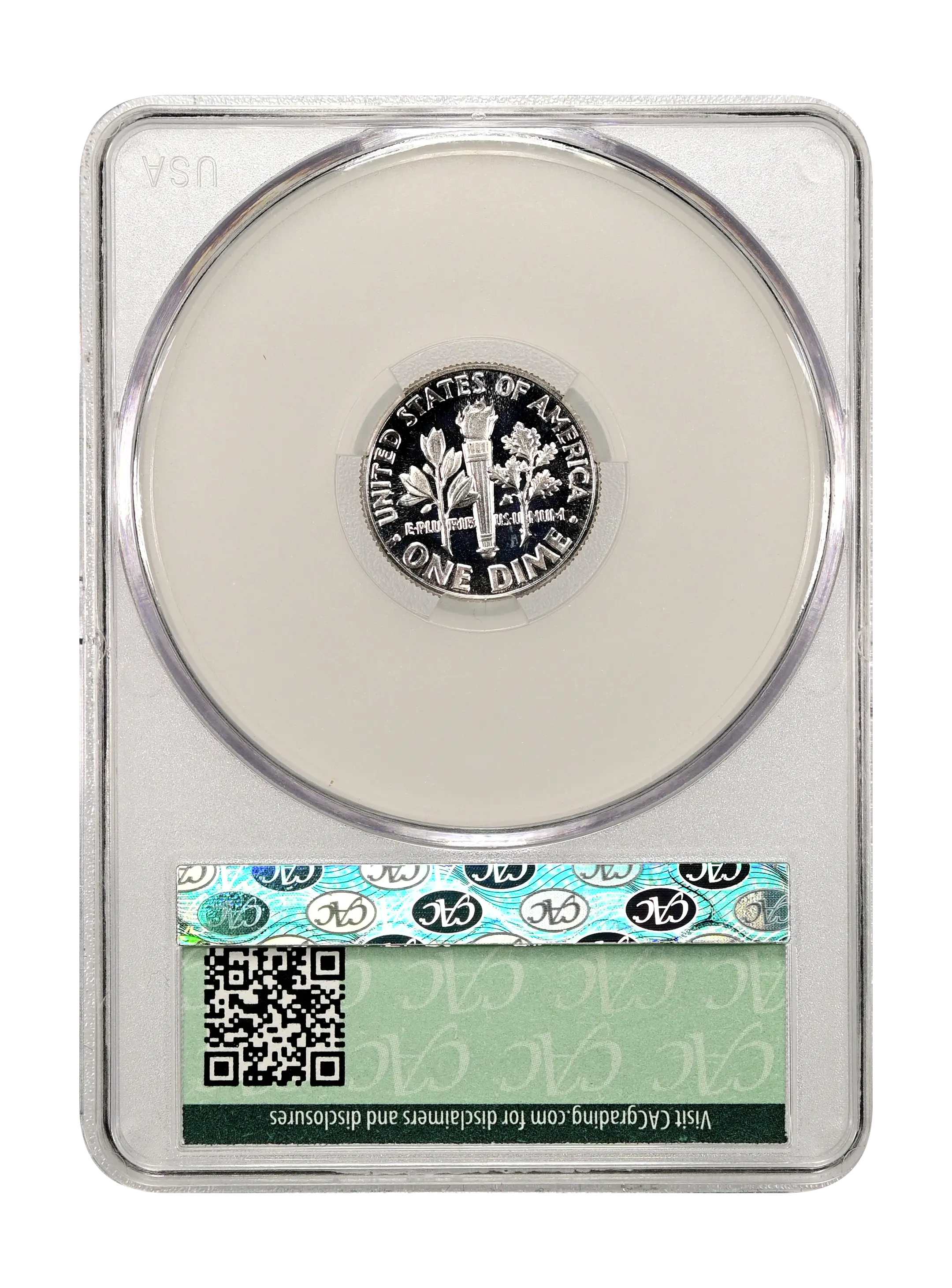 Reverse: Torch of Liberty is flanked by olive branches in the center with UNITED STATES OF AMERICA * ONE DIME around the circumference.