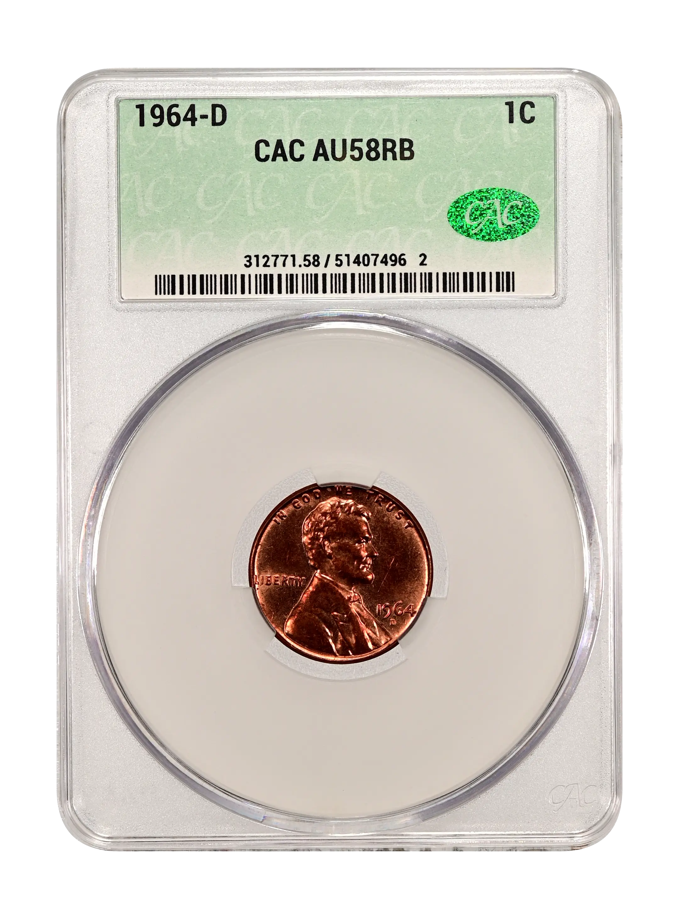 1964-D 1c RB CAC AU58RB