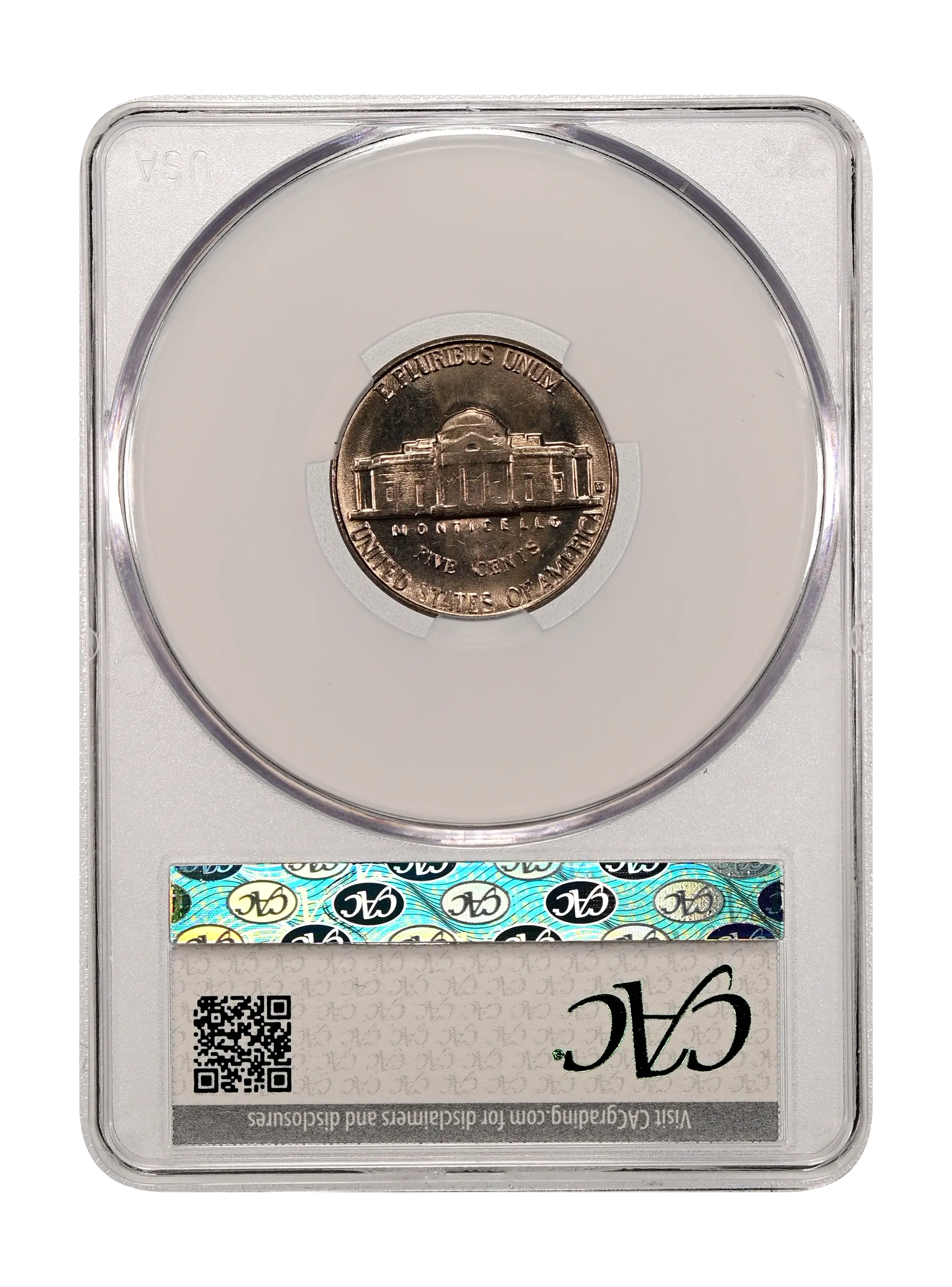 Reverse: The Jefferson home is prominently centered with the name MONTICELLO captioned below. The denomination FIVE CENTS is spelled out in half circle underneath and the words E PLURIBUS UNUM and UNITED STATES OF AMERICA appear at the top and bottom periphery. The mintmark is positioned on the right side of Monticello.