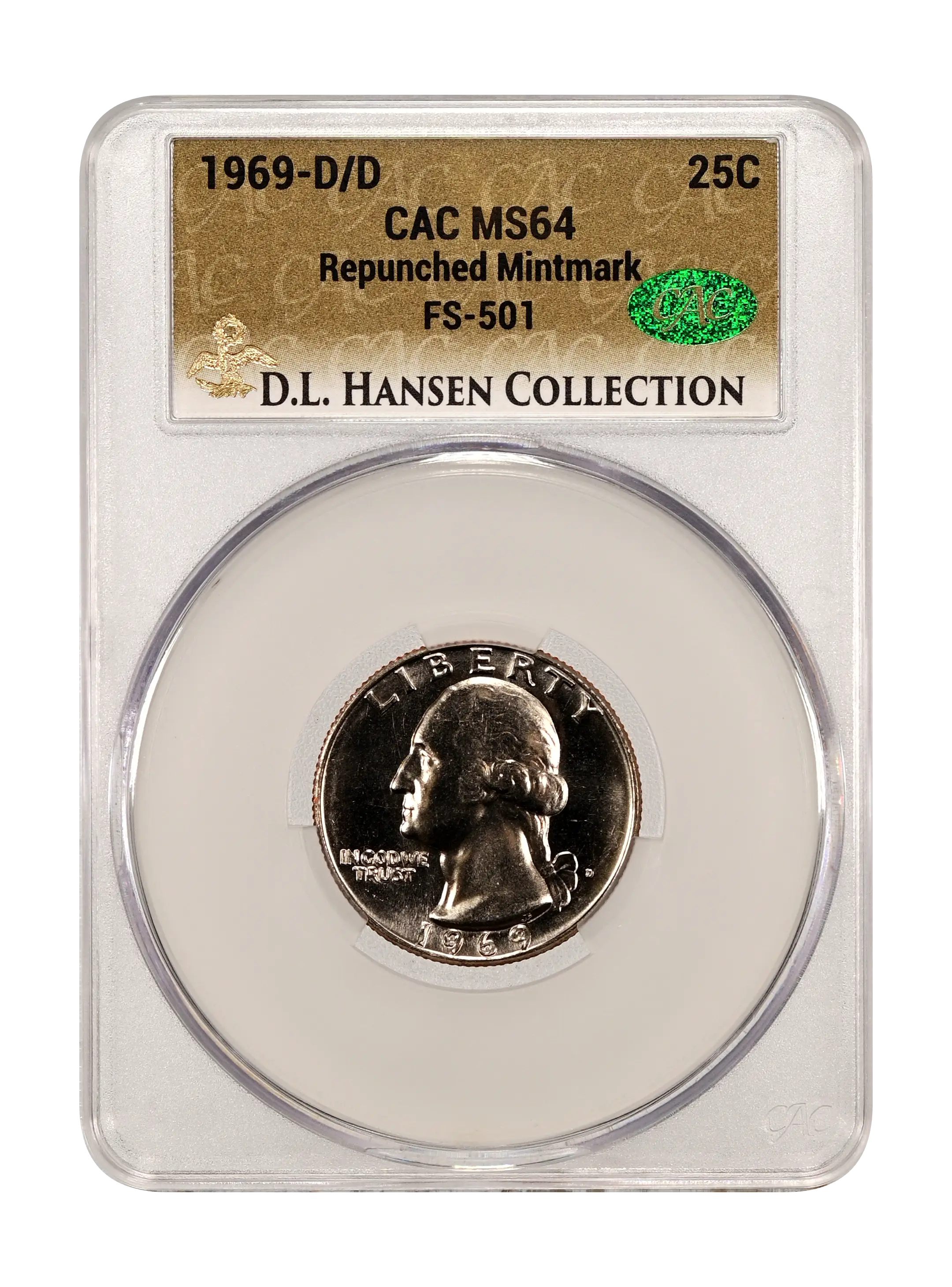 1969-D/D Repunched Mintmark 25c FS-501 CAC MS64