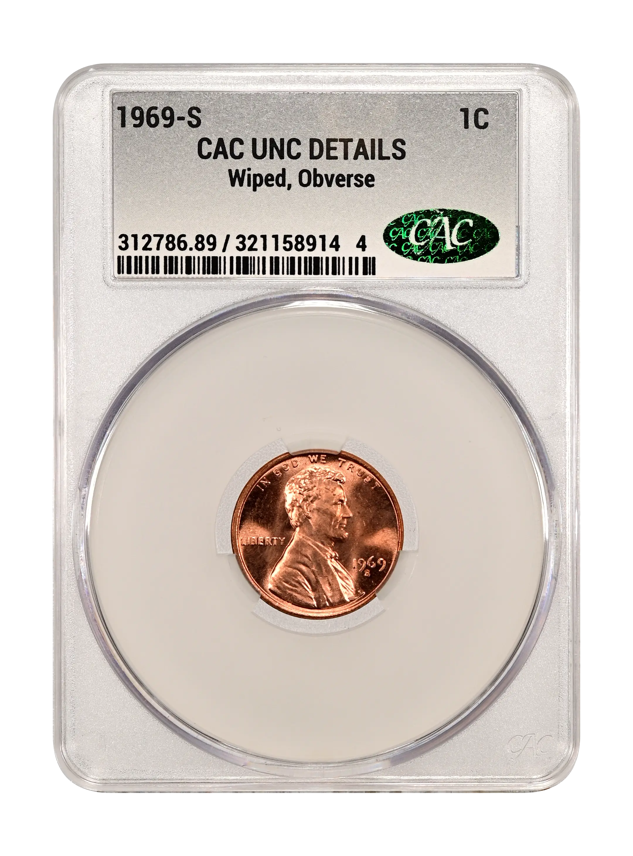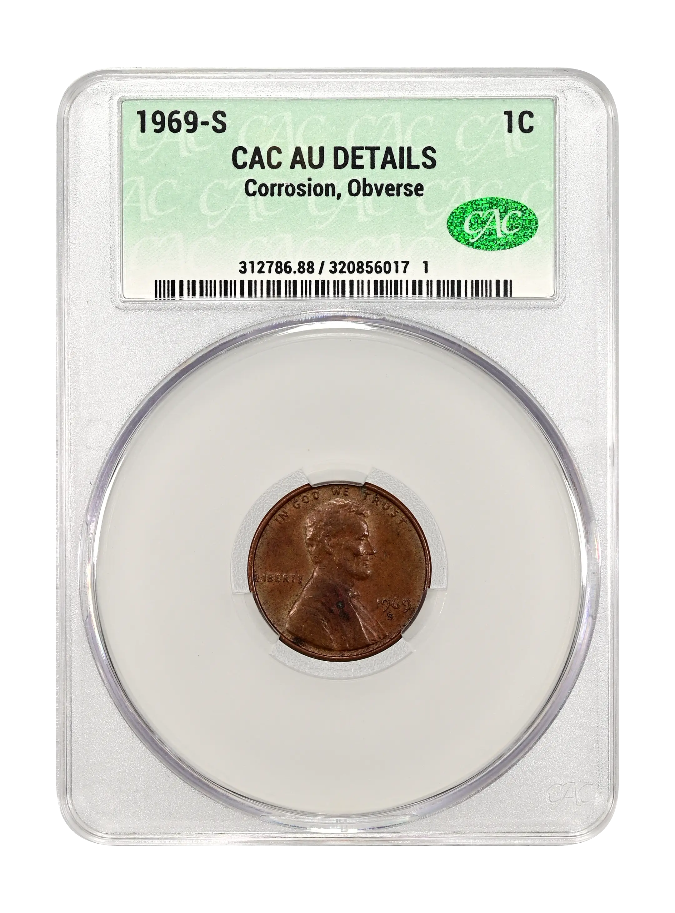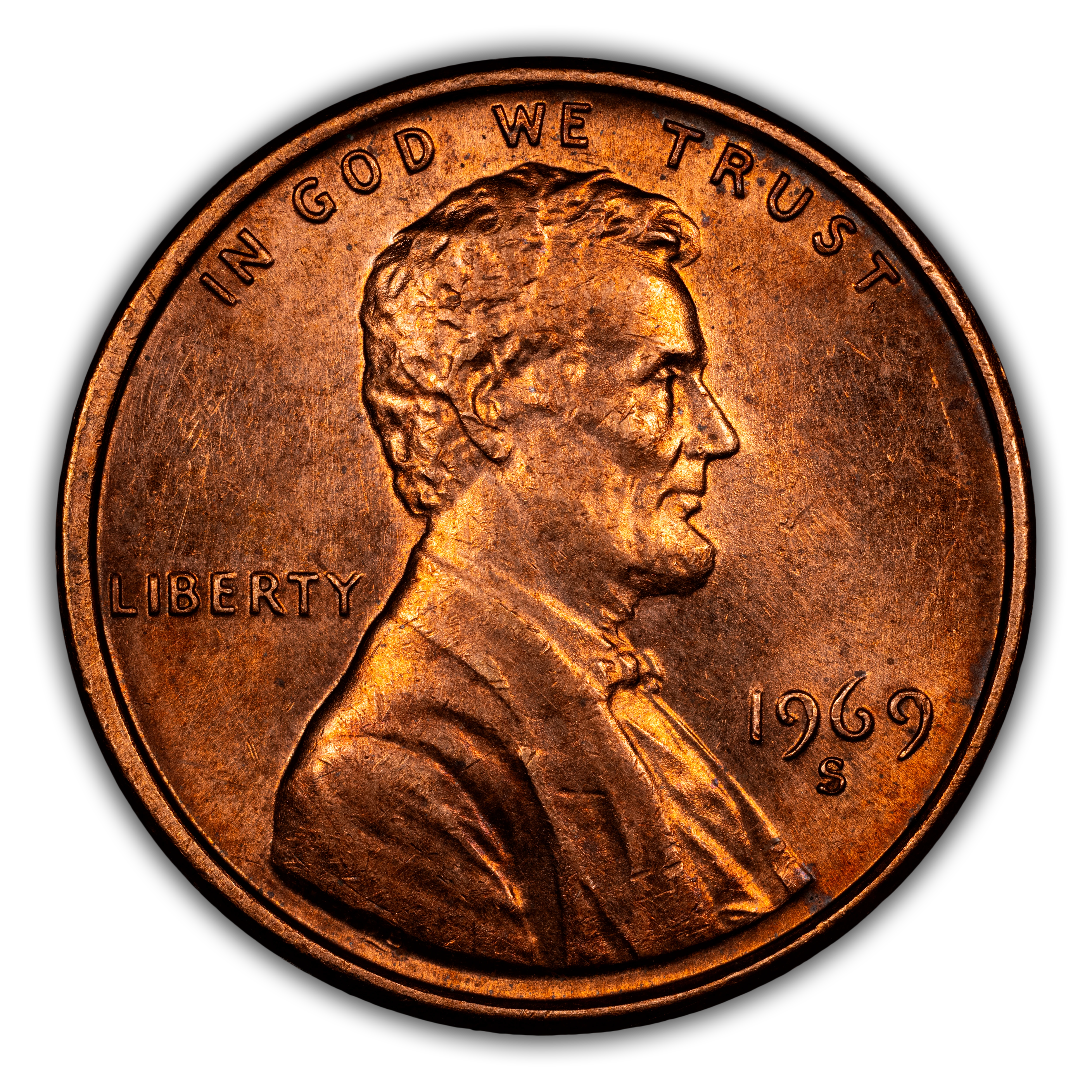 1969-S 1C Lincoln Cent -- Struck 8% Off-Center -- MS62 Brown PCGS. PCGS Population: (59/52 and 0/0+). Mintage 547,309,631....