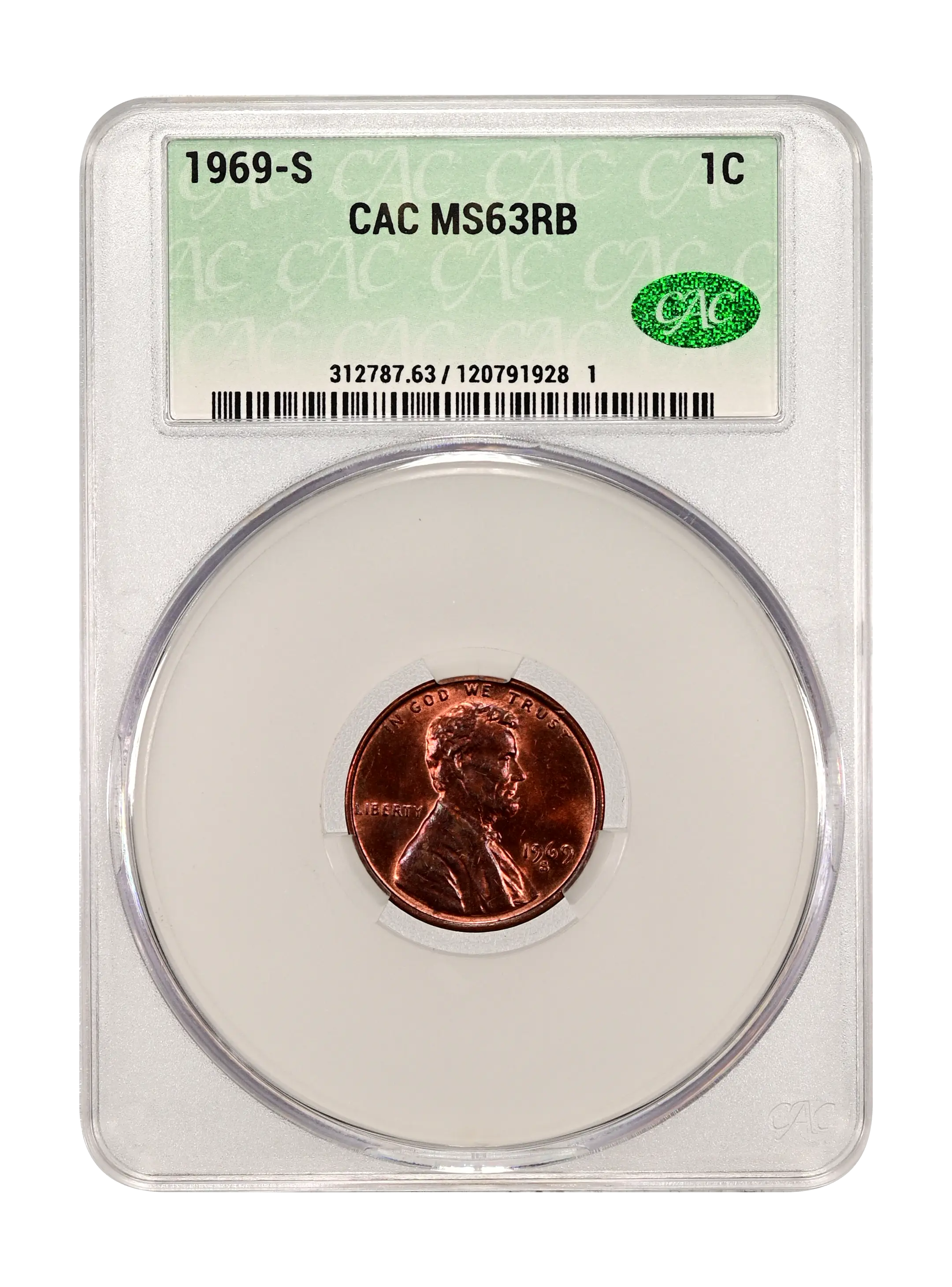 1969-S 1c RB CAC MS63RB
