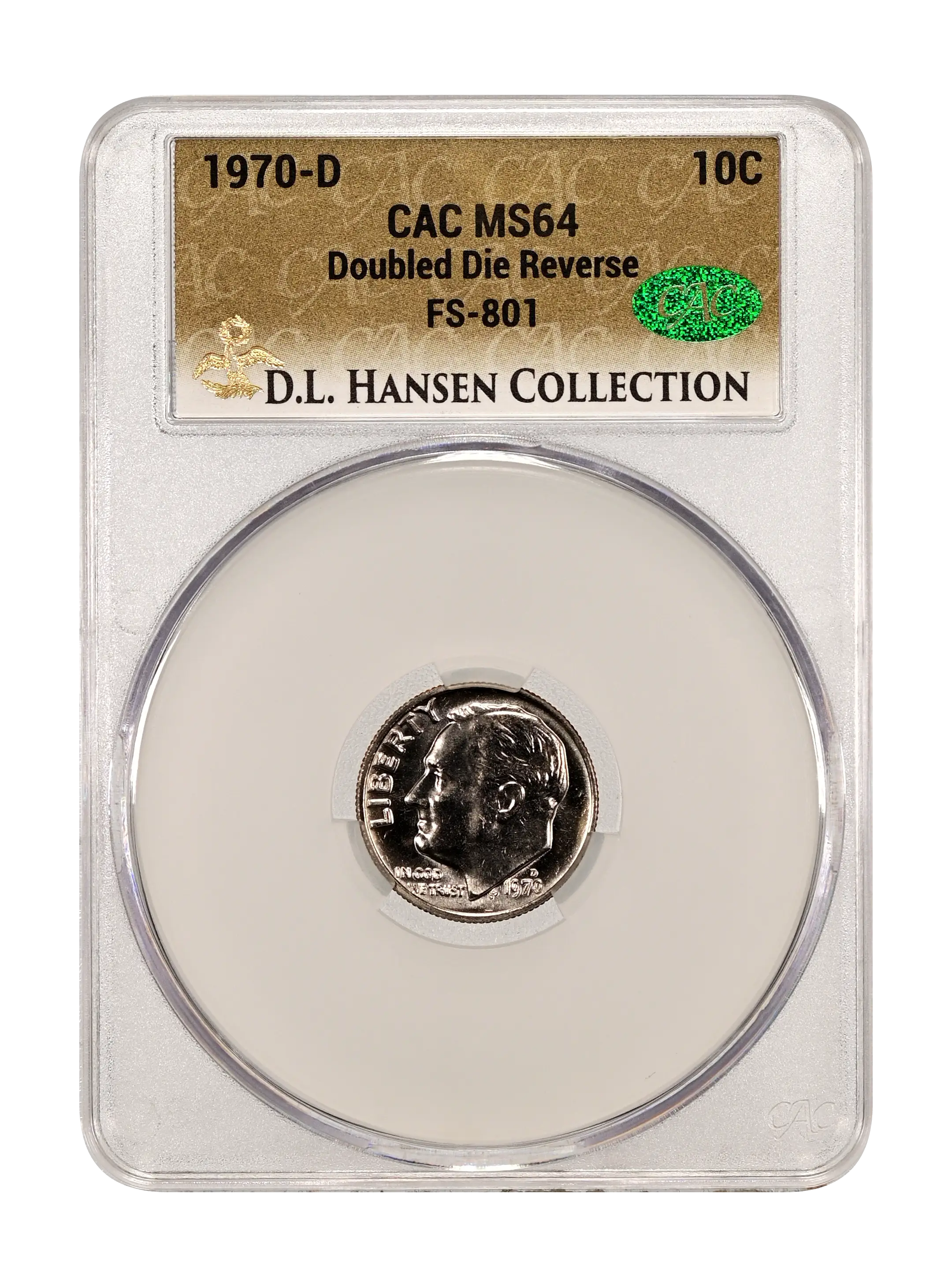 1970-D Doubled Die Reverse 10c FS-801 CAC MS64