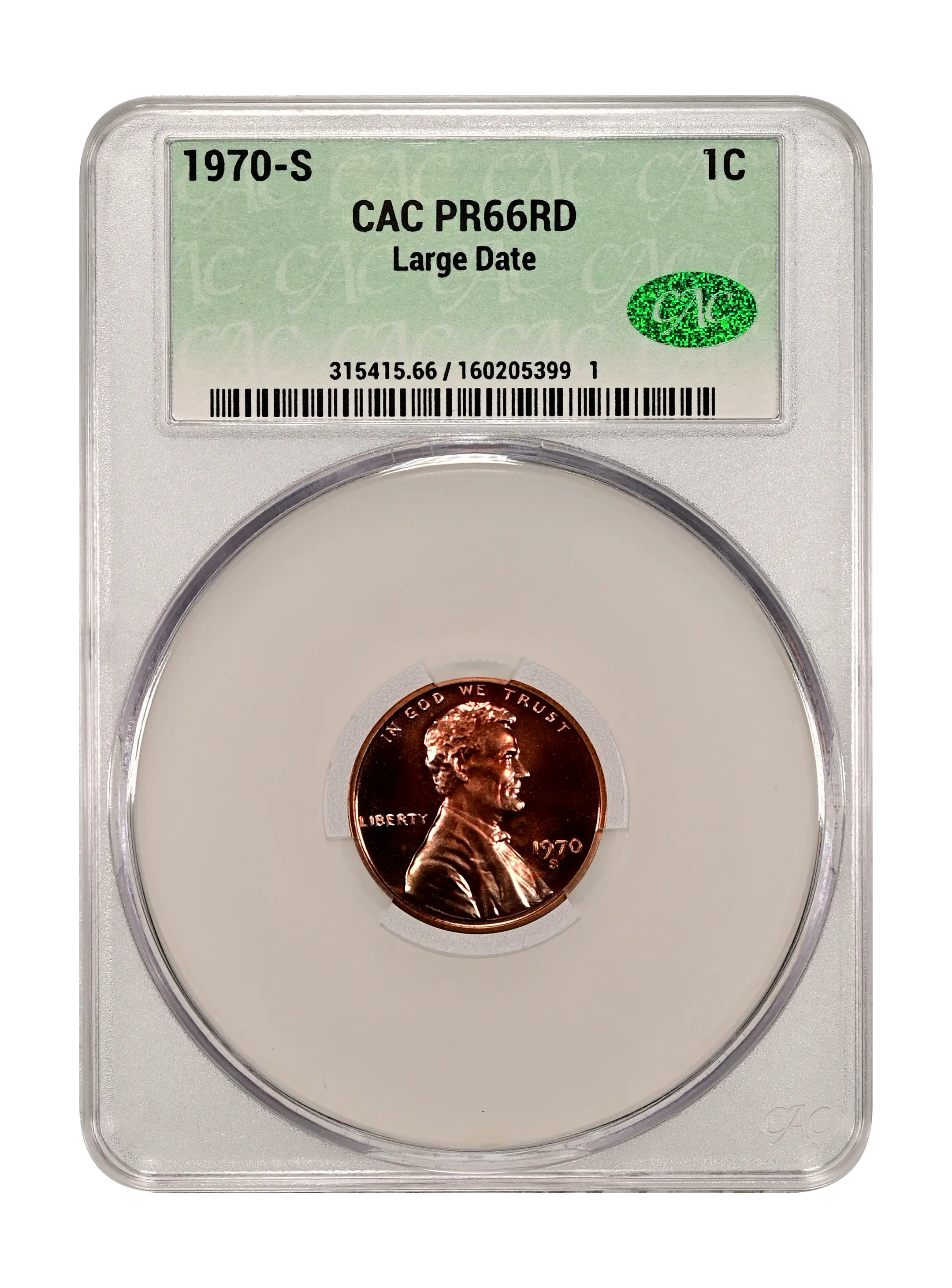 1970-S Large Date 1c RD (Proof) CAC PR66RD