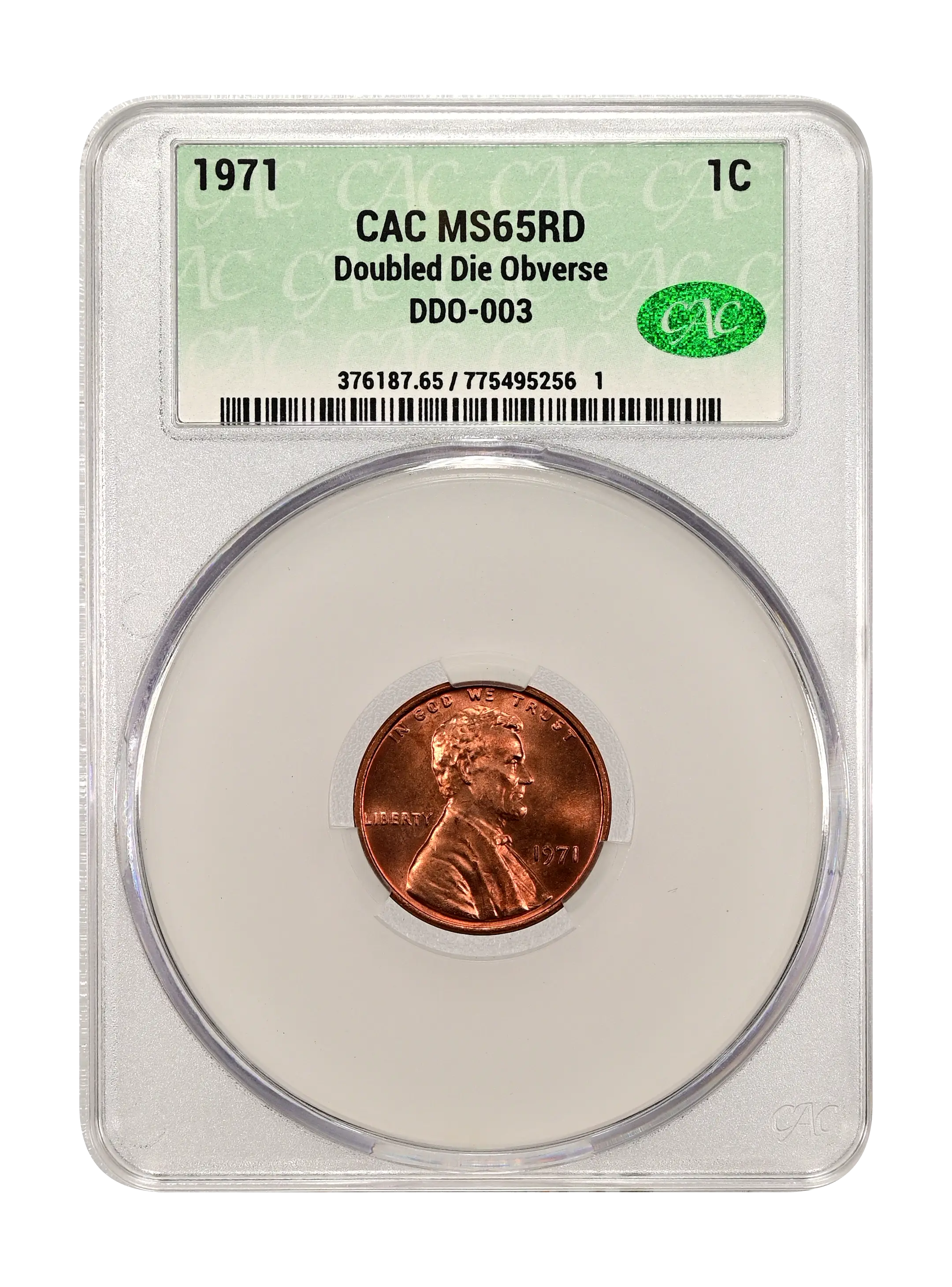 1971 Doubled Die Obverse 1c DDO-003 RD CAC MS65RD