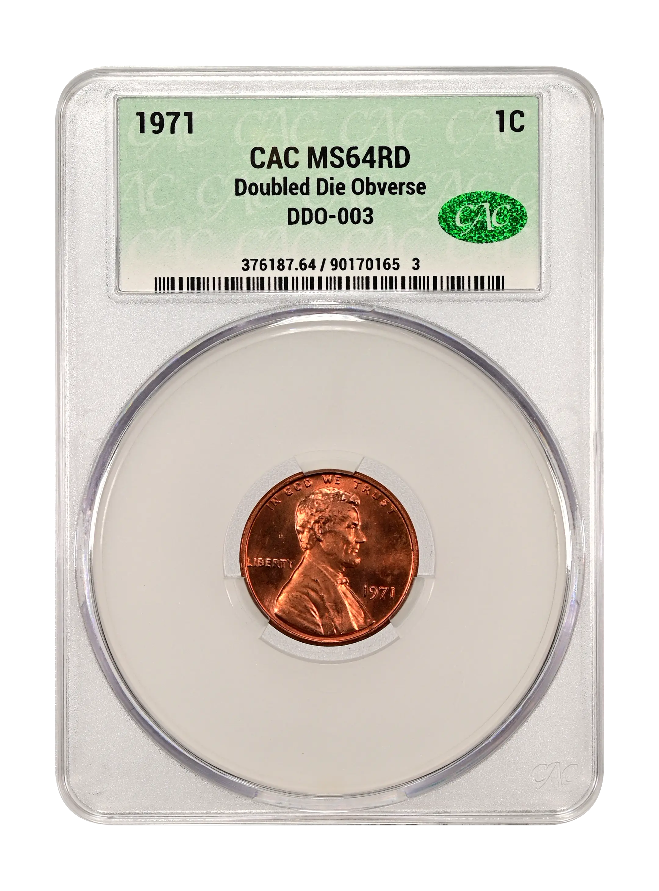 1971 Doubled Die Obverse 1c DDO-003 RD CAC MS64RD