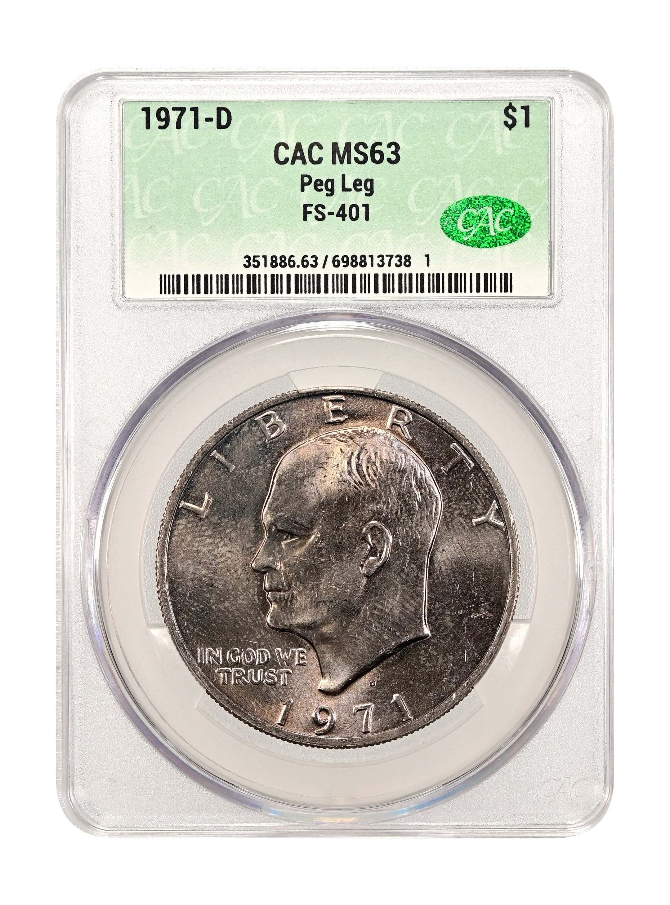1971-D Peg Leg $1 FS-401 CAC MS63