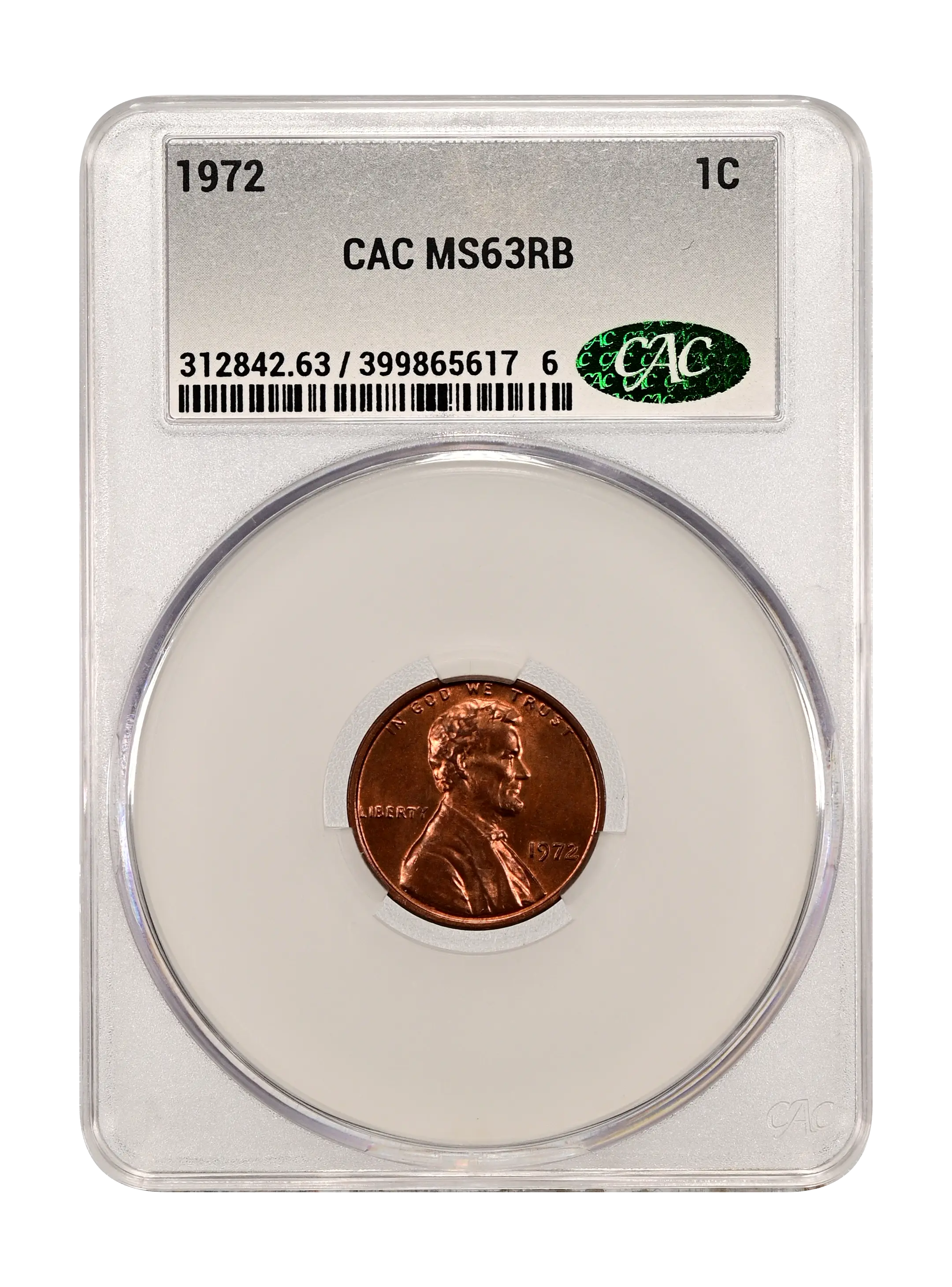 1972 1C Lincoln Cent -- Struck 10% Off Center -- MS64 Red and Brown NGC. NGC Census: (45/38). Mintage 2,933,225,000....