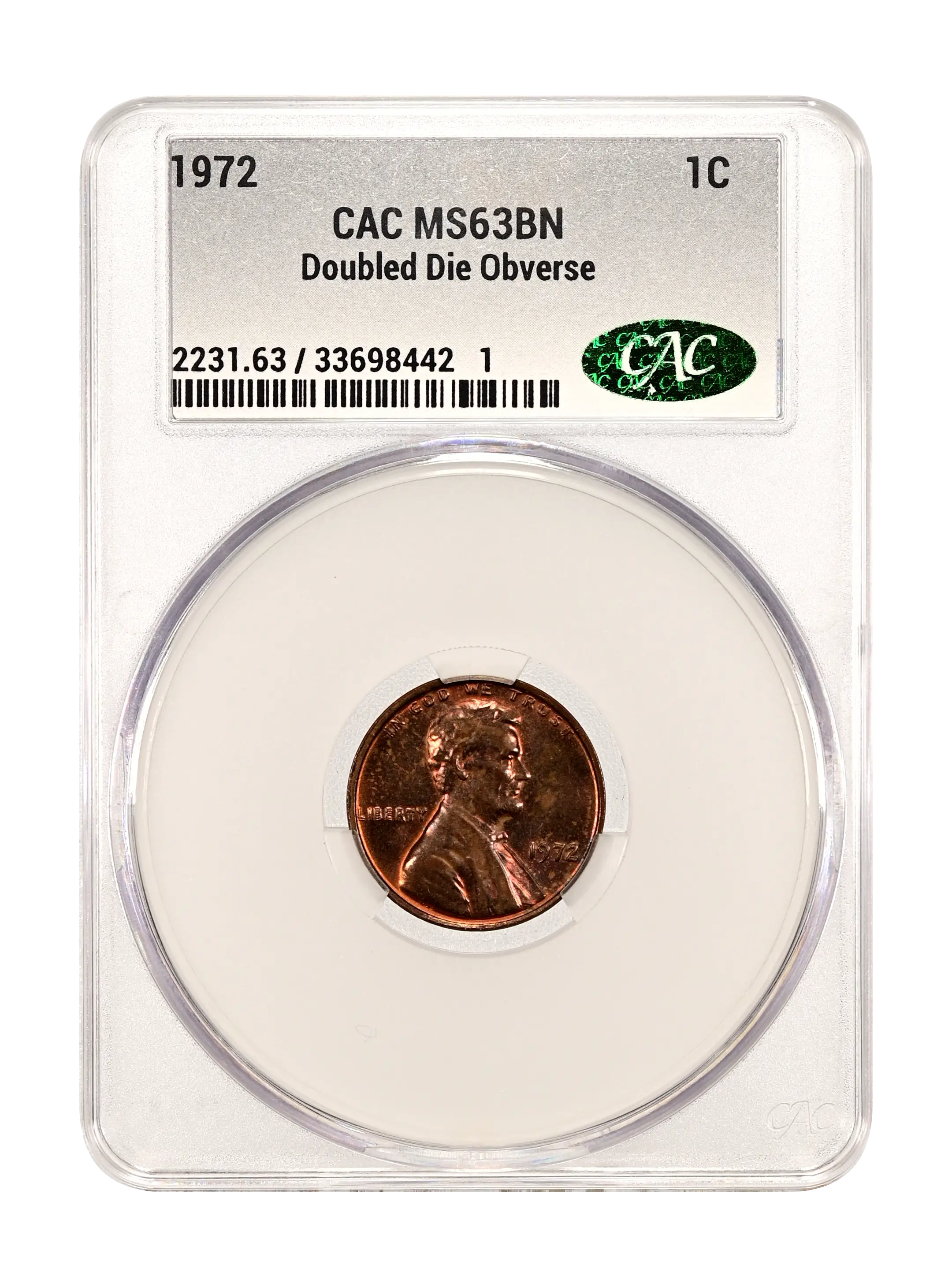 1972 Doubled Die Obverse 1c BN CAC MS63BN
