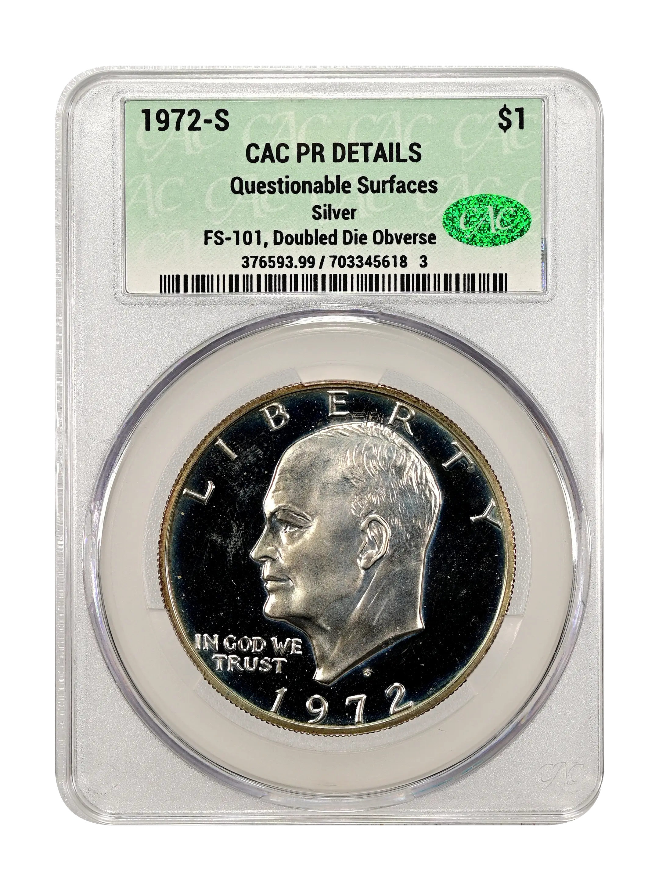 1972-S Silver $1 DDO, FS-101 (Proof) CAC PR DETAILS
