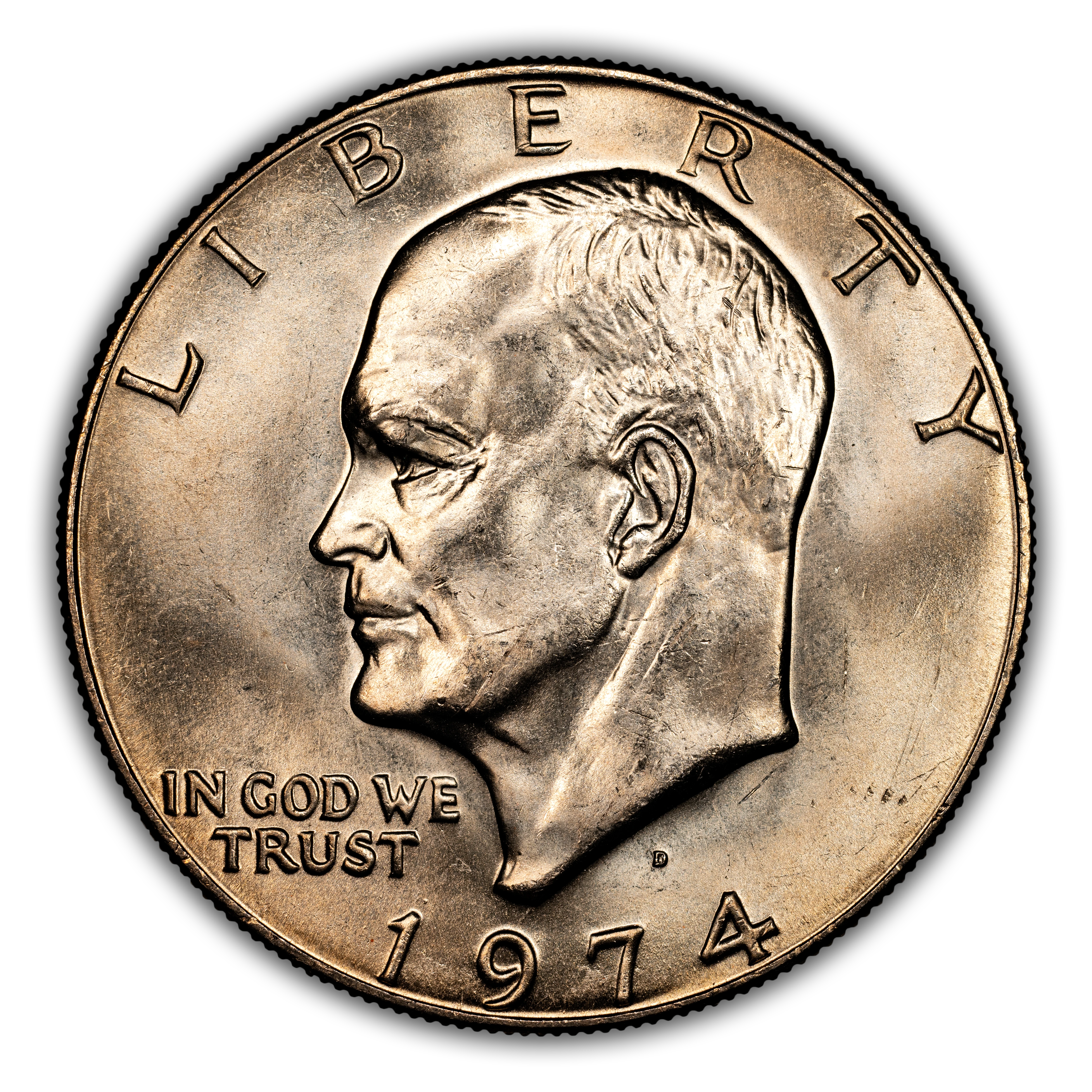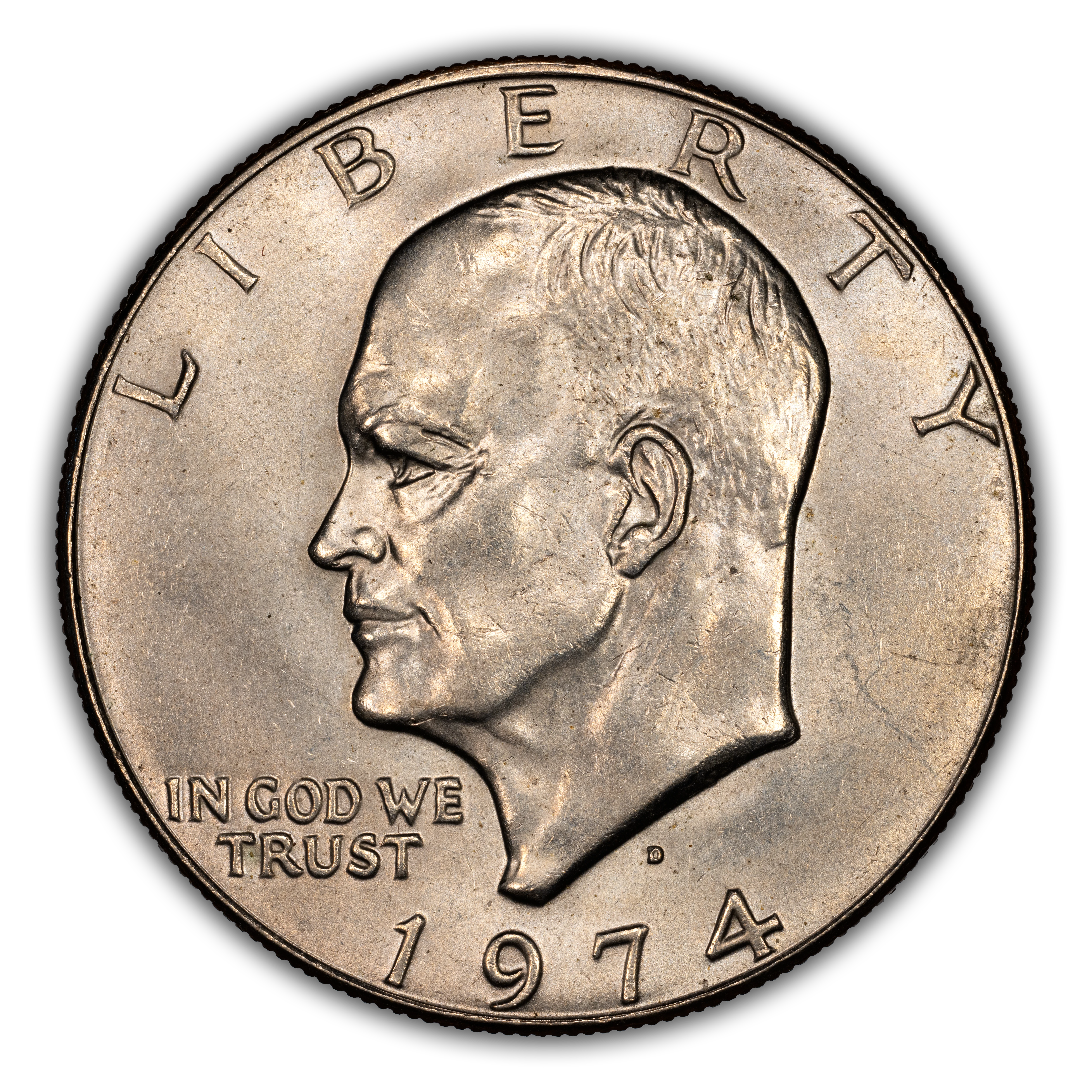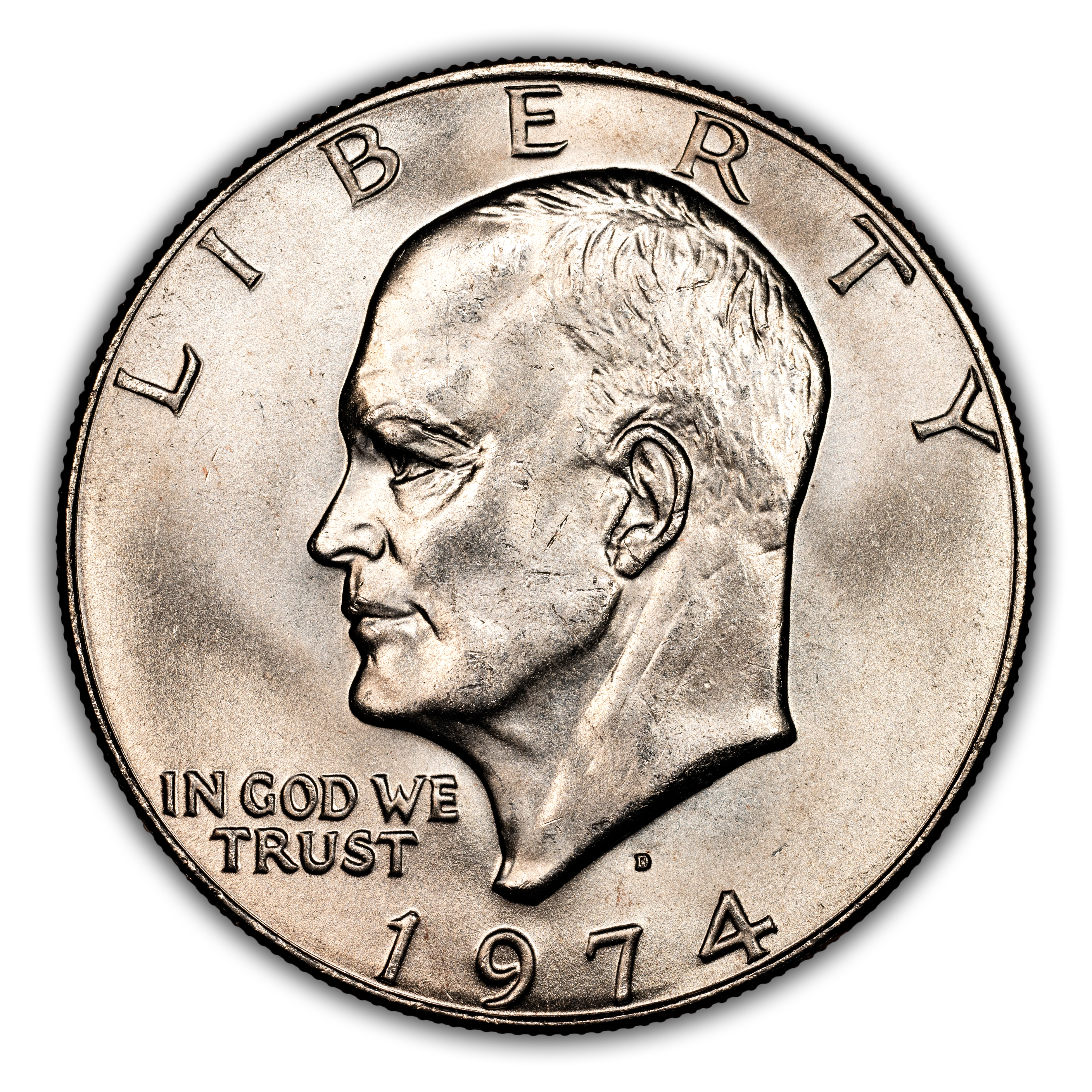 Obverse: Bold portrait of Dwight D. Eisenhower, facing left, with the motto IN GOD WE TRUST in front of the President's neck. The word LIBERTY is centered on the top periphery and the date at the bottom. Mint mark, if any, is positioned just below the bust.