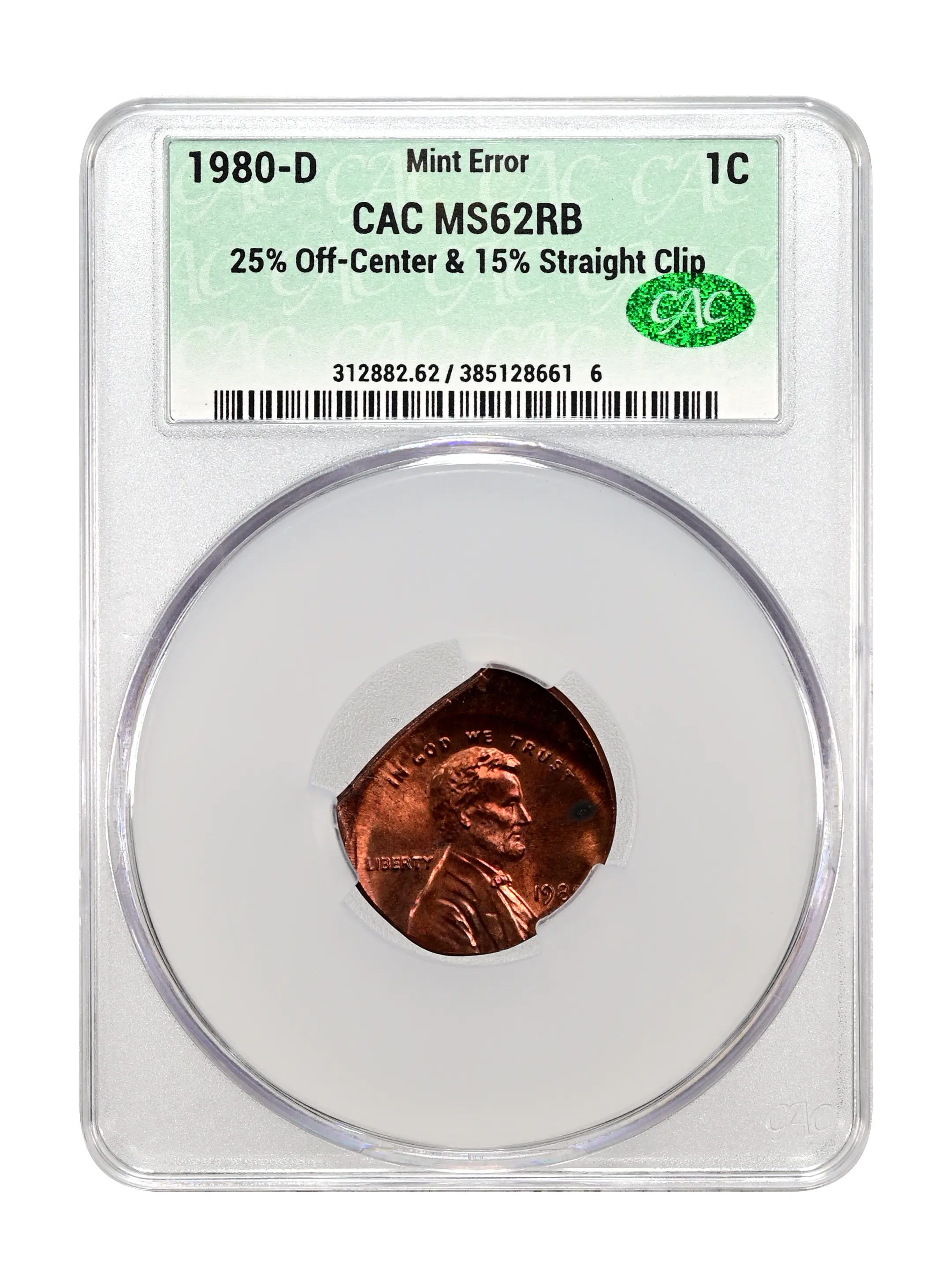 1980-D 1C Lincoln Cent -- Struck on a Silver Planchet -- MS62 NGC....