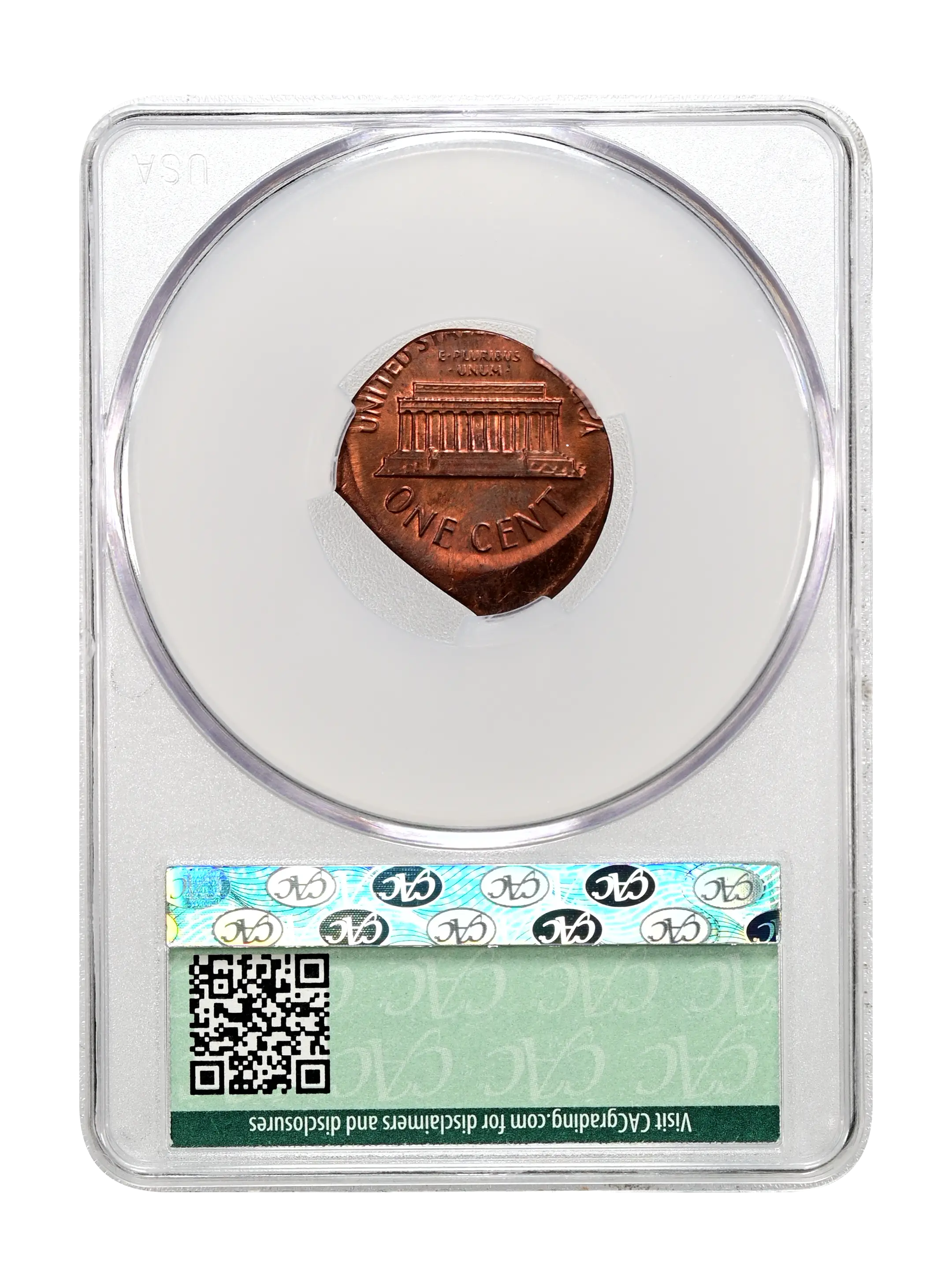 Reverse: Lincoln memorial building centered with words ONE CENT, UNITED STATES OF AMERICA on top and bottom periphery. E PLURIBUS UNUM centered above the top of the memorial.