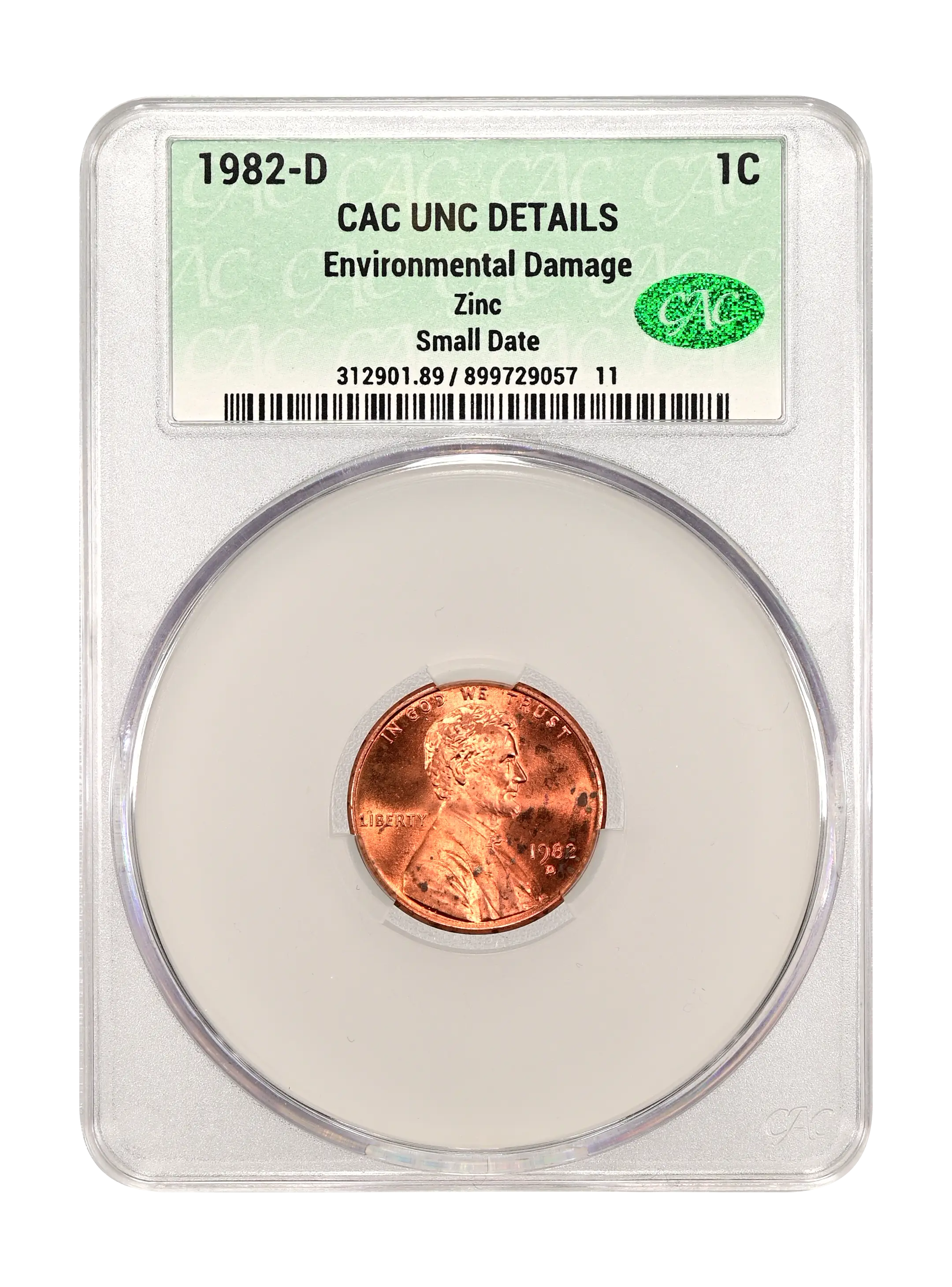 1982-D Zinc 1c Small Date BN CAC UNC DETAILS