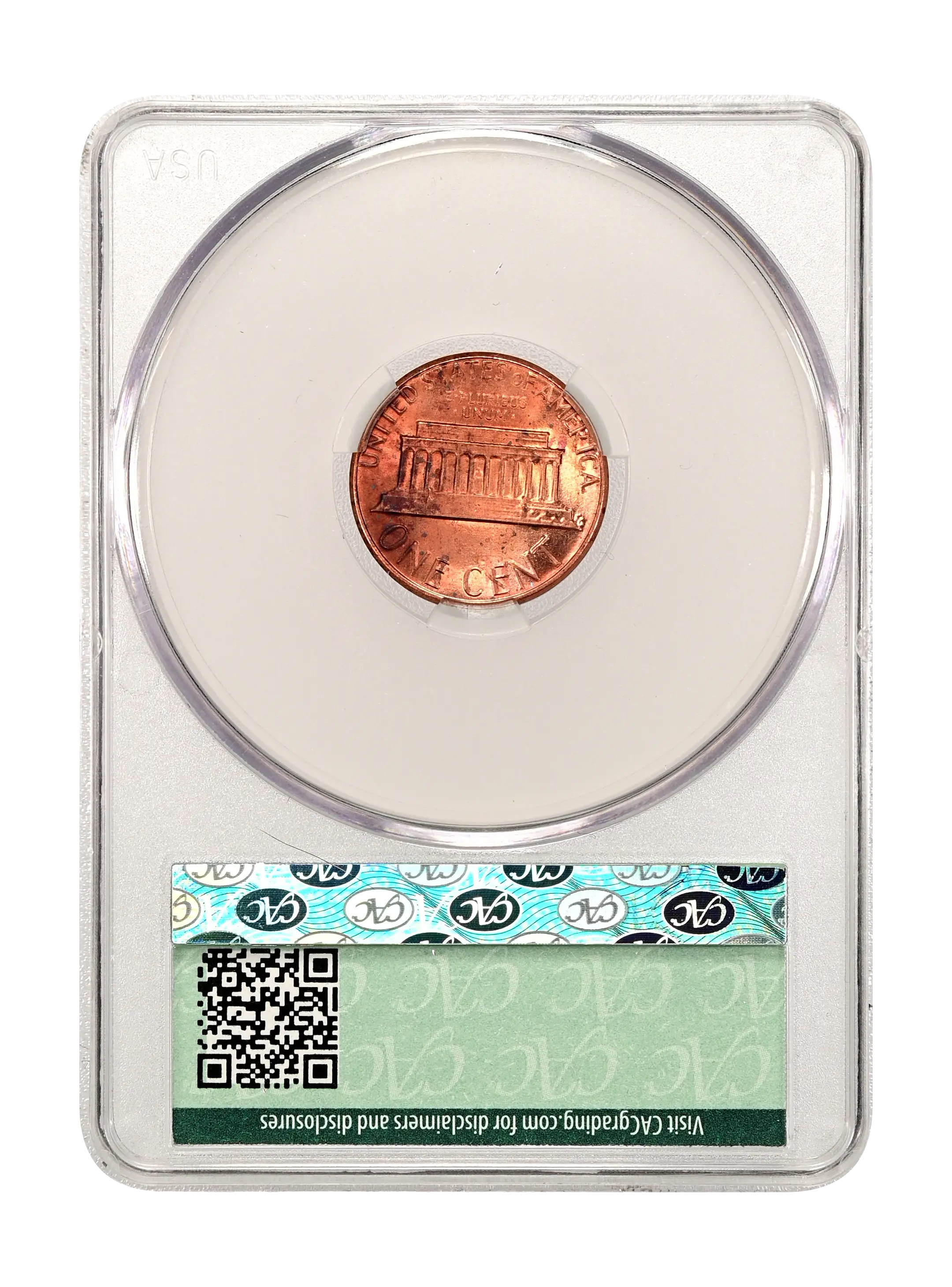 Reverse: Lincoln memorial building centered with words ONE CENT, UNITED STATES OF AMERICA on top and bottom periphery. E PLURIBUS UNUM centered above the top of the memorial.