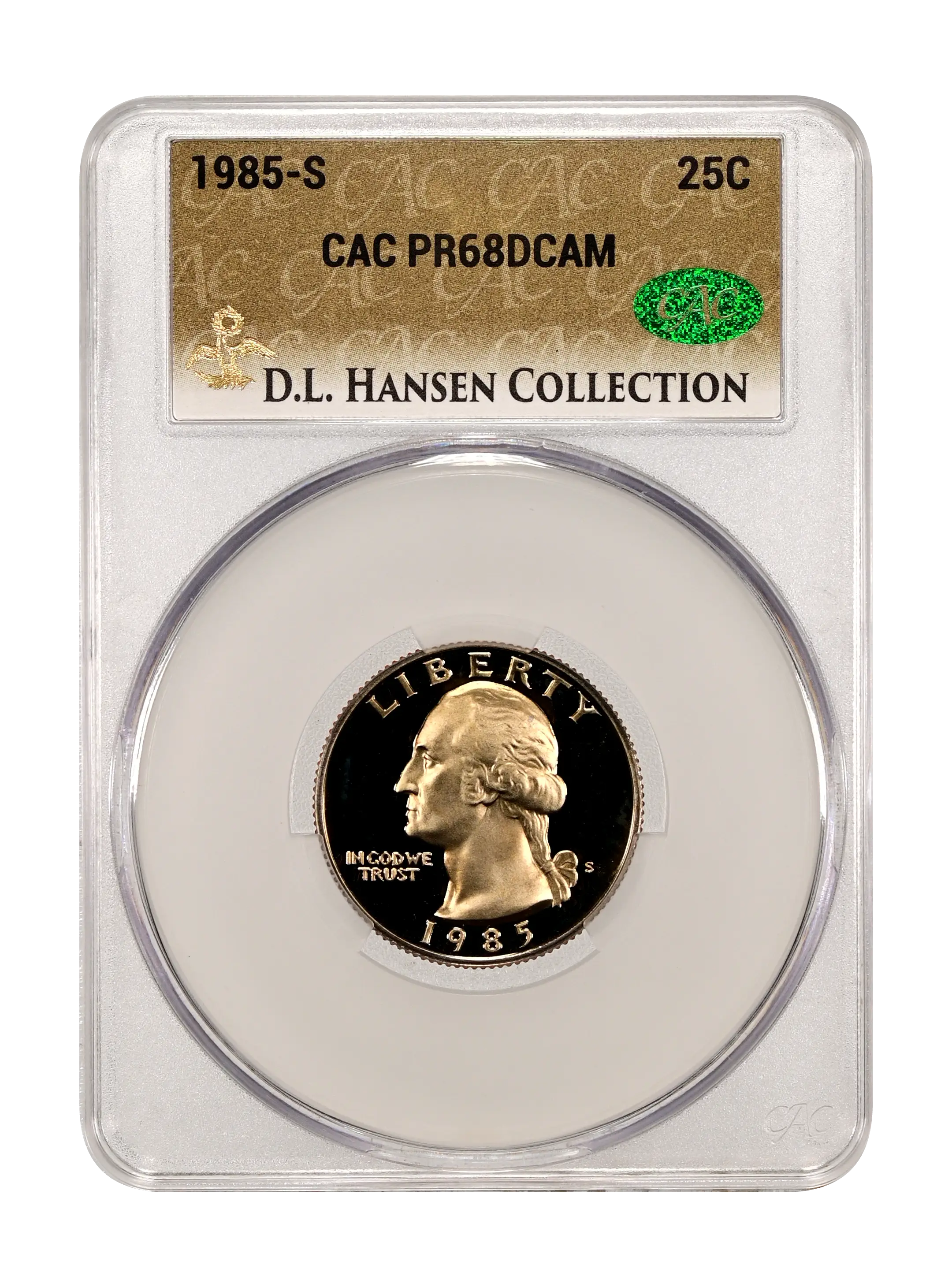 1985-S 25c DCAM (Proof) CAC PR68DCAM