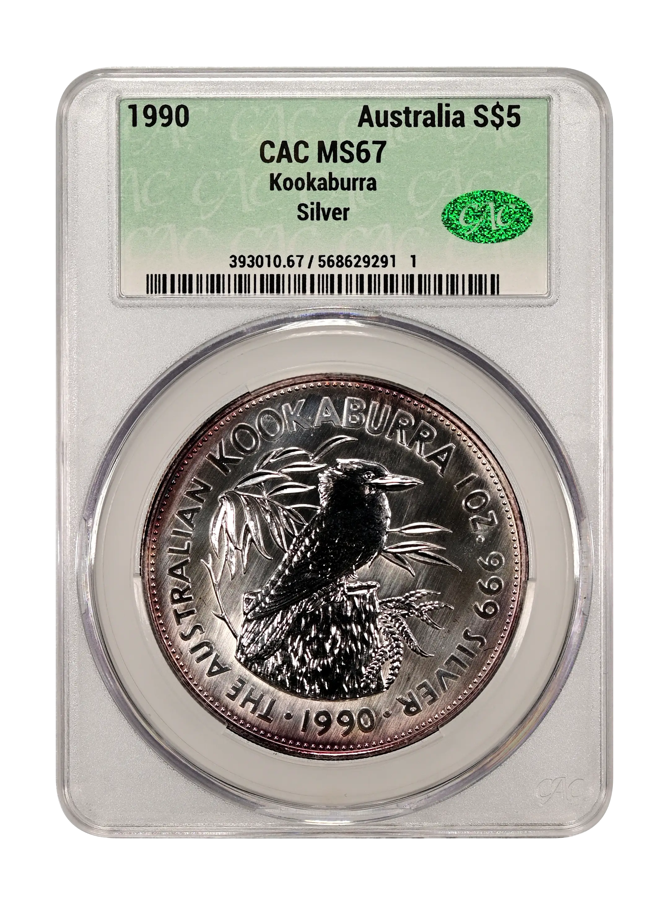 1990 Kookaburra Australia S$5 Silver CAC MS67