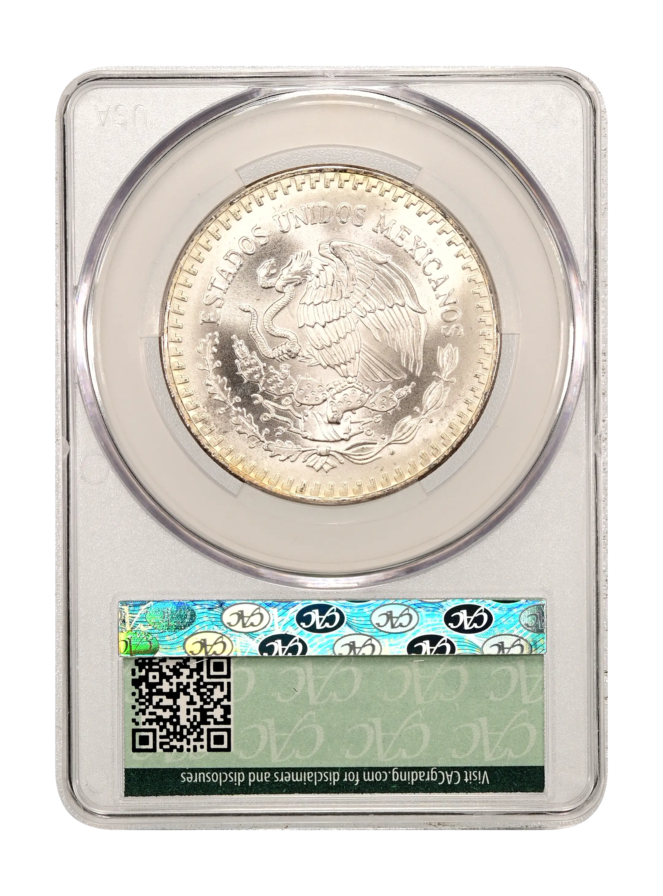 1991-Mo Libertad Mexico 1 Onza Silver, Type 2 CAC MS66