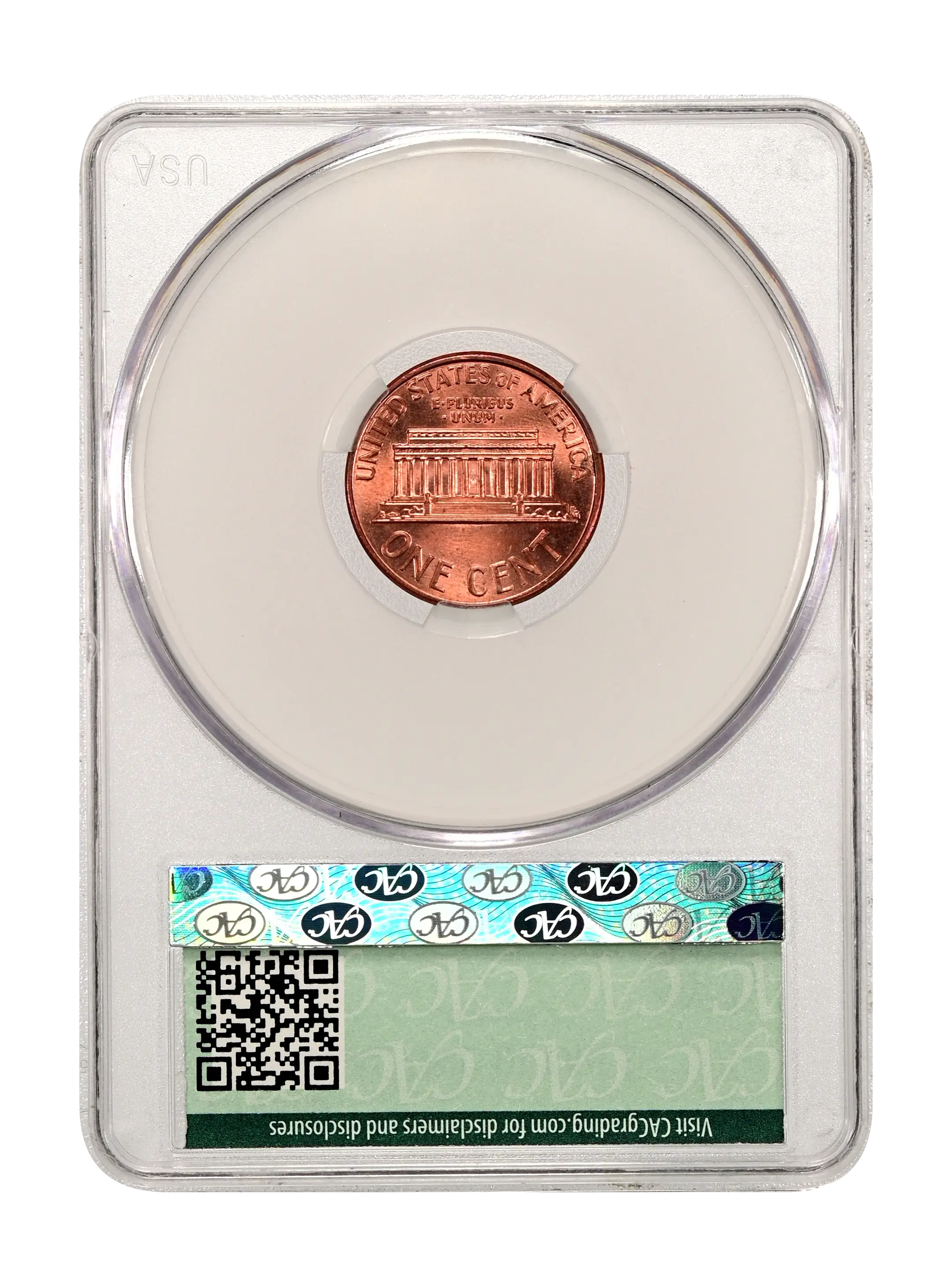 Reverse: Lincoln memorial building centered with words ONE CENT, UNITED STATES OF AMERICA on top and bottom periphery. E PLURIBUS UNUM centered above the top of the memorial.