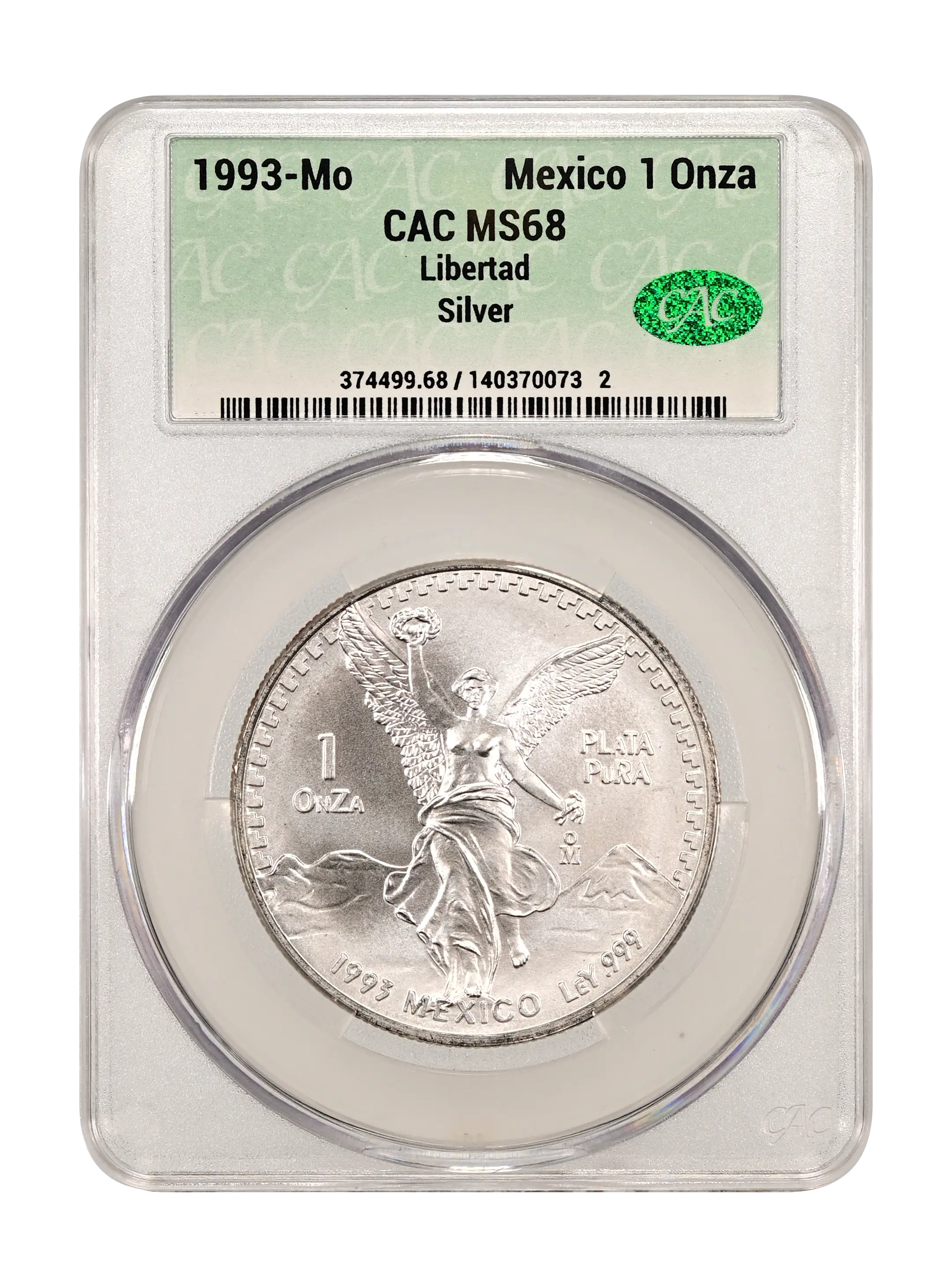 1993-Mo Libertad Mexico 1 Onza Silver CAC UNC DETAILS