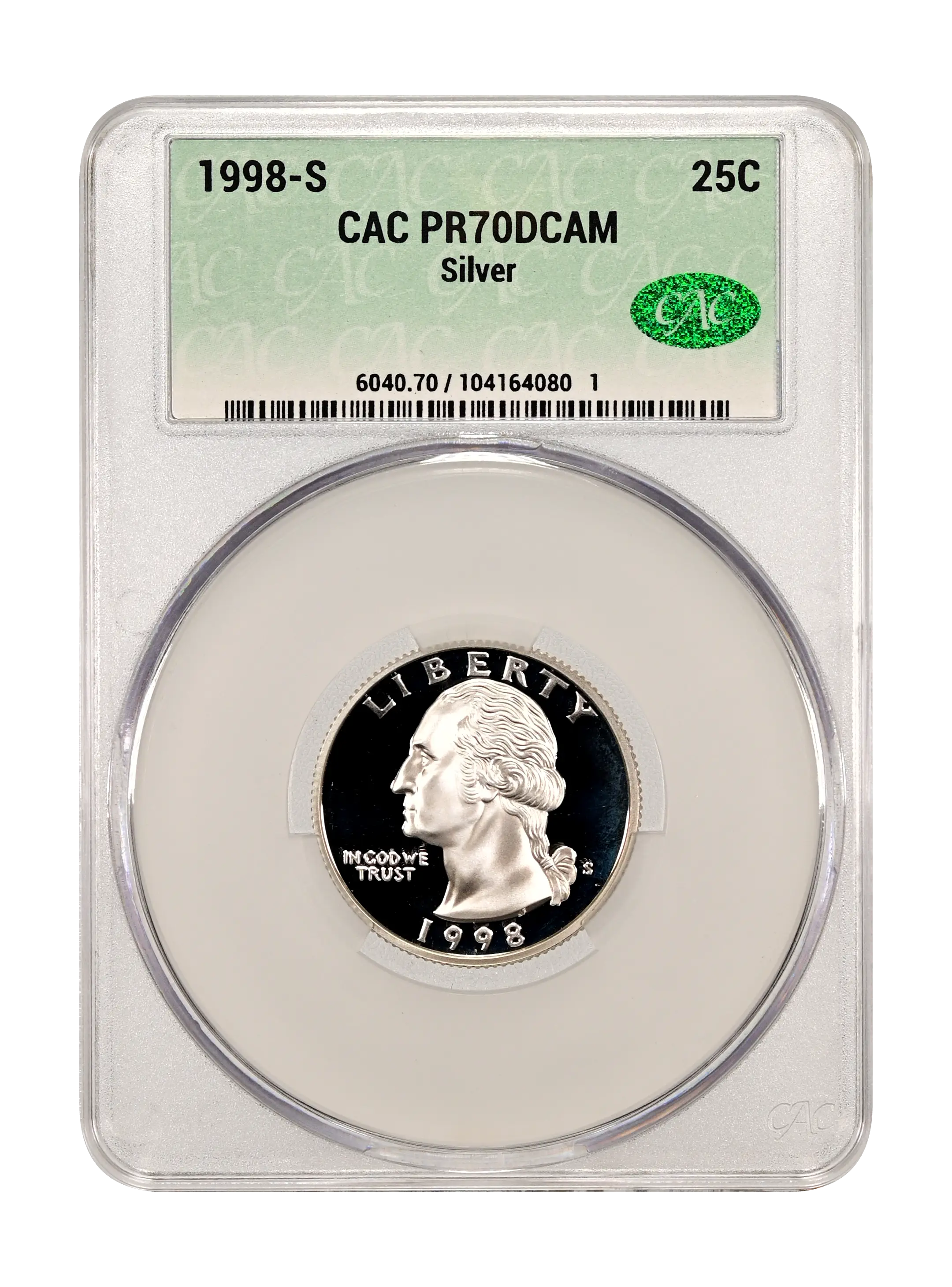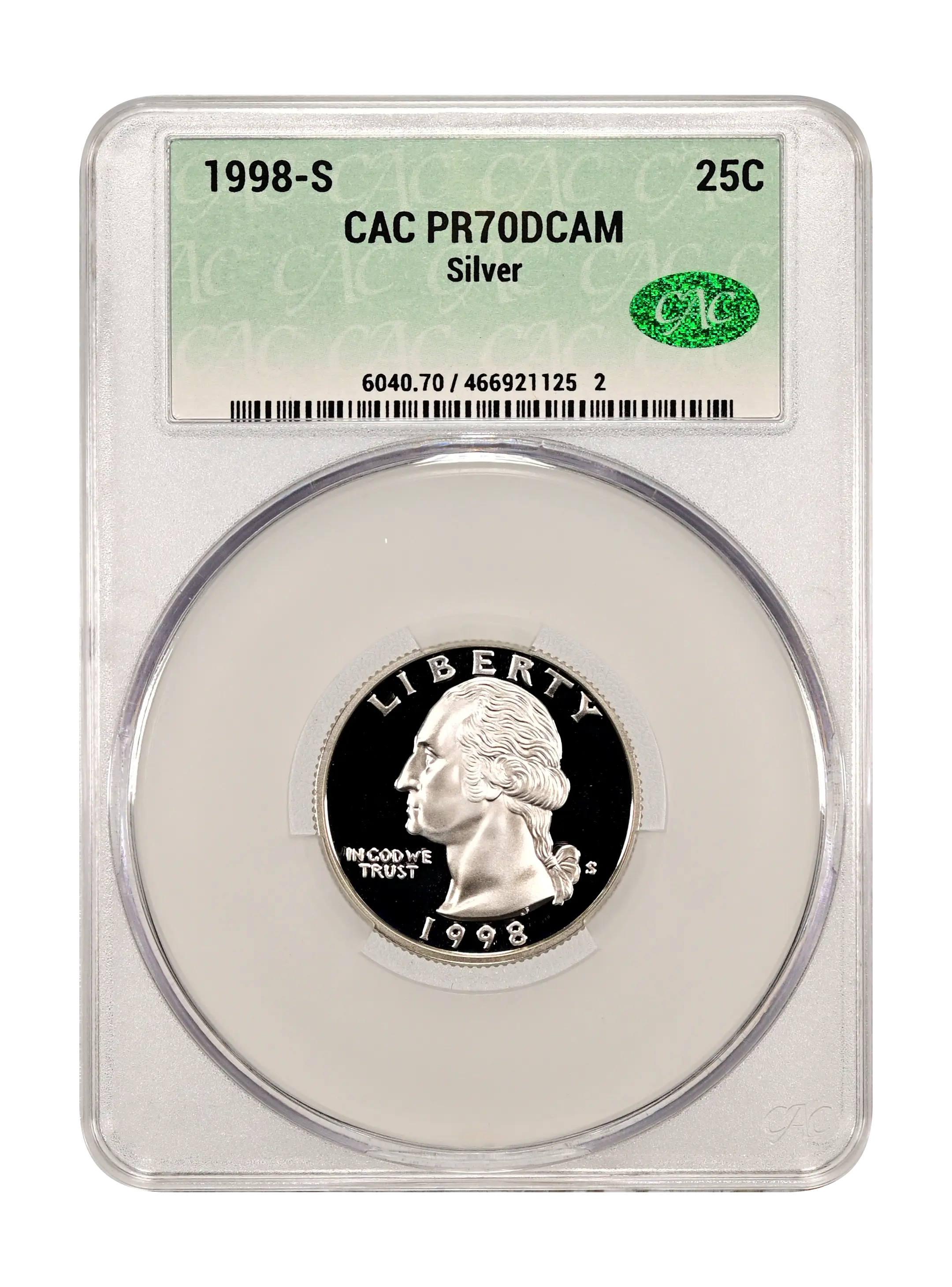 1998-S Silver 25c DCAM (Proof) CAC PR70DCAM